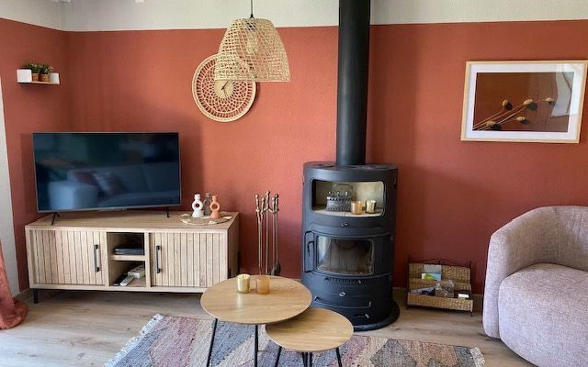 Im Inneren erwartet Sie ein gemütliches Wohnzimmer mit einem Holzofen (Holz wird in den kälteren Monaten zur Verfügung gestellt), einem Satellitenfernseher mit Zugang zu deutschen Kanälen und digitalem Fernsehen einschließlich Netflix. Eine einladende Essecke und eine kürzlich renovierte Küche, die mit modernen Geräten ausgestattet ist, garantieren köstliche Mahlzeiten. Die Schlafräume sind ein wahrer Zufluchtsort mit bequemen Betten, während das renovierte Badezimmer über eine geräumige, begehbare Dusche verfügt. Zusätzliche Annehmlichkeiten wie Bücher, Spiele und eine Klimaanlage runden Ihren Aufenthalt ab.