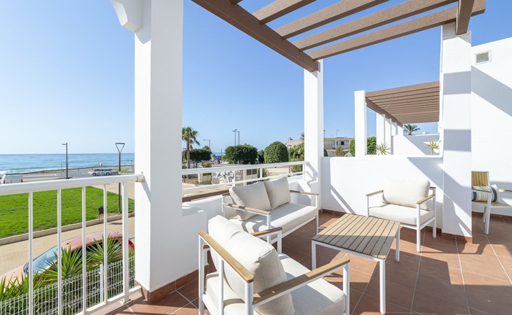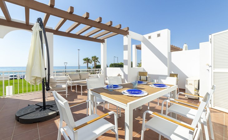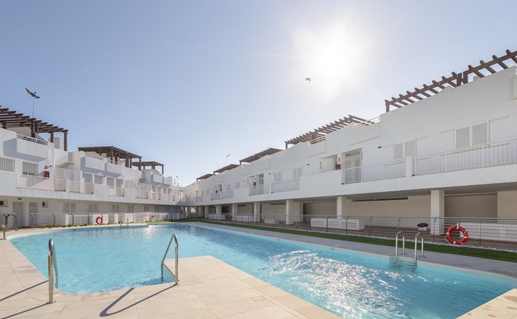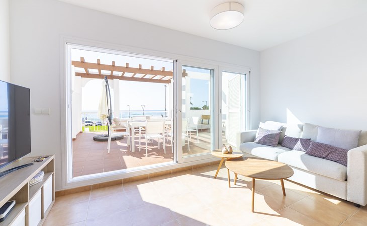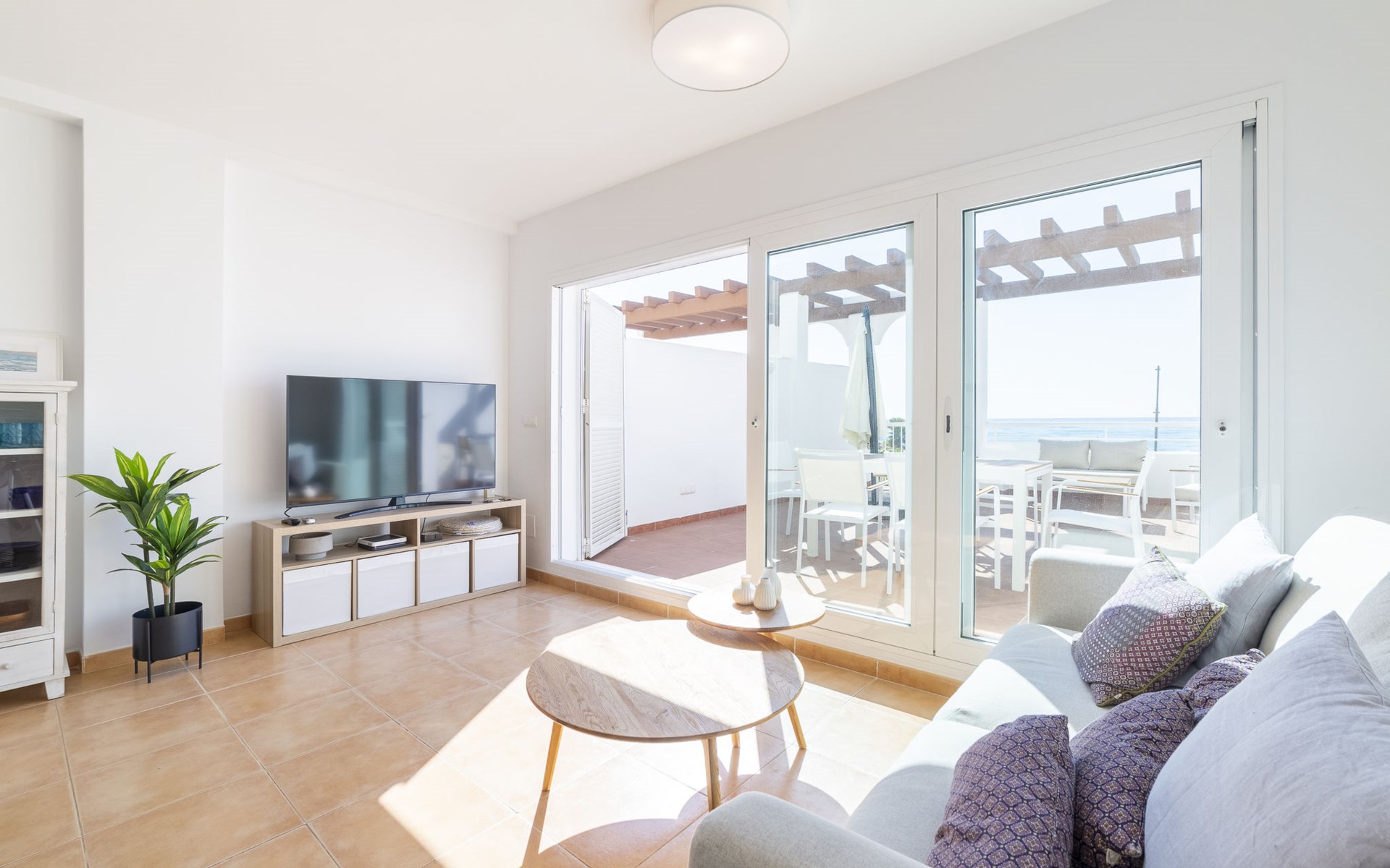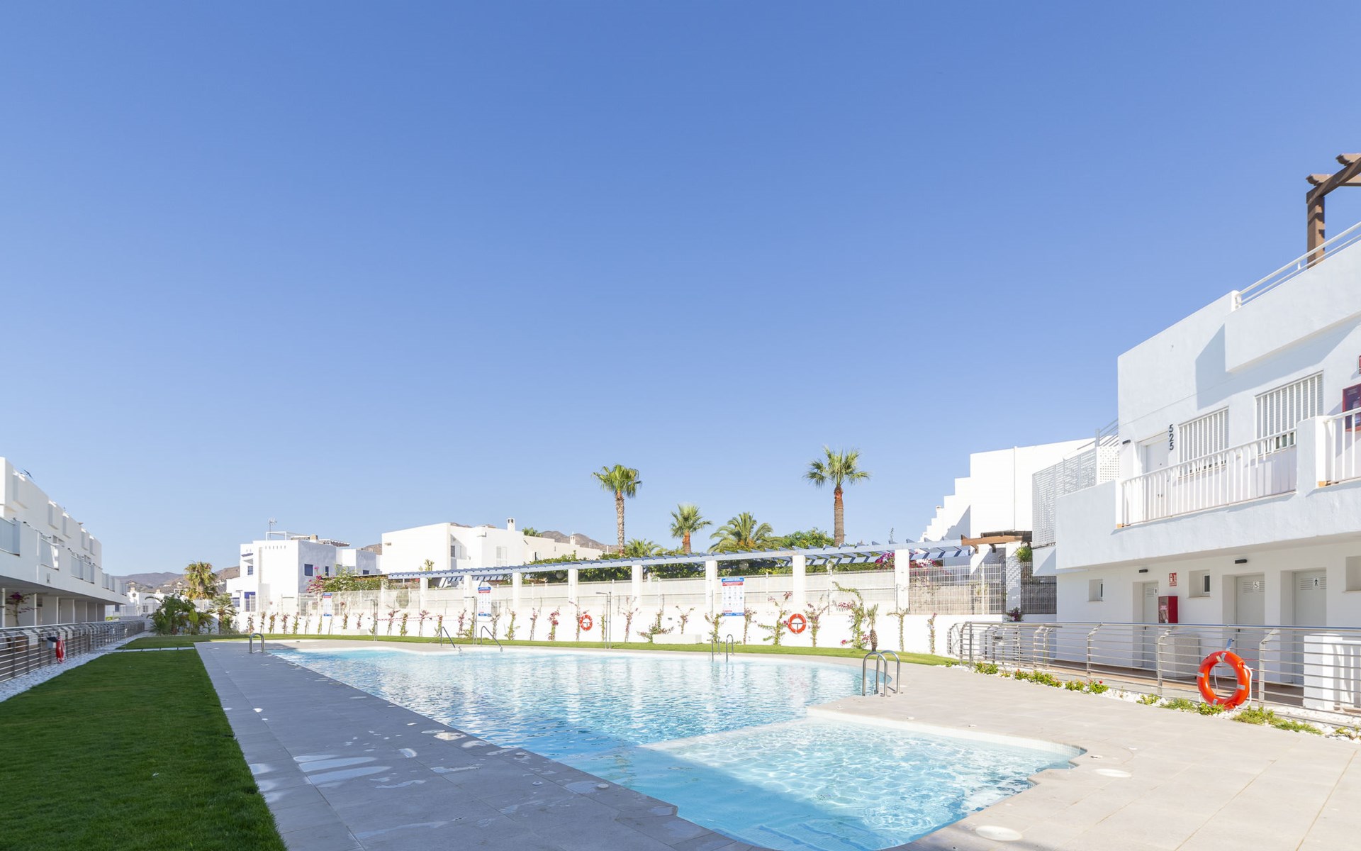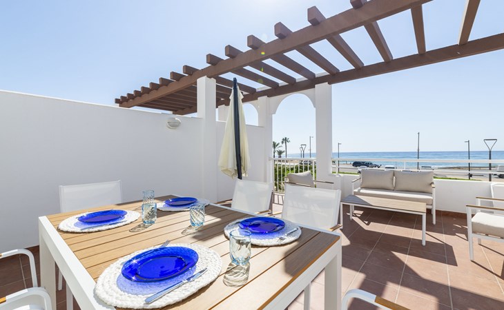 Moderne Residenz "Mojacar Breeze". Sonnige Lage, direkt am Meer, direkt am Strand. Zur Mitbenutzung: Garten mit Rasen und Bäumen, Schwimmbad (saisonale Verfügbarkeit: 01.Jun. - 30.Sep.). Kinderbecken. Im Hause: Fahrstuhl. Parkplatz beim Haus, öffentliche Parkplätze auf der Strasse. Supermarkt 400 m, Restaurant, Bar, Café 200 m, Bushaltestelle 1 km. Der Besitzer akzeptiert keine Jugendgruppen. Die Nachbarschaft ist sehr lärmempfindlich. Ruhe und gutes Benehmen wird erwartet.