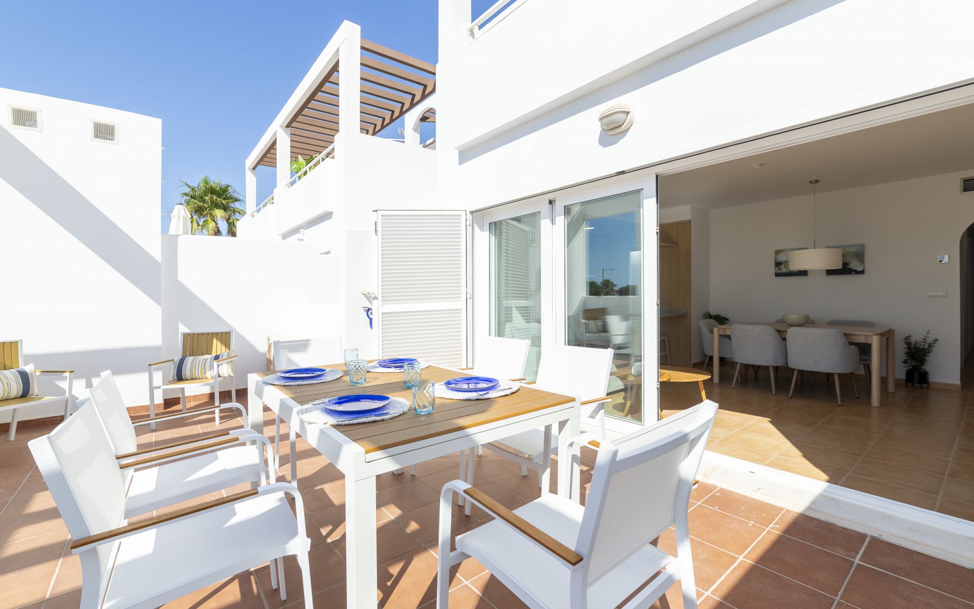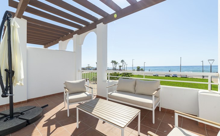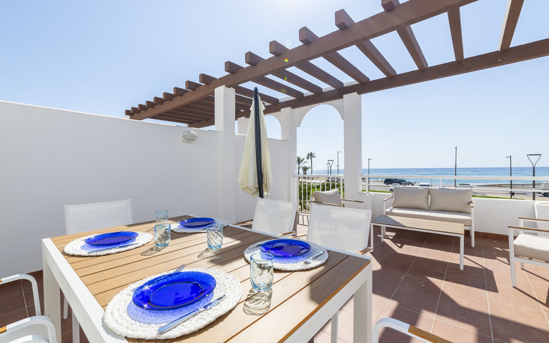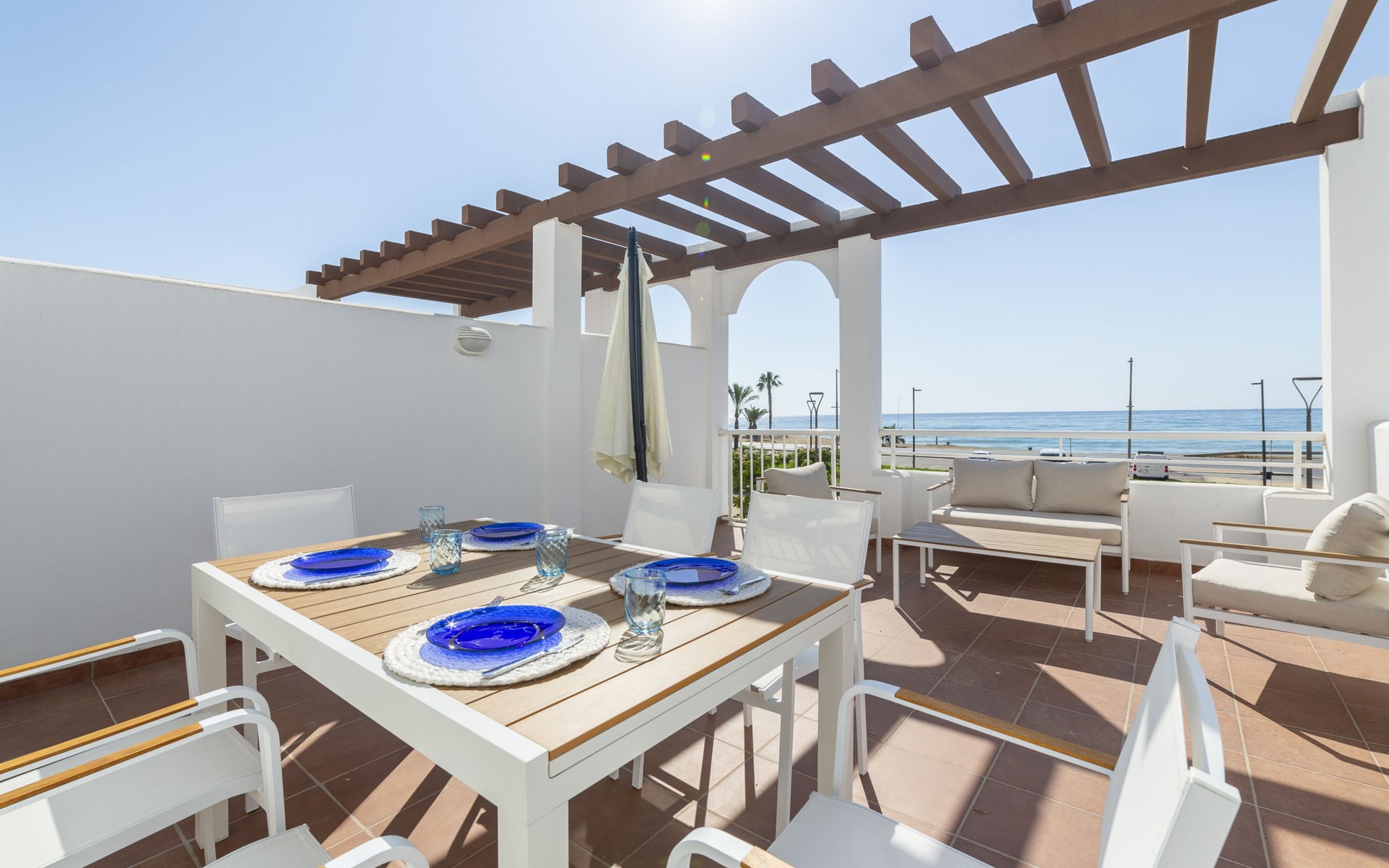 Moderne Residenz "Mojacar Breeze". Sonnige Lage, direkt am Meer, direkt am Strand. Zur Mitbenutzung: Garten mit Rasen und Bäumen, Schwimmbad (saisonale Verfügbarkeit: 01.Jun. - 30.Sep.). Kinderbecken. Im Hause: Fahrstuhl. Parkplatz beim Haus, öffentliche Parkplätze auf der Strasse. Supermarkt 400 m, Restaurant, Bar, Café 200 m, Bushaltestelle 1 km. Der Besitzer akzeptiert keine Jugendgruppen. Die Nachbarschaft ist sehr lärmempfindlich. Ruhe und gutes Benehmen wird erwartet.
