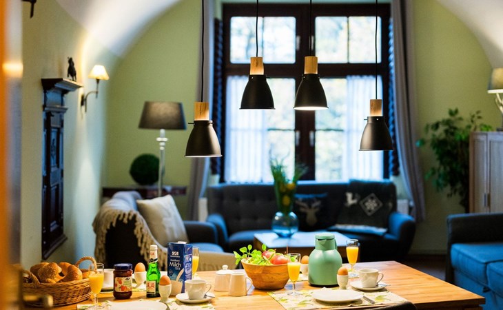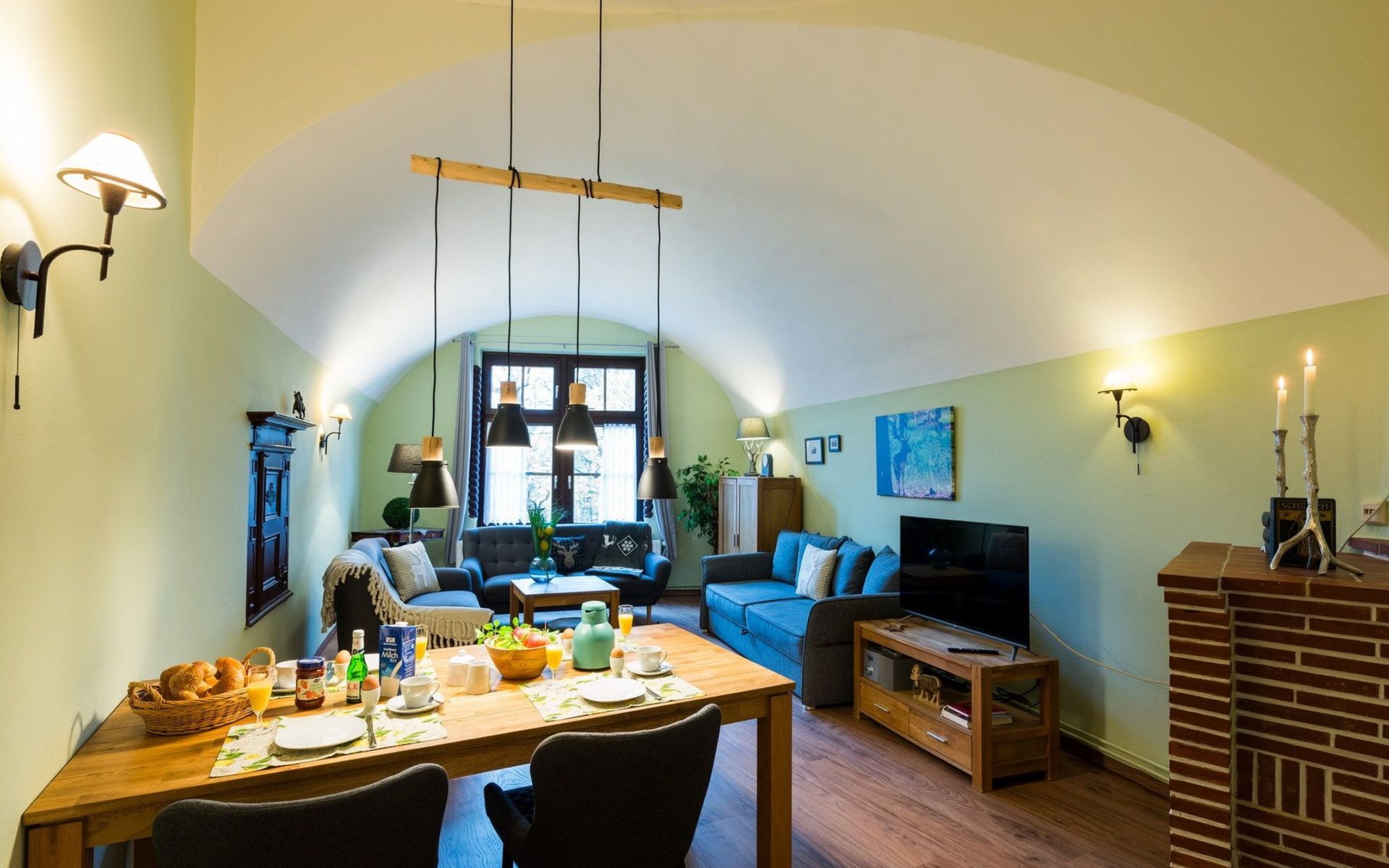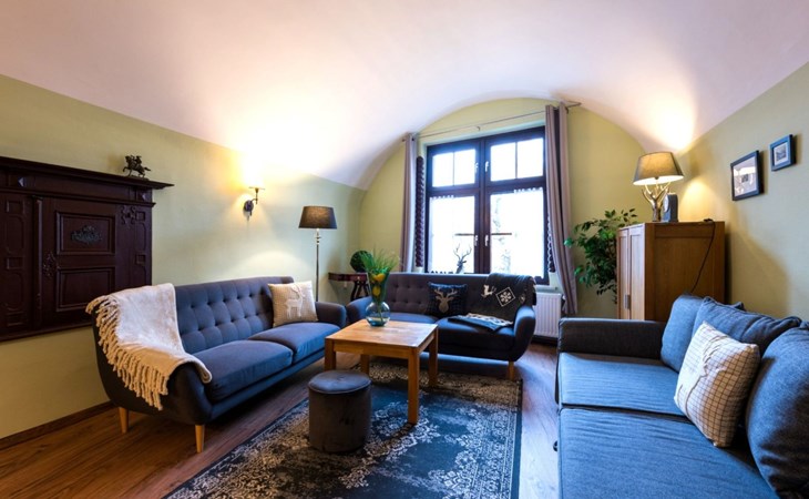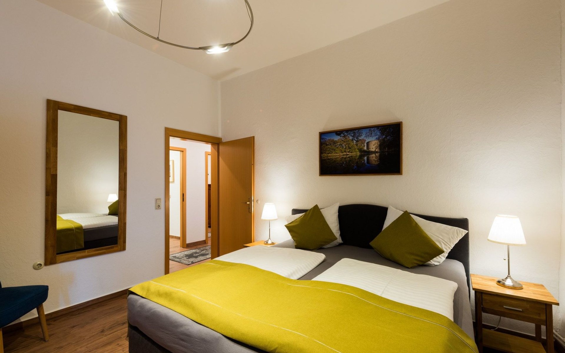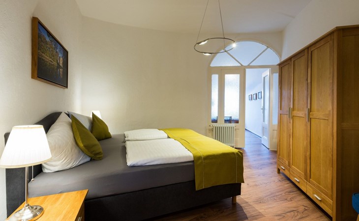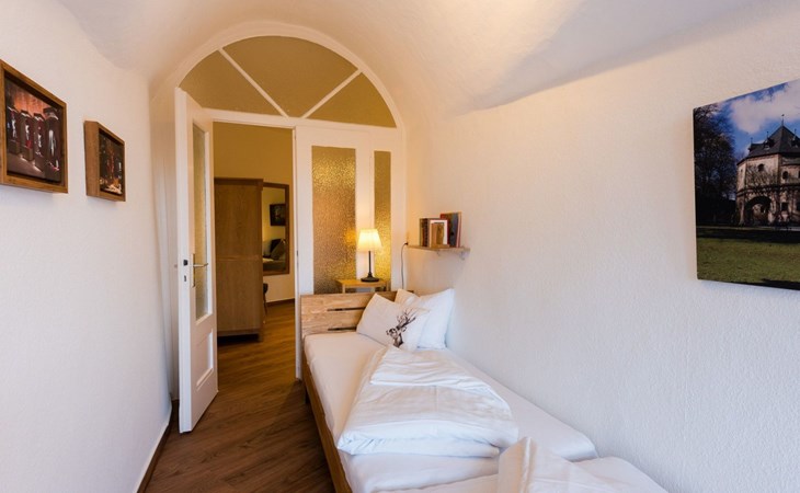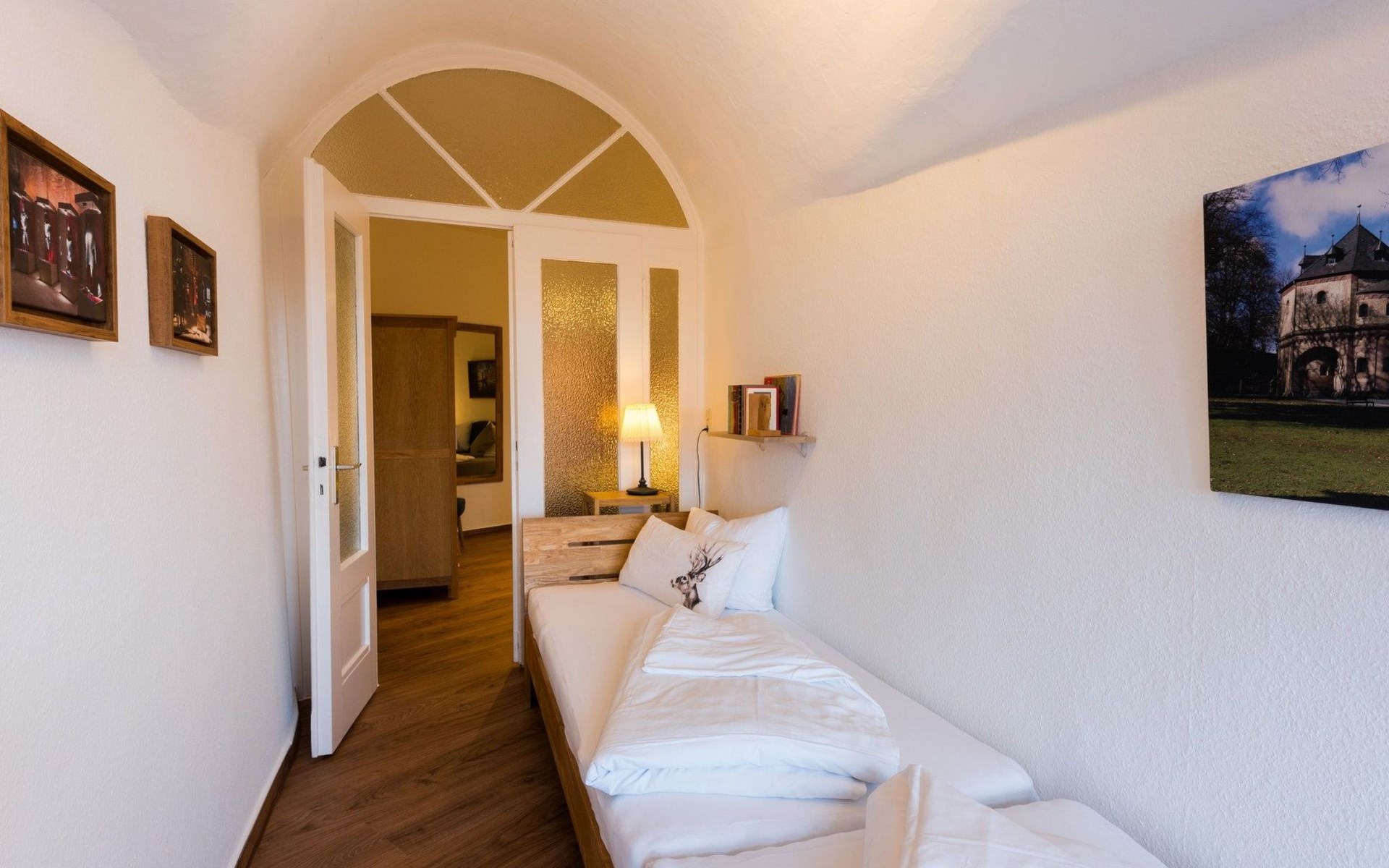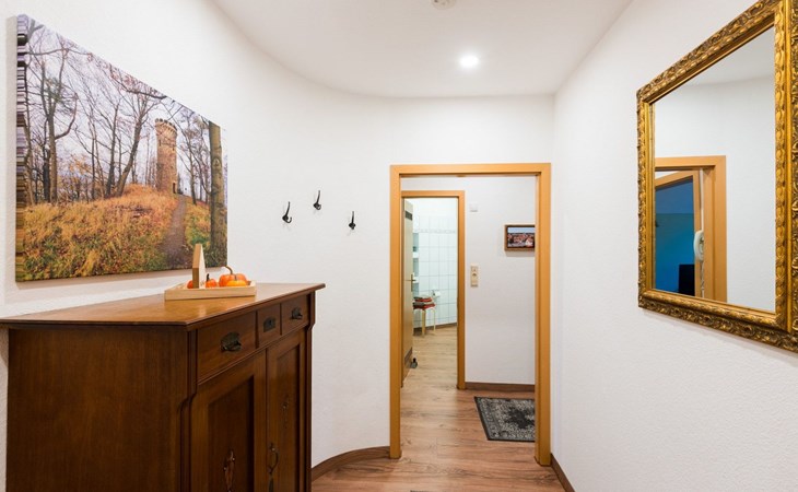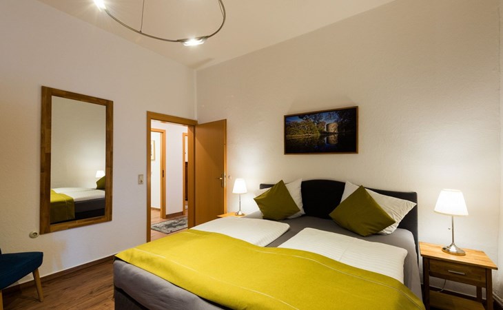 Ebenfalls lädt unsere Ferienwohnung 'Burggraf' auf ca. 80qm zum gemütlichen Aufenthalt ein. Ein Wohnzimmer mit Eßecke, sowie einem Schlafsofa, ein Schlafraum mit Doppelbett, ein dahinter liegendes Zimmer mit zwei weiteren Betten, eine separate Küche und Bad/WC stehen zur Verfügung.