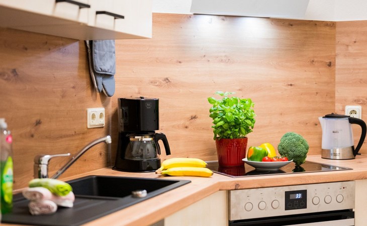 Sonstige Kücheneinrichtung : Wasserkocher, Handmixer, Bügeleisen, Bügelbrett, Eierkocher, Kaffeemaschine, Mikrowelle