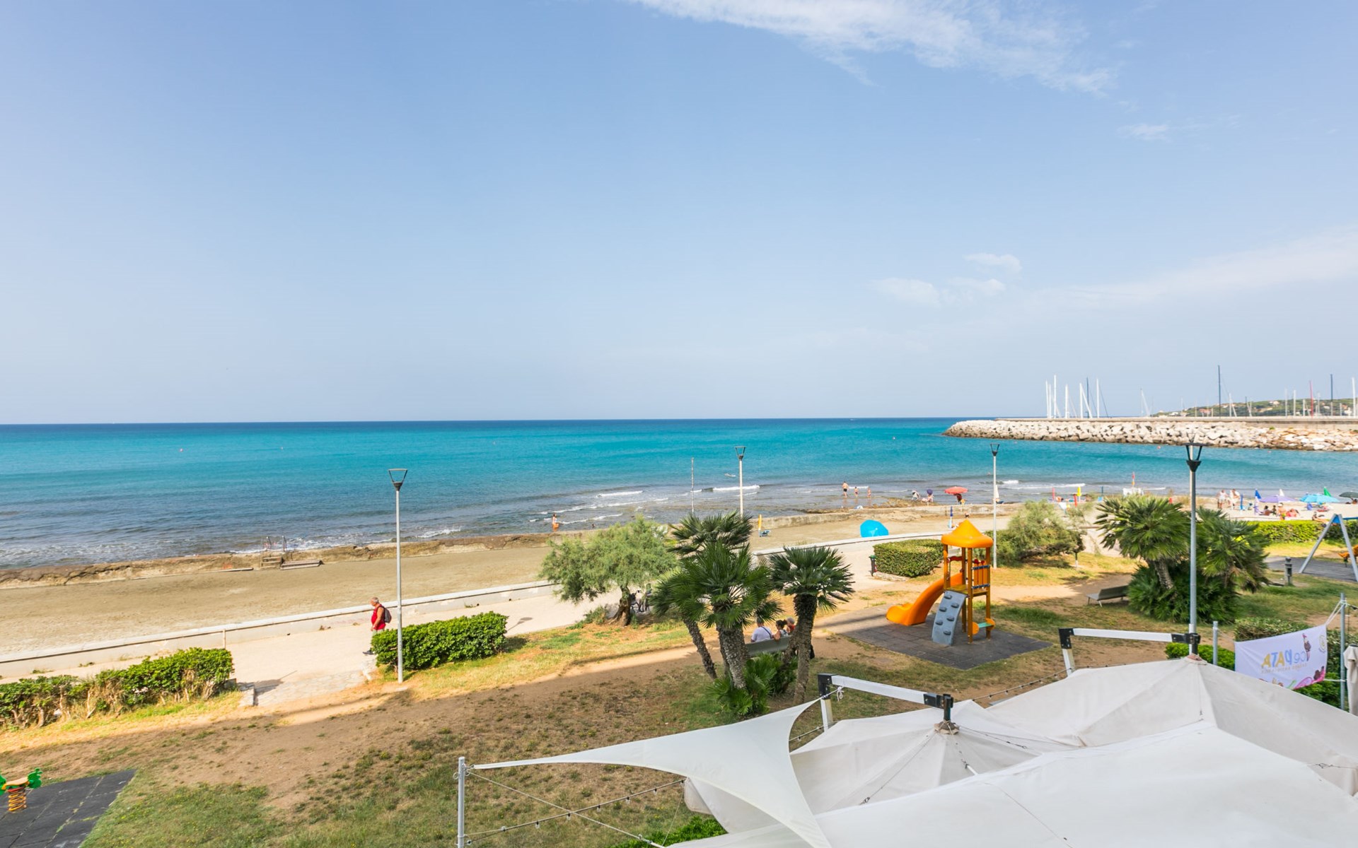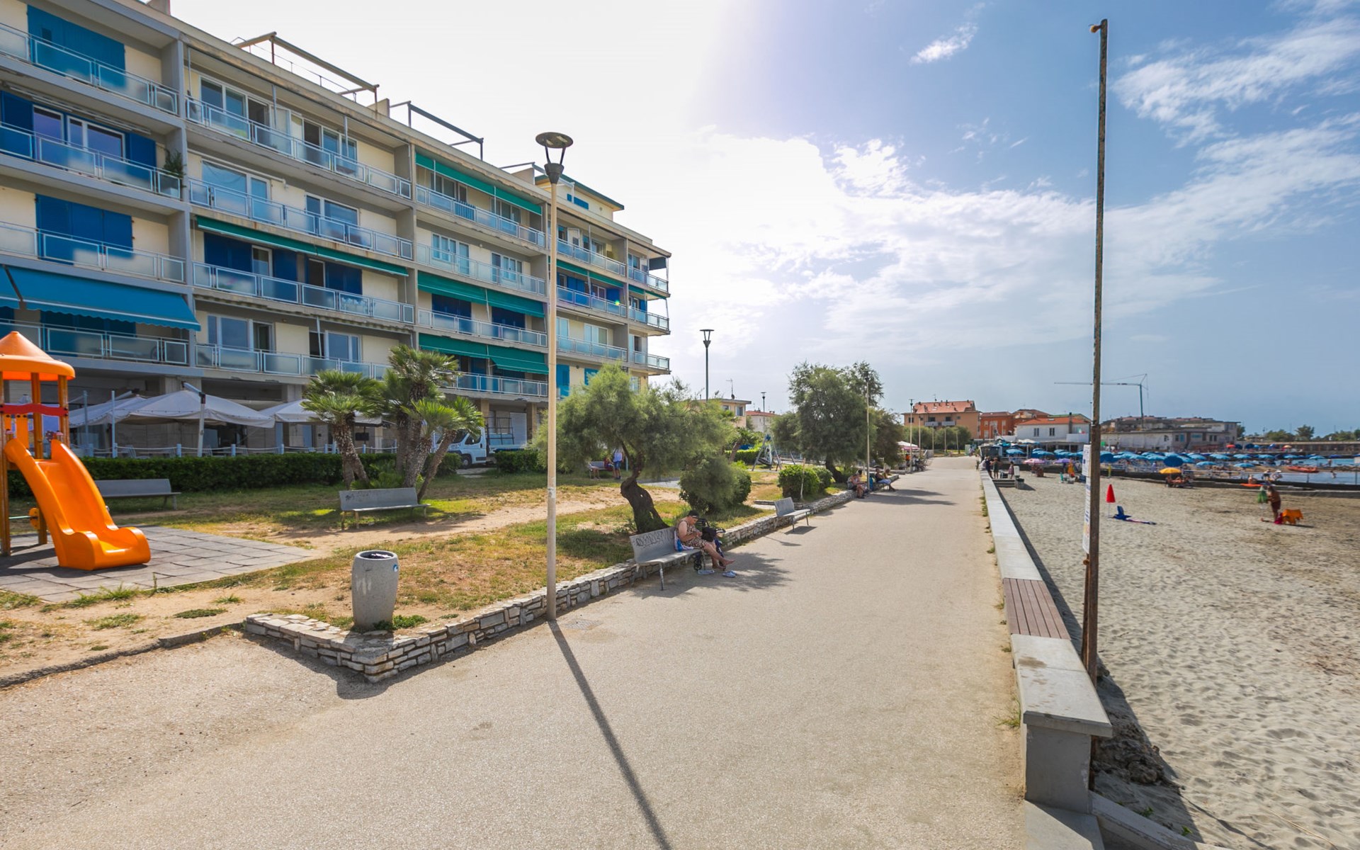 Mehrfamilienhaus auf 5 Stockwerken. 10 Wohnungen in der Residenz. Im Ort, 300 m vom Zentrum von Rosignano Solvay, 3.5 km vom Zentrum von Castiglioncello, belebte Lage in einem Wohnquartier, 20 m vom Meer, direkter Zugang zum Strand, in einer Sackgasse. Im Hause: Restaurant, Bar, Fahrstuhl. Parkplatz (beschränkte Anzahl) beim Haus, öffentliche Parkplätze 100 m. Einkaufsgeschäft, Lebensmittelgeschäft 200 m, Supermarkt 900 m, Restaurant 20 m, Bar 50 m, Bushaltestelle "V. Champigny Croce Rossa" 400 m, Felsstrand "Rosignano Solvay" 20 m. Jacht-Hafen 300 m. Nahe gelegene Sehenswürdigkeiten: Livorno 25 km, Pisa 55 km, Lucca 75 km, Firenza 115 km.