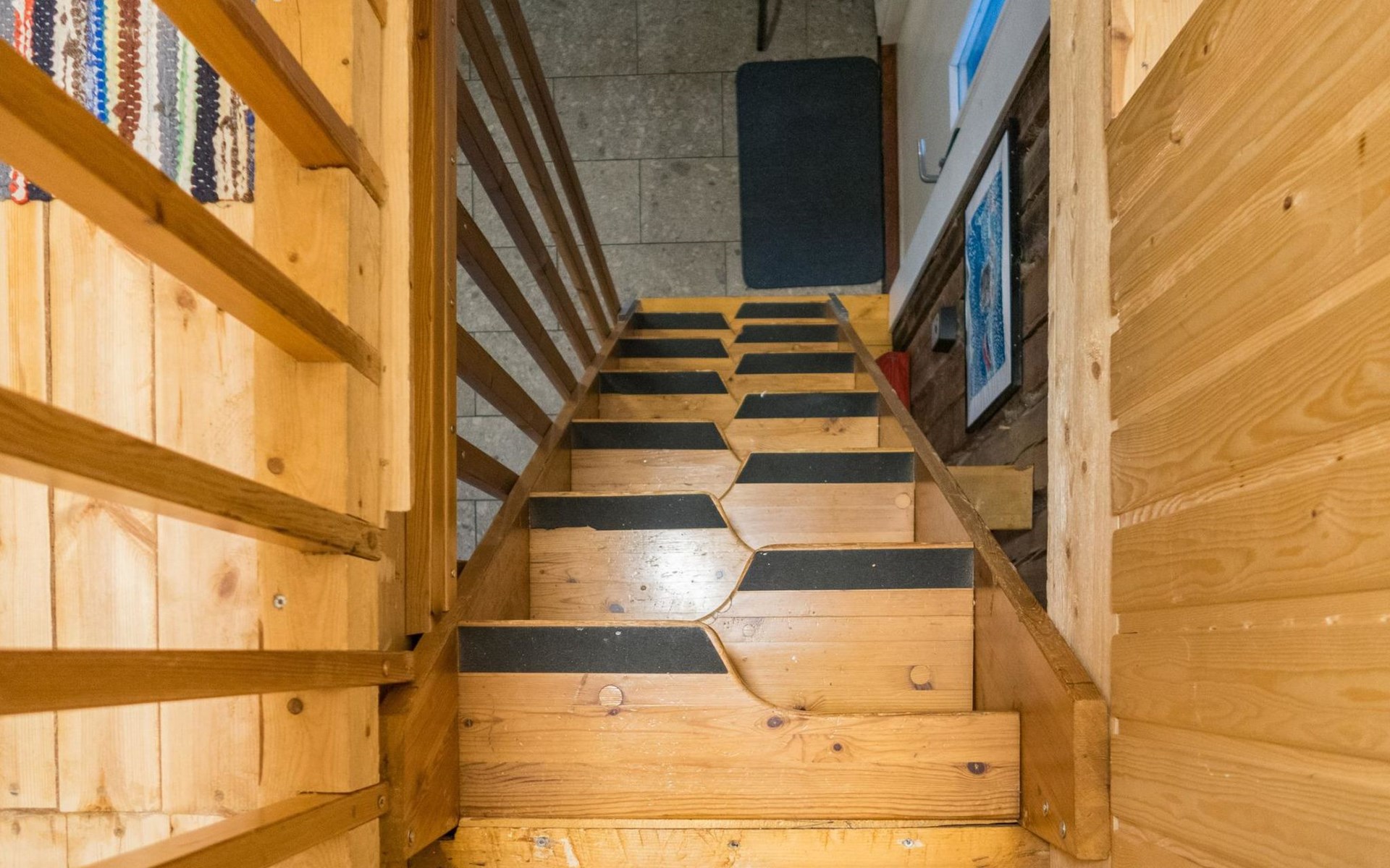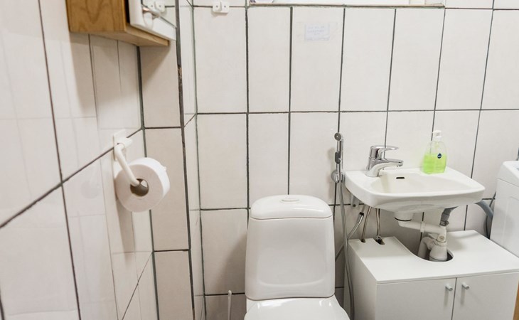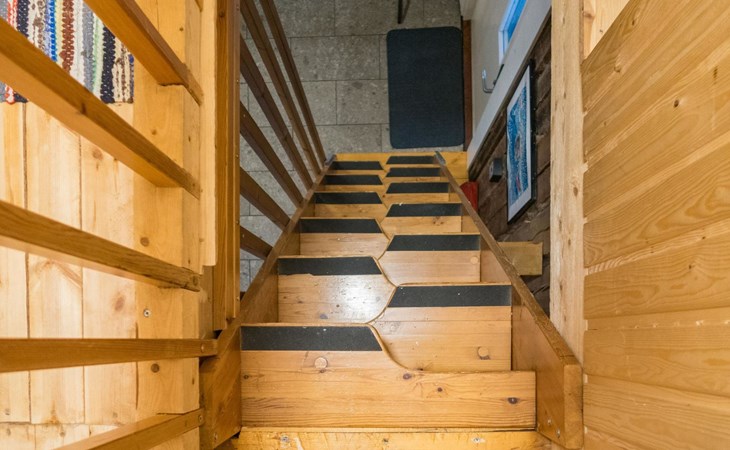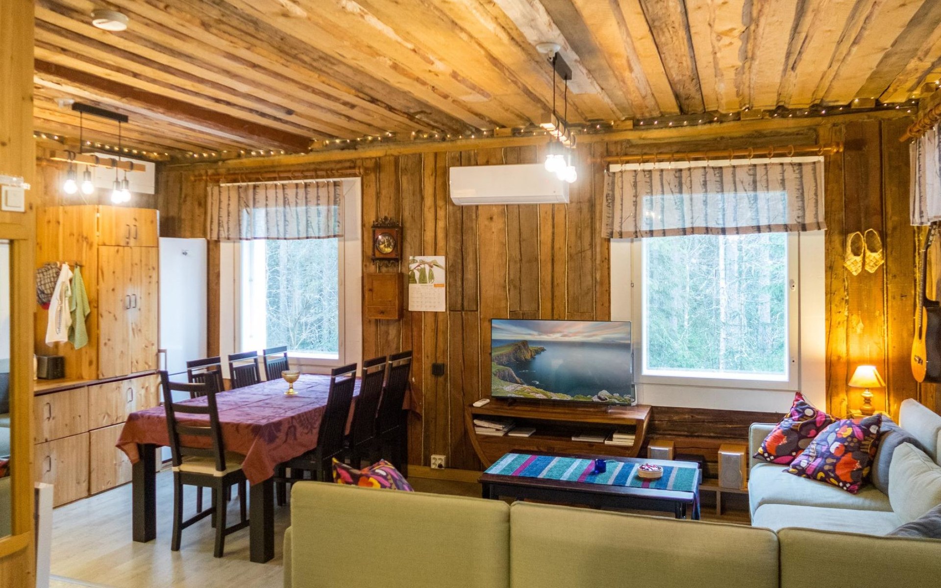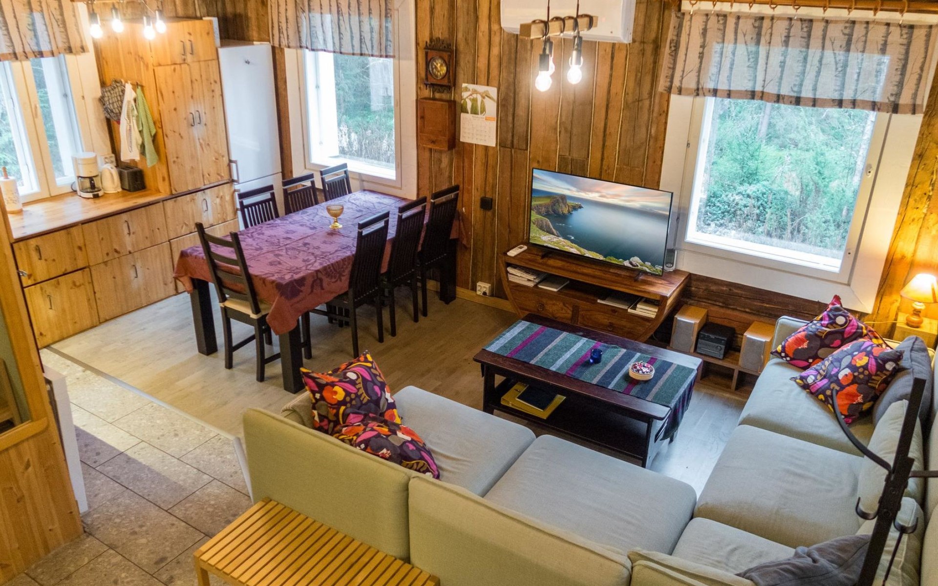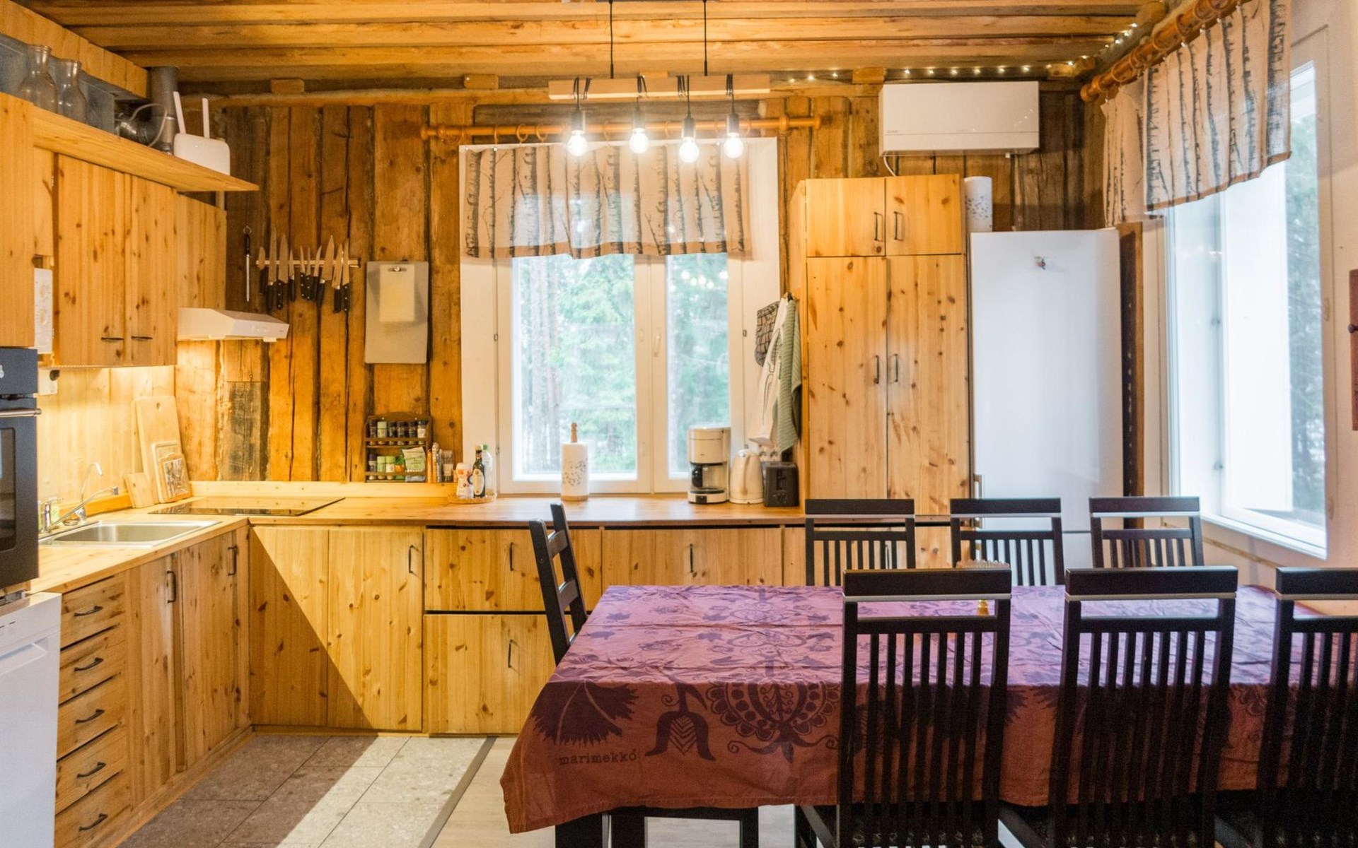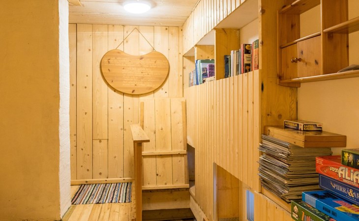 In an atmospheric cottage´s living area 75 m² on two floors. Downstairs, a spacious living room kitchen, dining set for 6-8, two bedrooms, one with a double bed and the other with separate beds for 2. Small washroom with shower, toilet and washing machine. Steep stairs to the upper floor, sofa in the hall for 1-2 guests, double bed in the bedroom. One room upstairs is not available to visiters. Covered spacious porch with furniture.
