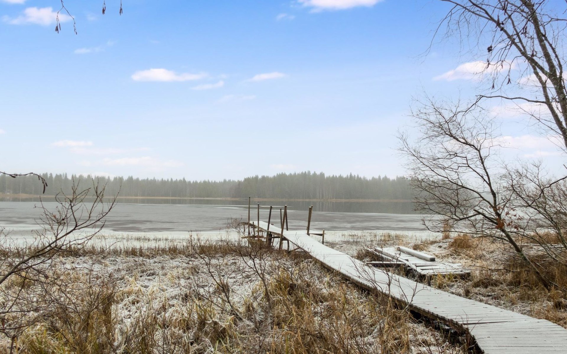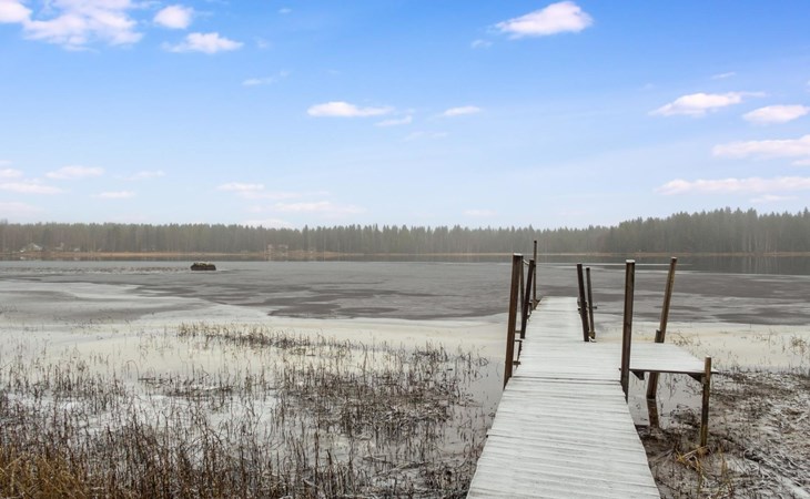 Separate beach sauna approx. 40 m from the cottage. In the sauna, there is a wood stove and the water is heated in a boiler, no shower. A long pier, partly a land pier, because the height of the water level varies. 15 to 70 cm of water at the end of the pier. Hard clay bottom, shallow long beach, own shoreline approx. 70 m. Note during the winter season, you should avoid moving on the ice, because there are many frozen currents in the water. By rowing, you can go to the opposite shed during the thaw to roast sausages, but in winter you must not cross the water.