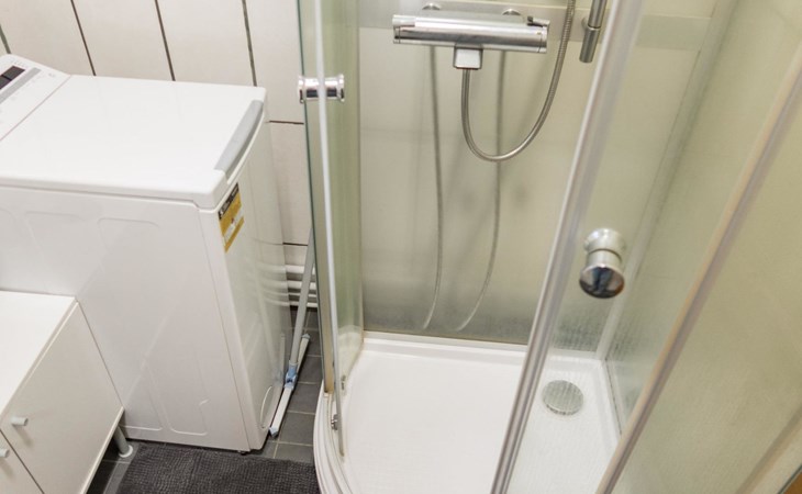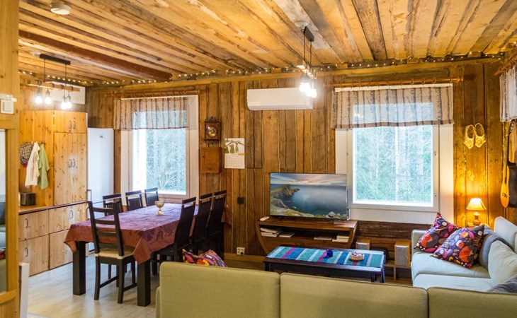 The cabin is heated by ground heat and in the summer time an air heat pump is used for cooling, the cabin has mechanical ventilation. Smart TV 43"