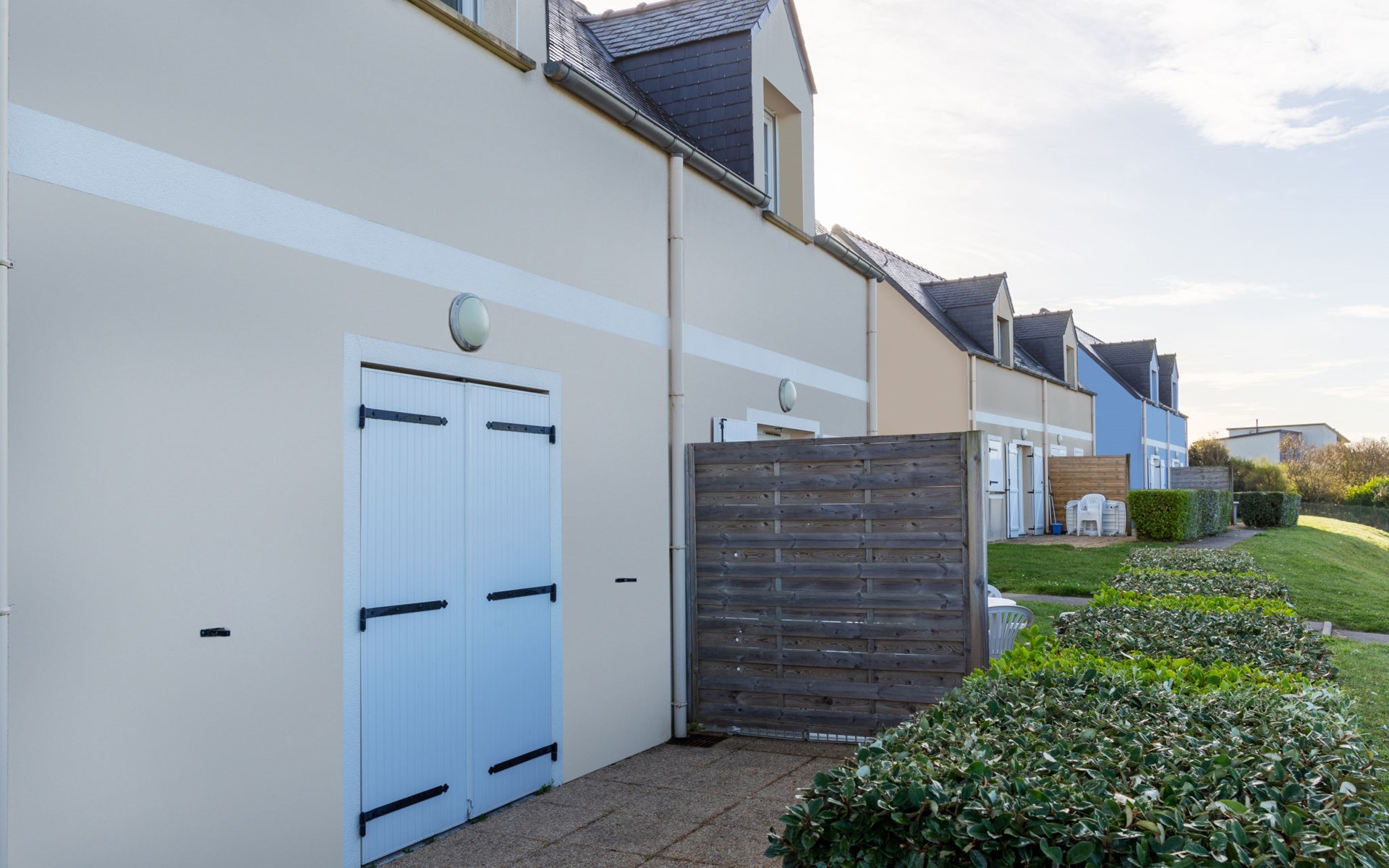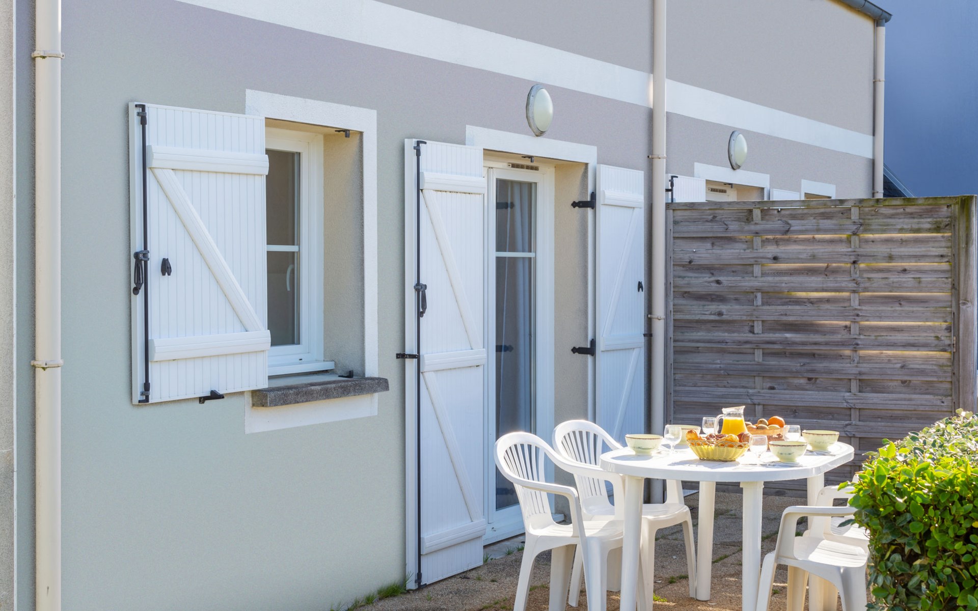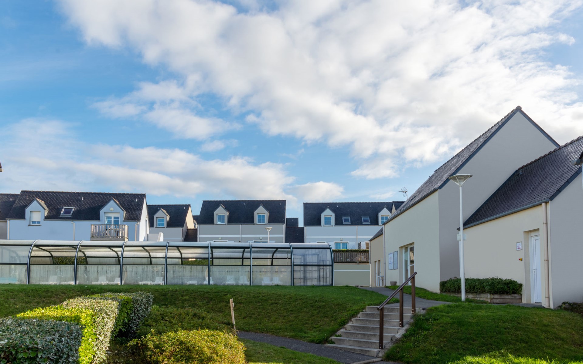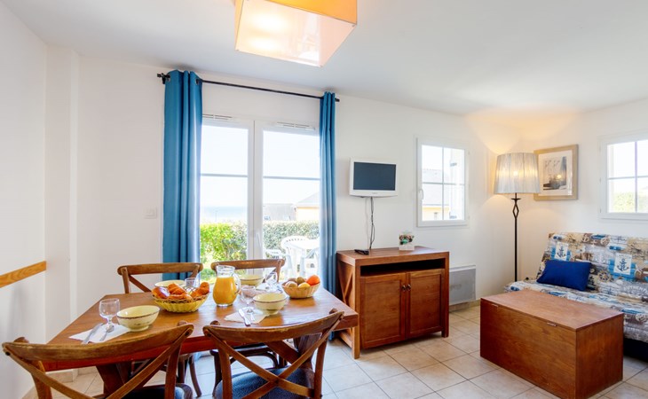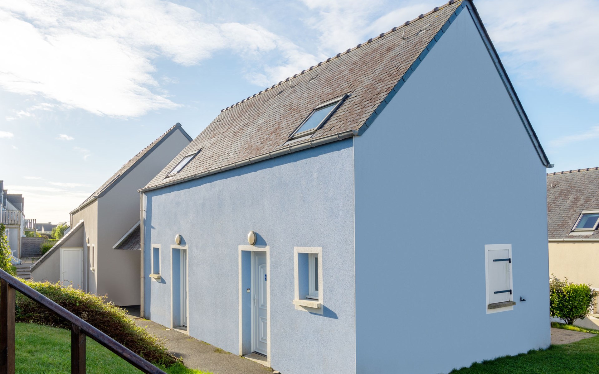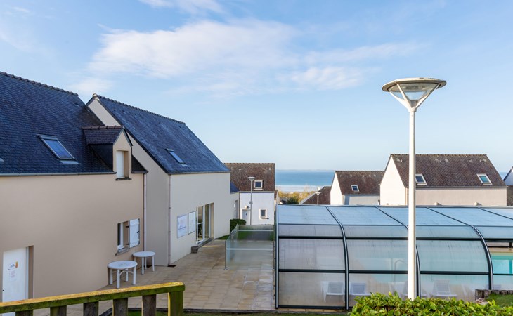 Ferienanlage "Les Terrasses". 36 Häuser in der Residenz. 50 Wohnungen in der Residenz. 500 m vom Zentrum von Pentrez-Plage, 1 km vom Zentrum von Saint Nic, 20 km vom Zentrum von Douarnenez, erhöhte Lage, 500 m vom Meer. Zur Mitbenutzung: Grundstück (eingezäunt) mit Rasen, Schwimmbad beheizt, geschützt (14 x 6 m, 100 - 150 cm tief, saisonale Verfügbarkeit: 15.Apr. - 01.Nov.). Terrasse. In der Anlage: Empfang, Internetzugang, Wireless LAN, Waschmaschine, Wäschetrockner (zur Mitbenutzung, extra). Brötchenservice. Einkaufsgeschäft 1 km, Supermarkt 5 km, Bäckerei 1 km, Sandstrand 500 m. Bitte beachten: Die Residenz wird durch elektrische Tore geschlossen. Das Foto ist nur ein Hausbeispiel. Die Mietobjekte können sich in Wohnfläche, Raumaufteilung, Ausstattung und Einrichtung unterscheiden.