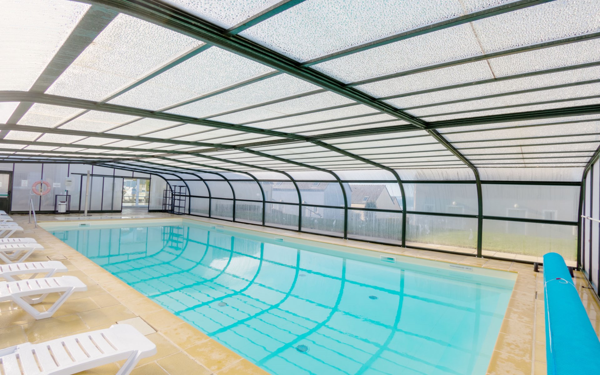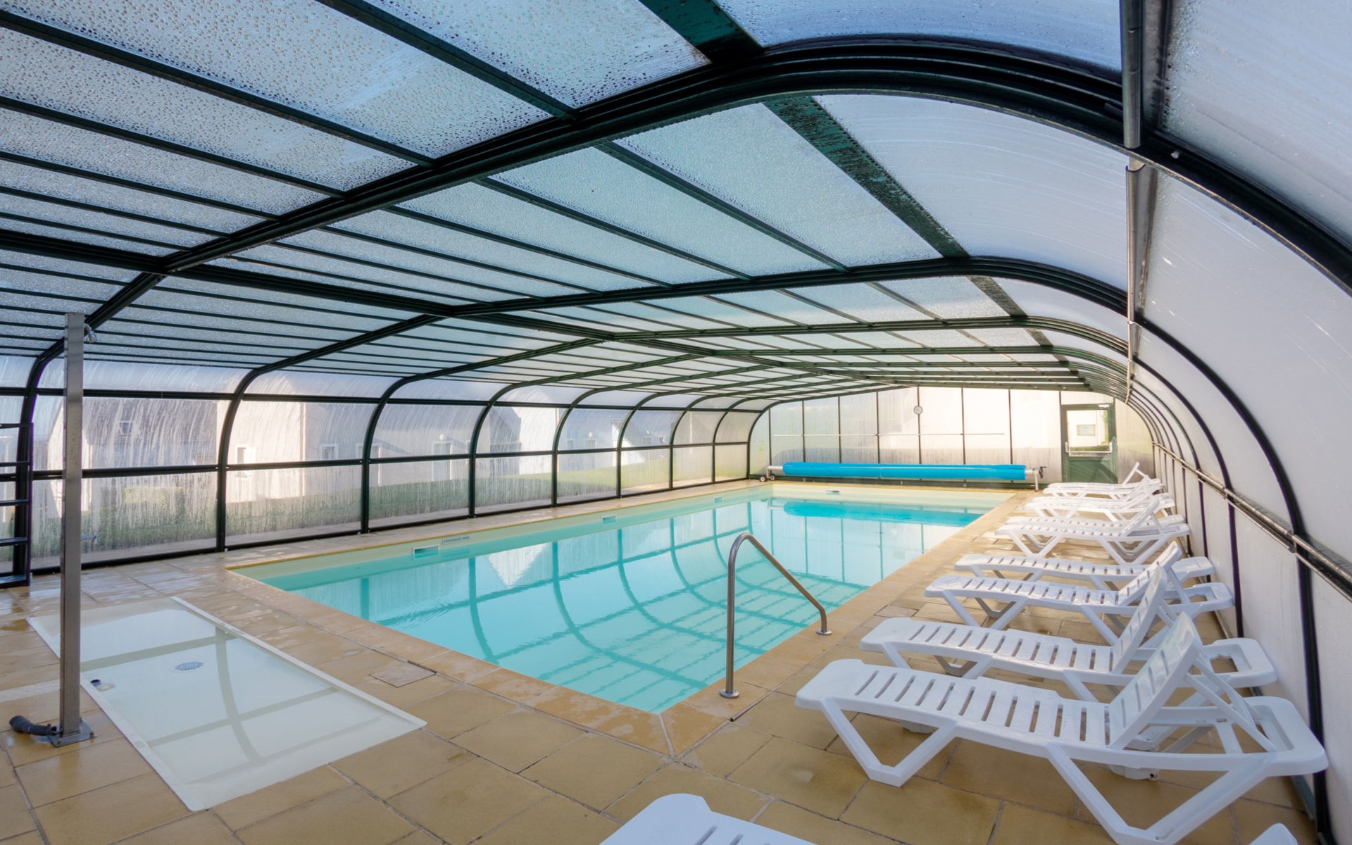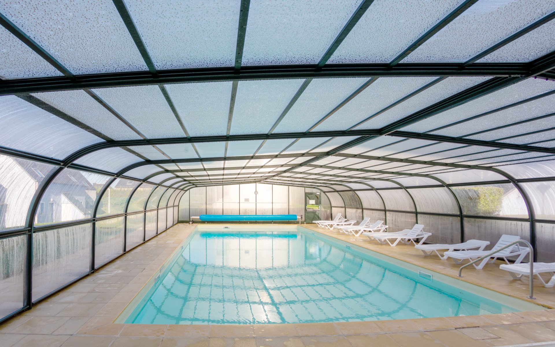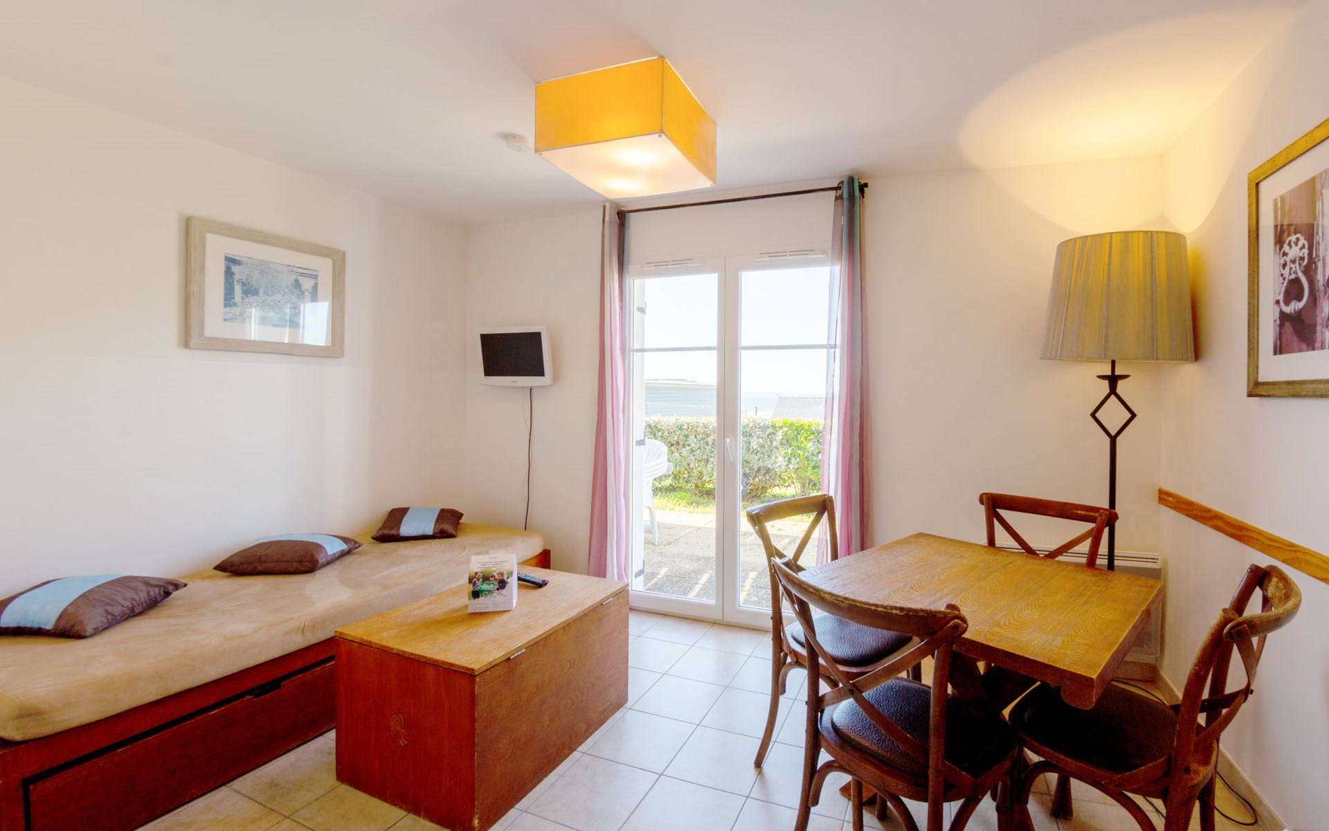 Ferienanlage "Les Terrasses". 36 Häuser in der Residenz. 50 Wohnungen in der Residenz. 500 m vom Zentrum von Pentrez-Plage, 1 km vom Zentrum von Saint Nic, 20 km vom Zentrum von Douarnenez, erhöhte Lage, 500 m vom Meer. Zur Mitbenutzung: Grundstück (eingezäunt) mit Rasen, Schwimmbad beheizt, geschützt (14 x 6 m, 100 - 150 cm tief, saisonale Verfügbarkeit: 15.Apr. - 01.Nov.). Terrasse. In der Anlage: Empfang, Internetzugang, Wireless LAN, Waschmaschine, Wäschetrockner (zur Mitbenutzung, extra). Brötchenservice. Einkaufsgeschäft 1 km, Supermarkt 5 km, Bäckerei 1 km, Sandstrand 500 m. Bitte beachten: Die Residenz wird durch elektrische Tore geschlossen. Das Foto ist nur ein Hausbeispiel. Die Mietobjekte können sich in Wohnfläche, Raumaufteilung, Ausstattung und Einrichtung unterscheiden.