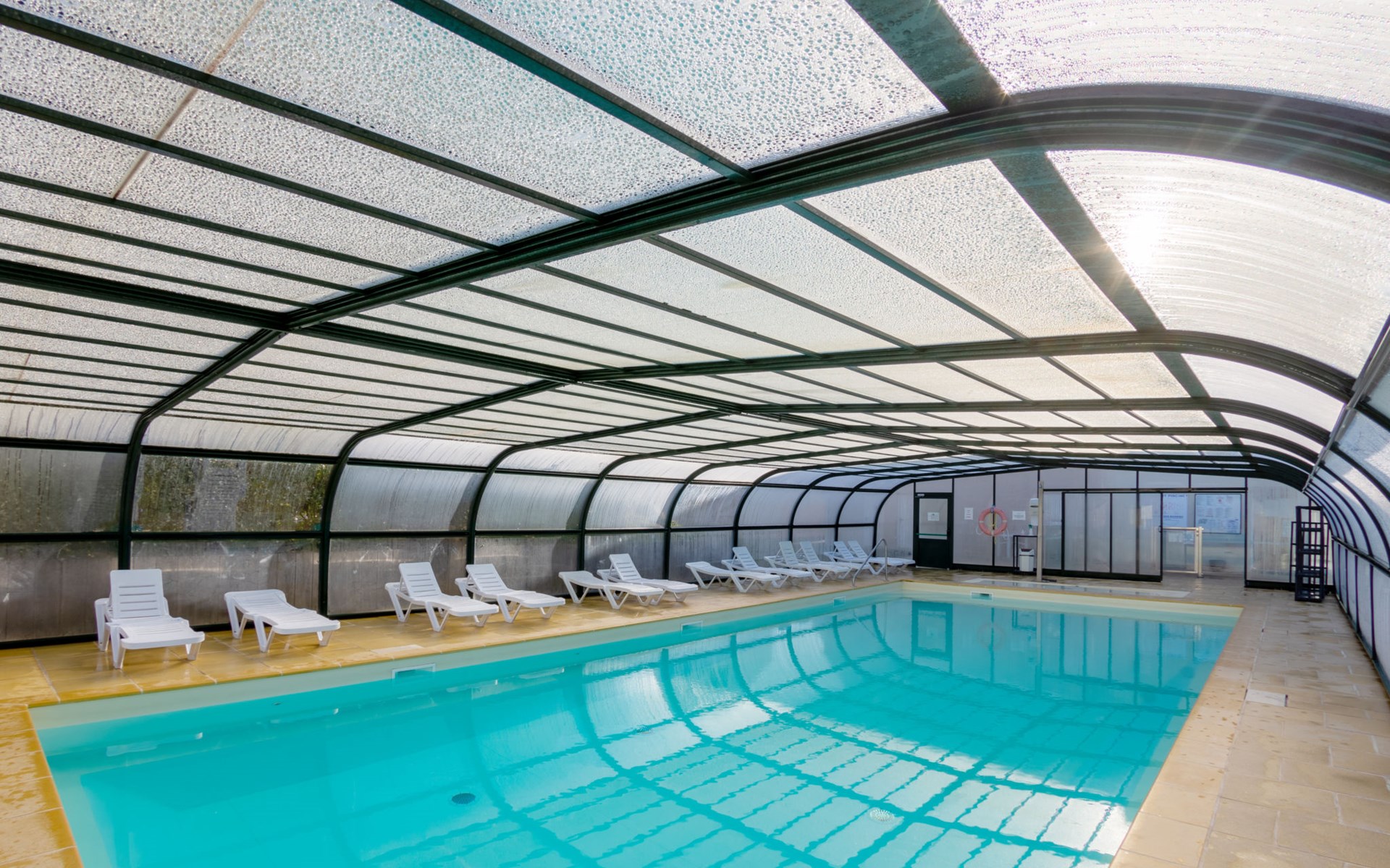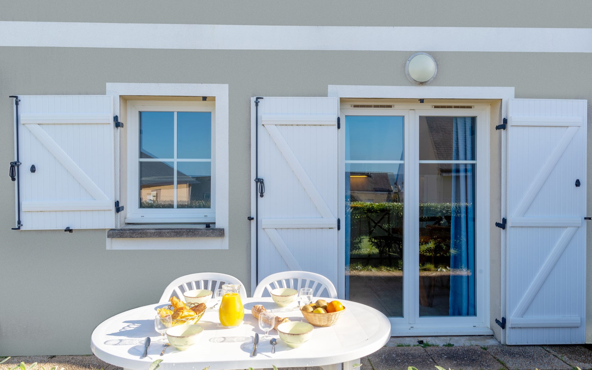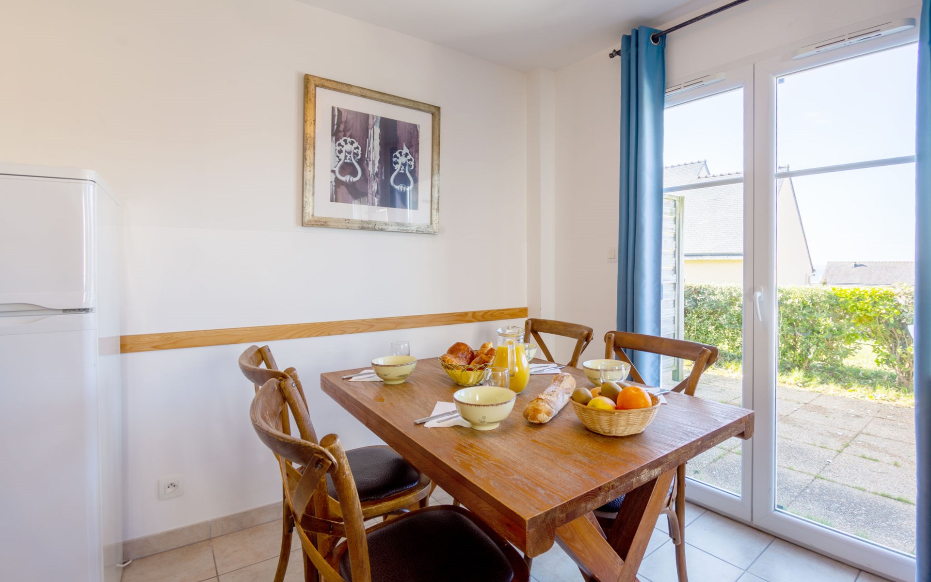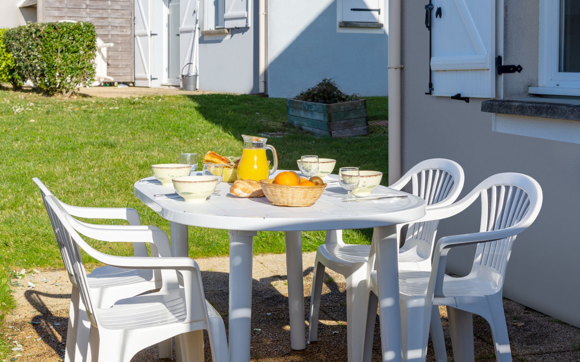 Ferienanlage "Les Terrasses". 36 Häuser in der Residenz. 50 Wohnungen in der Residenz. 500 m vom Zentrum von Pentrez-Plage, 1 km vom Zentrum von Saint Nic, 20 km vom Zentrum von Douarnenez, erhöhte Lage, 500 m vom Meer. Zur Mitbenutzung: Grundstück (eingezäunt) mit Rasen, Schwimmbad beheizt, geschützt (14 x 6 m, 100 - 150 cm tief, saisonale Verfügbarkeit: 15.Apr. - 01.Nov.). Terrasse. In der Anlage: Empfang, Internetzugang, Wireless LAN, Waschmaschine, Wäschetrockner (zur Mitbenutzung, extra). Brötchenservice. Einkaufsgeschäft 1 km, Supermarkt 5 km, Bäckerei 1 km, Sandstrand 500 m. Bitte beachten: Die Residenz wird durch elektrische Tore geschlossen. Das Foto ist nur ein Hausbeispiel. Die Mietobjekte können sich in Wohnfläche, Raumaufteilung, Ausstattung und Einrichtung unterscheiden.