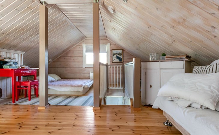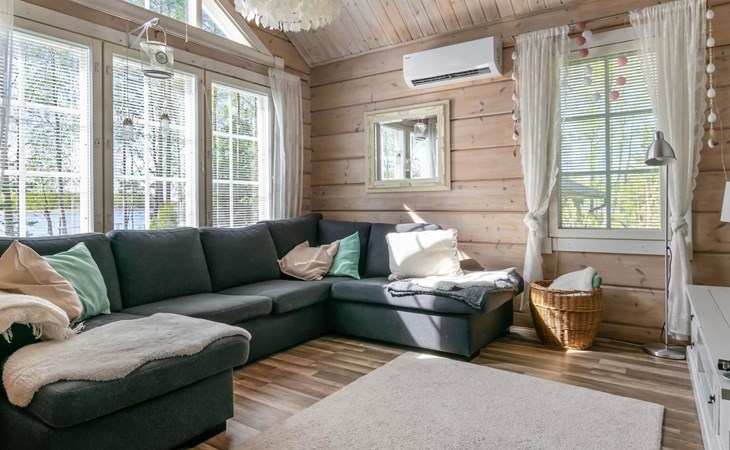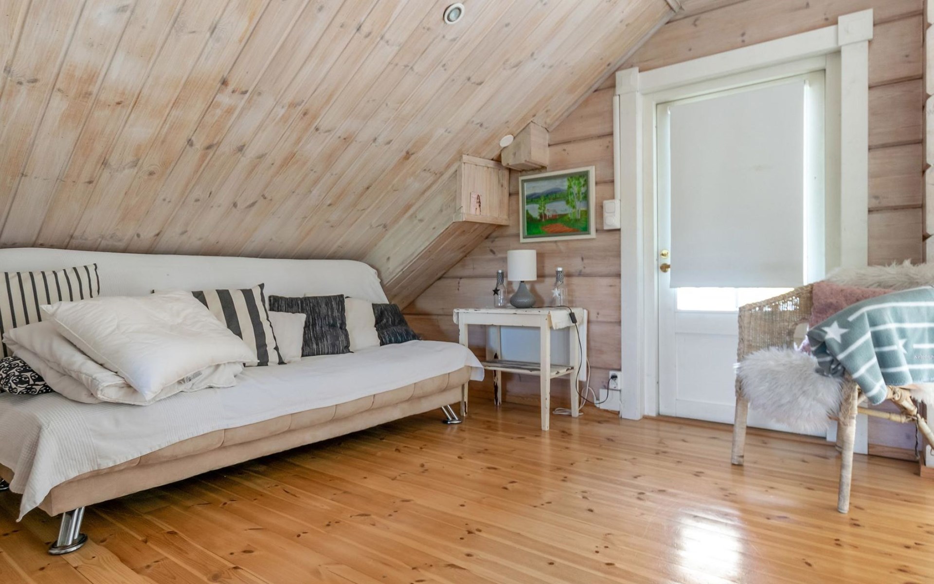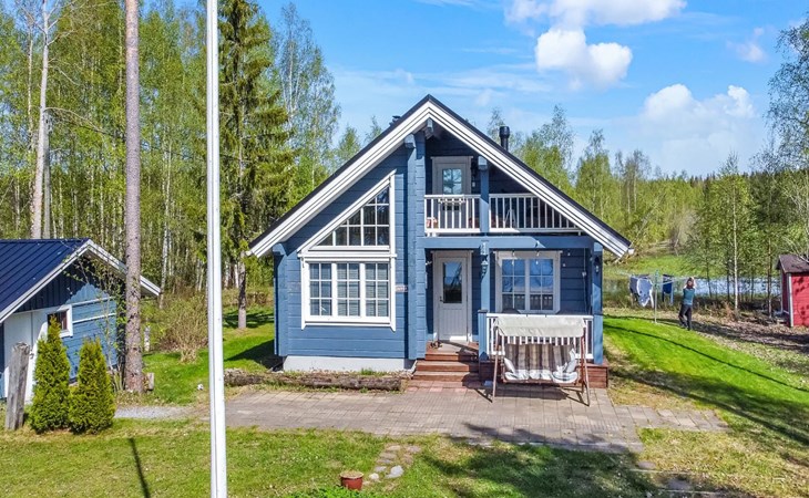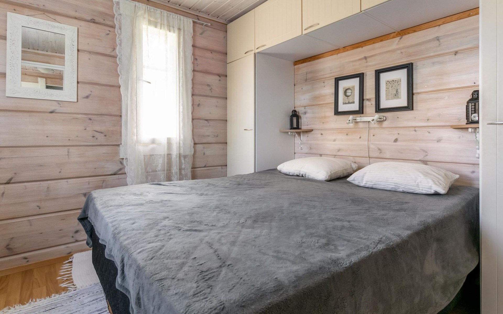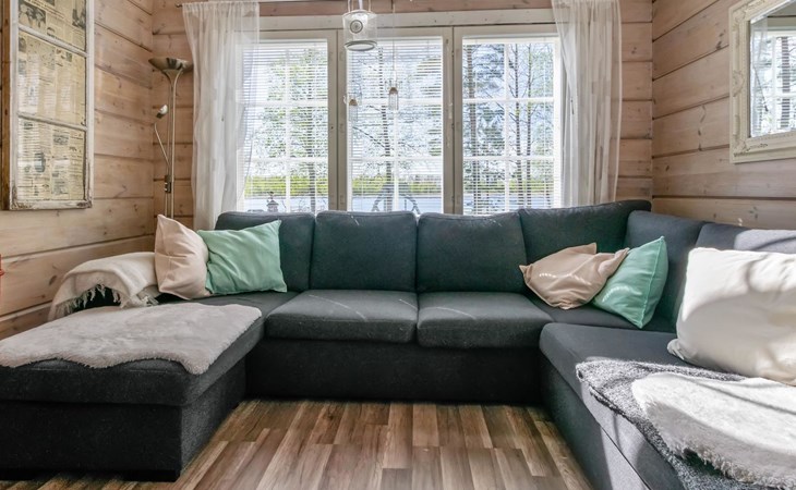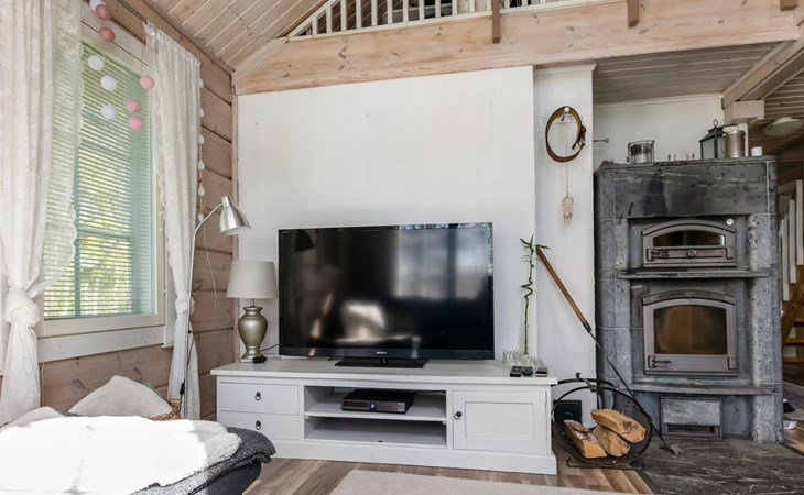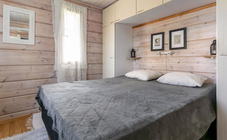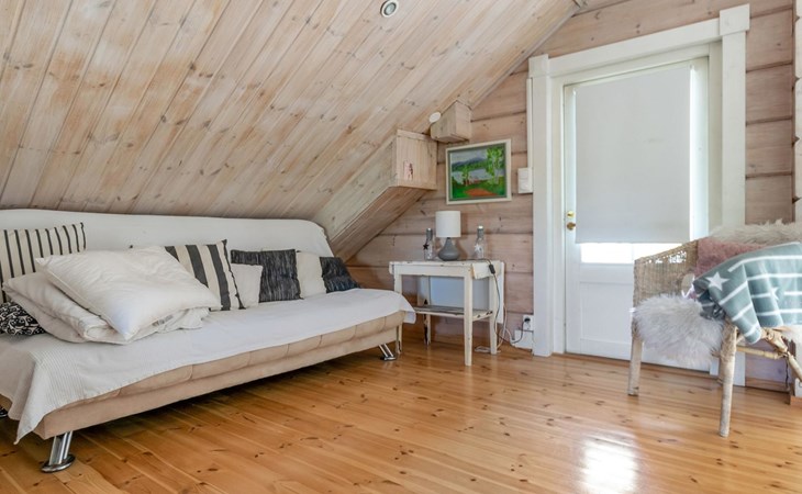 17 km to the west from Iisalmi, lake Haapajärvi 25 m, shallow mud beach, pier, own rowing boat. Log cabin (2012), well-equipped kitchen, heat reserving fireplace in the living room, bedroom (double bed), WC, washroom, sauna (electric sauna stove). Upstairs, an open space with spring mattresses 160x200 cm and 80x200 cm on the floor and sofa bed (120x200 cm bed for one).