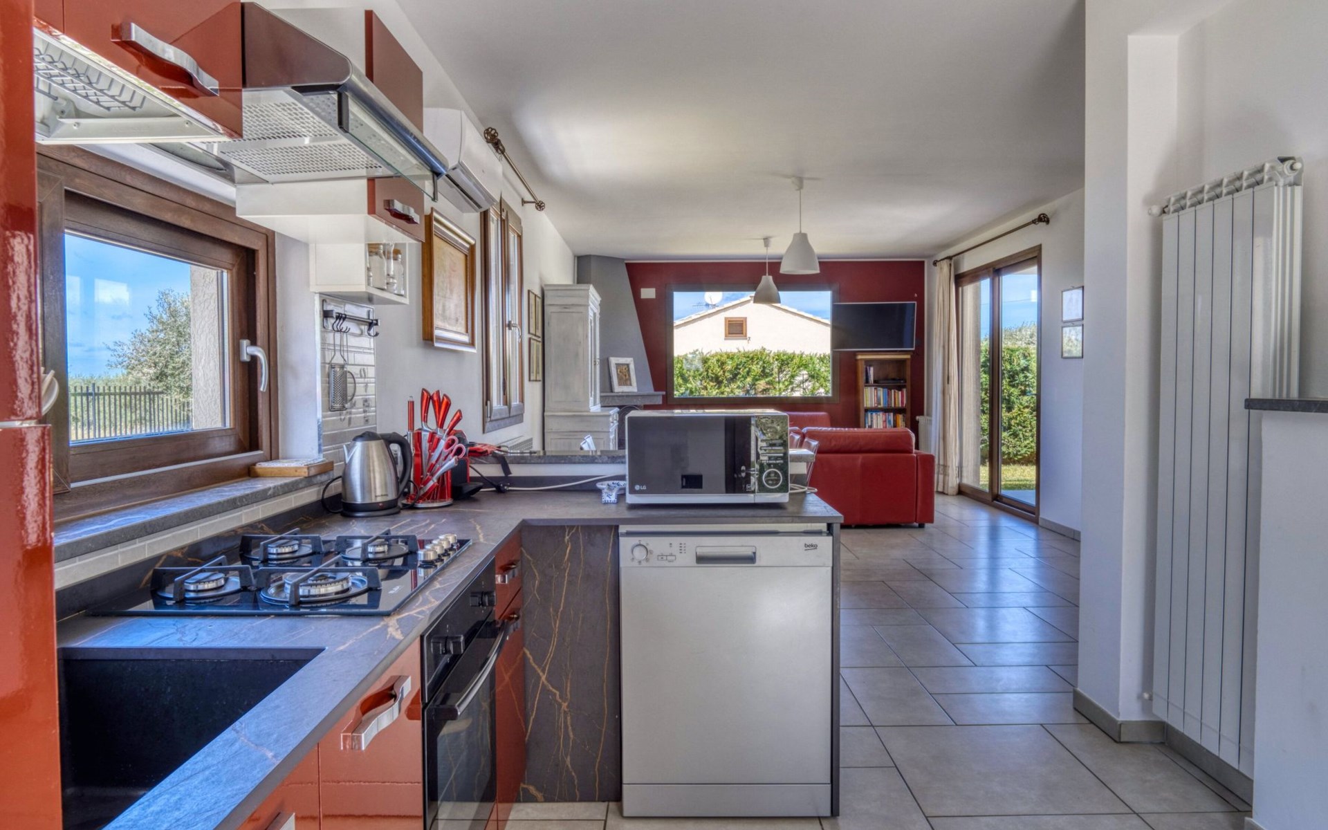 Die Villa ist mit allen Annehmlichkeiten für einen sorglosen Aufenthalt ausgestattet. Die Temperaturregulierung wird durch das Vorhandensein einer Teilklimaanlage vereinfacht, die auch an den heißesten Tagen für kühle Räume sorgt. Für entspannende Momente im Haus stehen den Gästen ein Ventilator sowie eine Waschmaschine zur alleinigen Nutzung zur Verfügung, die die Bewältigung des Alltags während des Urlaubs erleichtern. Die Küche ist gut ausgestattet mit modernen Geräten, einschließlich einer Spülmaschine und verspricht angenehme Abende mit Abendessen, die mit lokalen Produkten zubereitet werden.