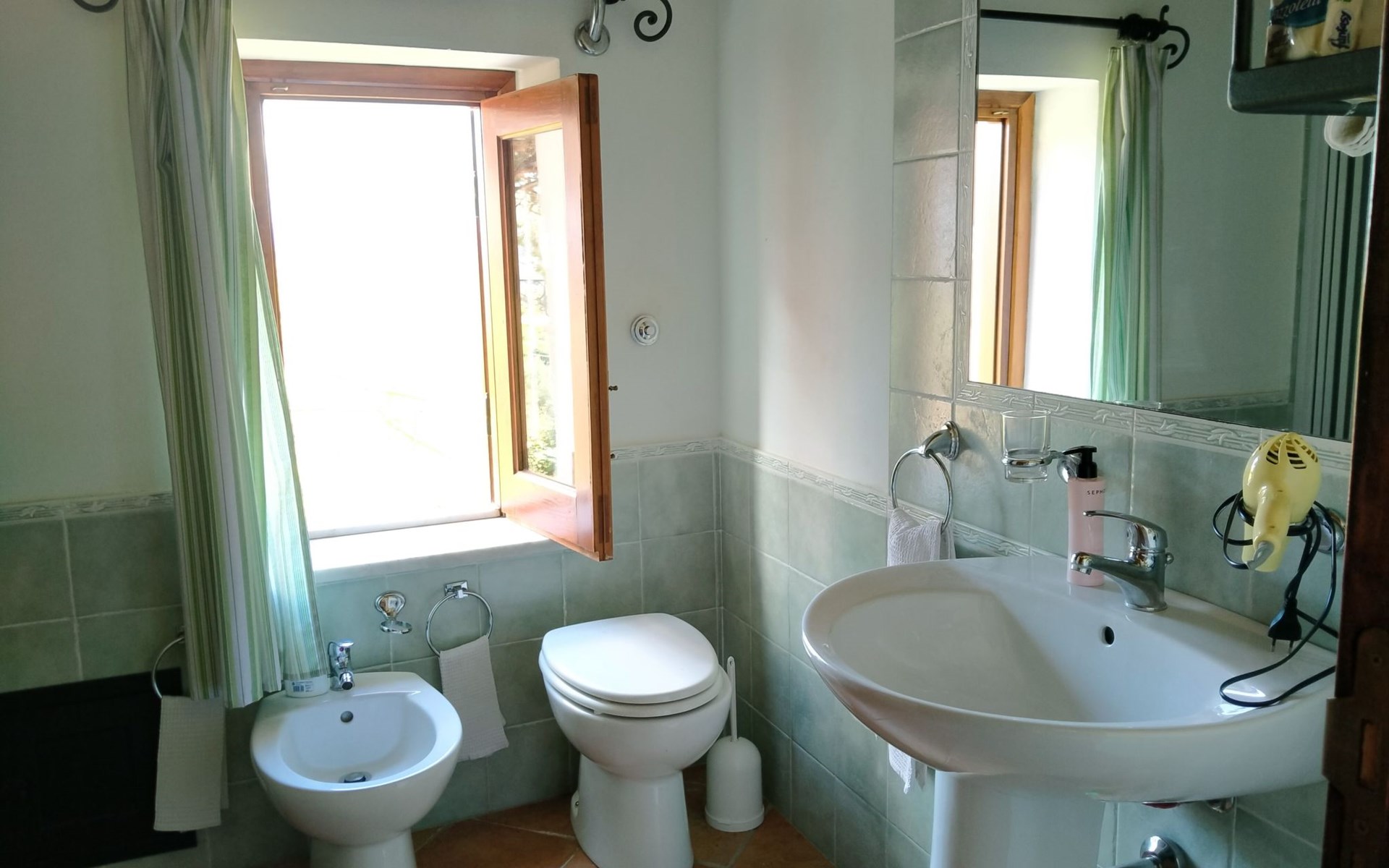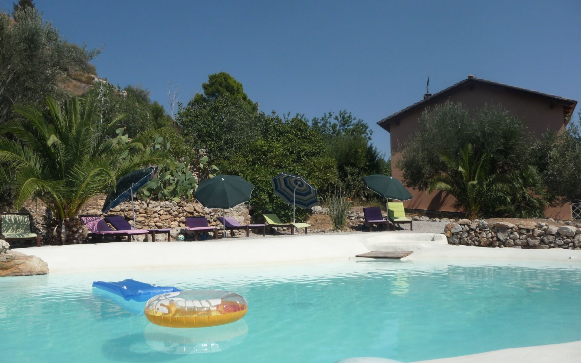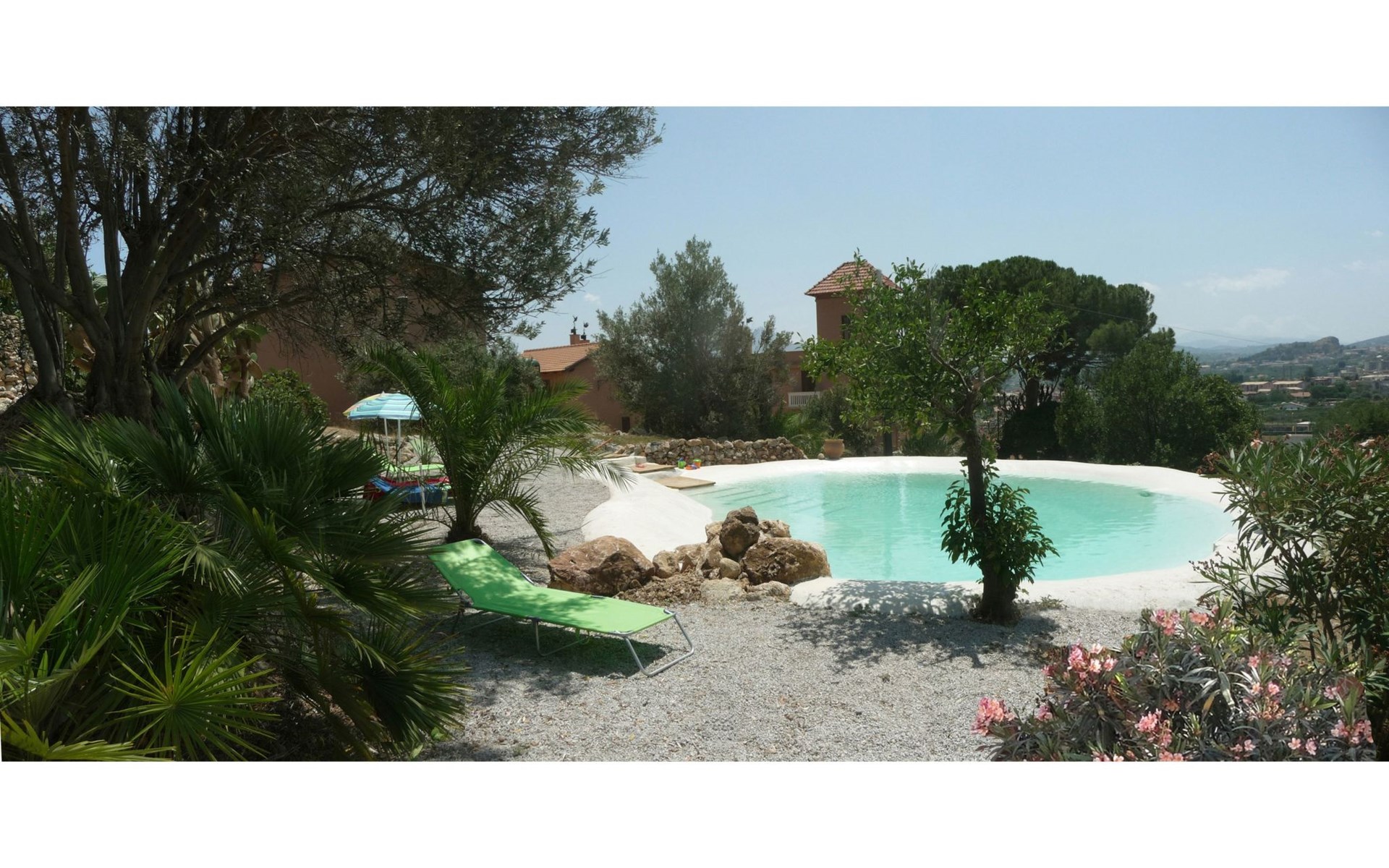 Im Außenbereich steht den Gästen eine private Loggia mit Tisch und Stühlen zur Verfügung, die sich ideal für Mahlzeiten im Freien oder für entspannende Momente eignet und einen entspannenden Blick auf den Garten und das bezaubernde Panorama des Naturparks Monte Catalfano bietet. Die Villa liegt inmitten eines großen mediterranen Gartens, der zusammen mit dem schönen, teichförmigen Swimmingpool, der von Mai bis Mitte Oktober zur Verfügung steht, Spaß und Entspannung für Erwachsene und Kinder gleichermaßen verspricht, unterstrichen durch einen spektakulären Blick auf den Monte Pellegrino und den Golf von Palermo. Darüber hinaus stehen den Gästen ein Grillplatz und ein großer Privatparkplatz zur Verfügung.