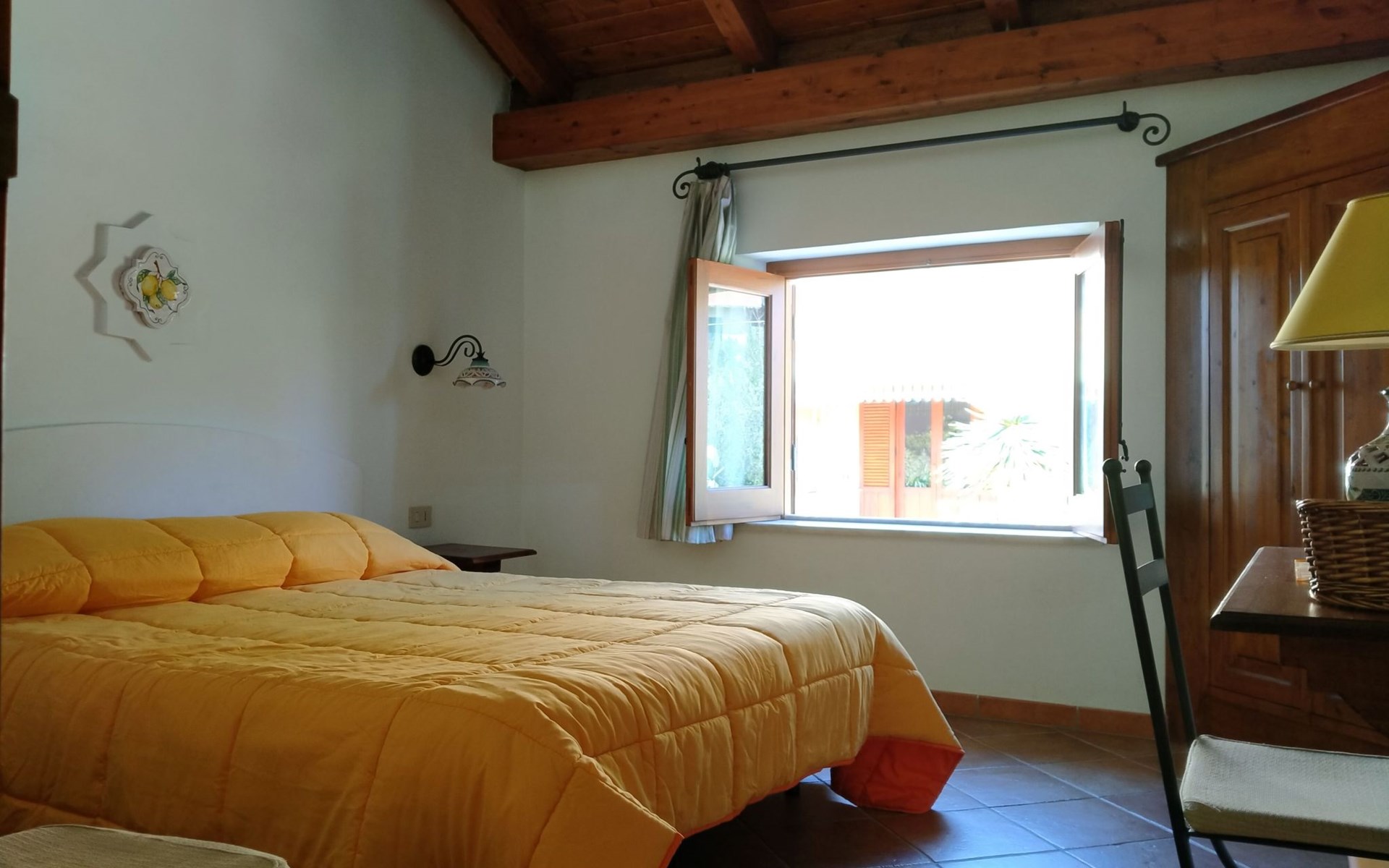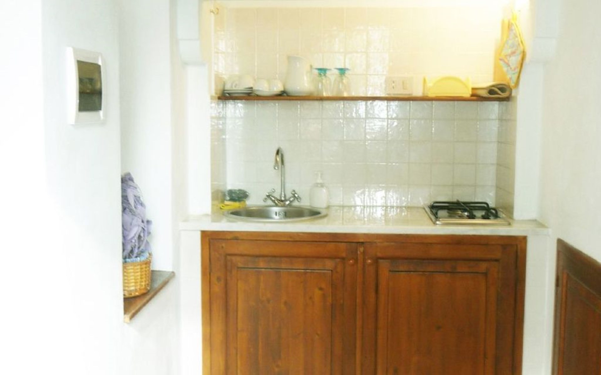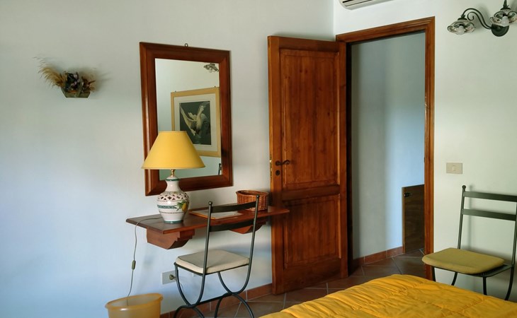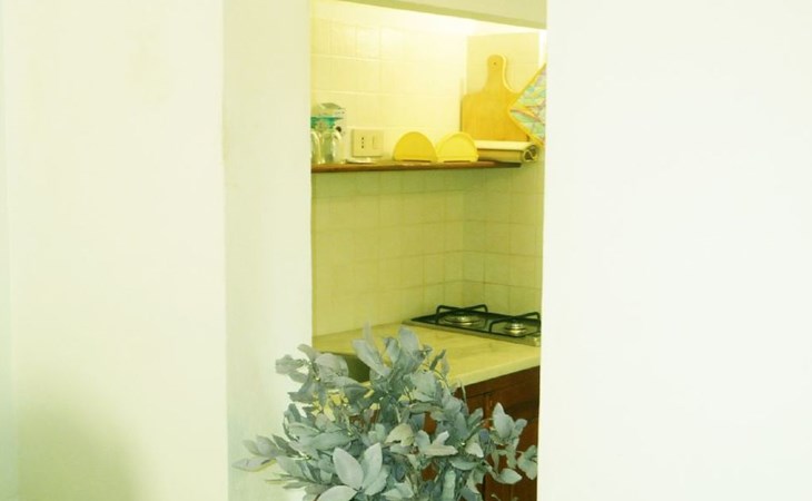 Im Inneren entfaltet sich das Fico Nero auf zwei Ebenen und bietet eine romantische und elegante Atmosphäre. Im Erdgeschoss finden die Gäste ein helles und einladendes Wohnzimmer mit Essecke, TV-Ecke und Bücherregal sowie eine Kochnische, die mit allem ausgestattet ist, was sie zur Zubereitung ihrer eigenen Mahlzeiten benötigen. Eine Mikrowelle ist auf Anfrage ebenfalls verfügbar. Die Klimaanlage sorgt sowohl im Wohnbereich als auch im Hauptschlafzimmer für maximalen Komfort. Eine Holztreppe führt in das Obergeschoss, wo sich ein geräumiges Schlafzimmer und ein helles und komfortables Badezimmer mit Dusche befinden. Auf Anfrage ist es möglich, bis zu zwei Einzelbetten im Wohnzimmer aufzustellen oder zusätzliche Einrichtungen wie ein Reisebett oder einen Hochstuhl kostenlos zu nutzen.