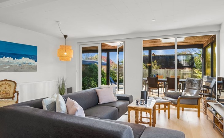 Einfamilienhaus, Baujahr 1964. 700 m vom Meer. Zur Alleinbenutzung: Grundstück 570 m2, gepflegter Garten. Terrasse (20 m2), Grill. Im Hause: Waschmaschine, Wäschetrockner. Parkplatz beim Haus. E-Ladestation. Lebensmittelgeschäft 700 m. Golfplatz 16 km. Der Besitzer akzeptiert keine Jugendgruppen.