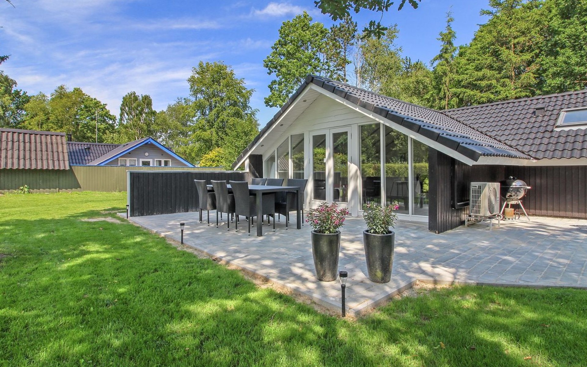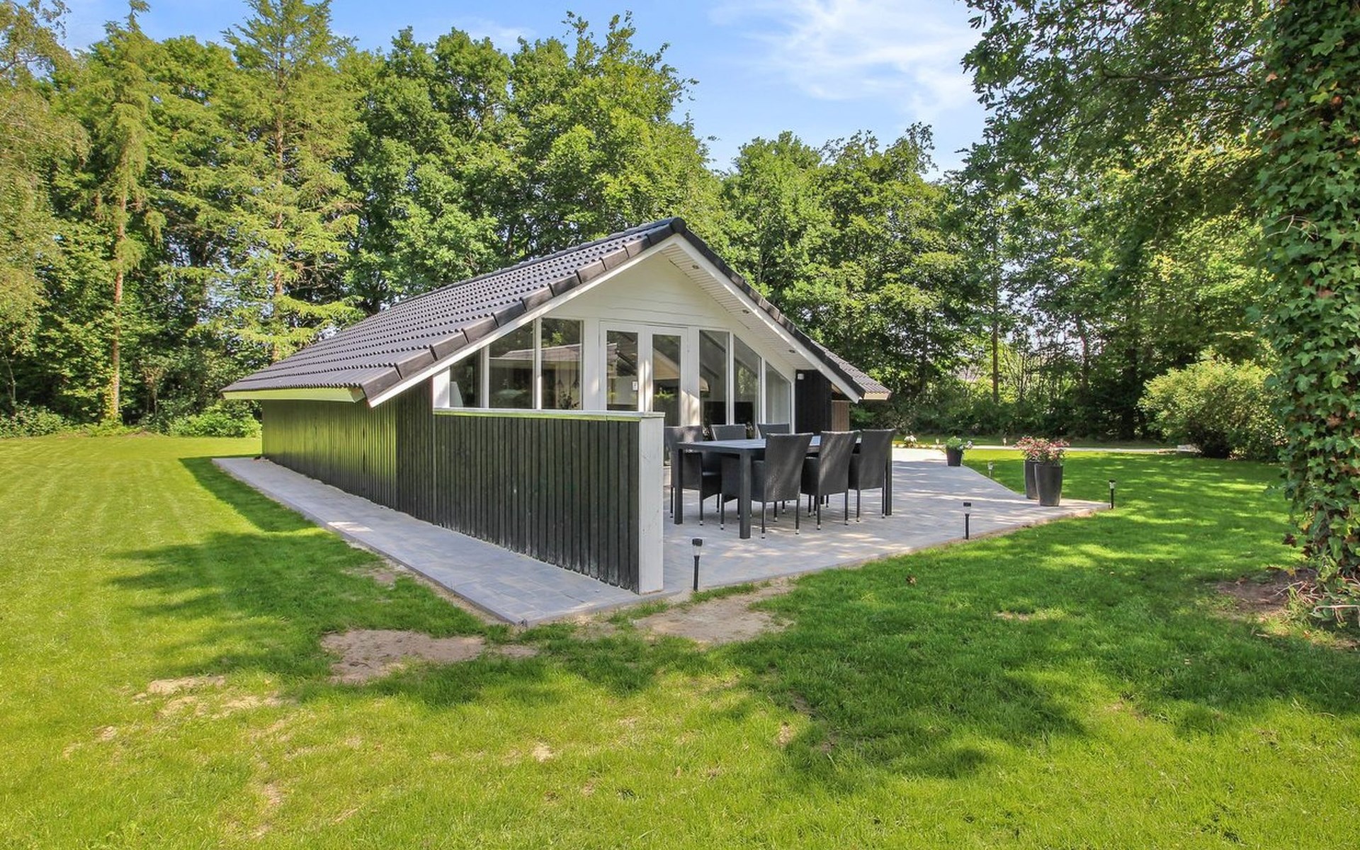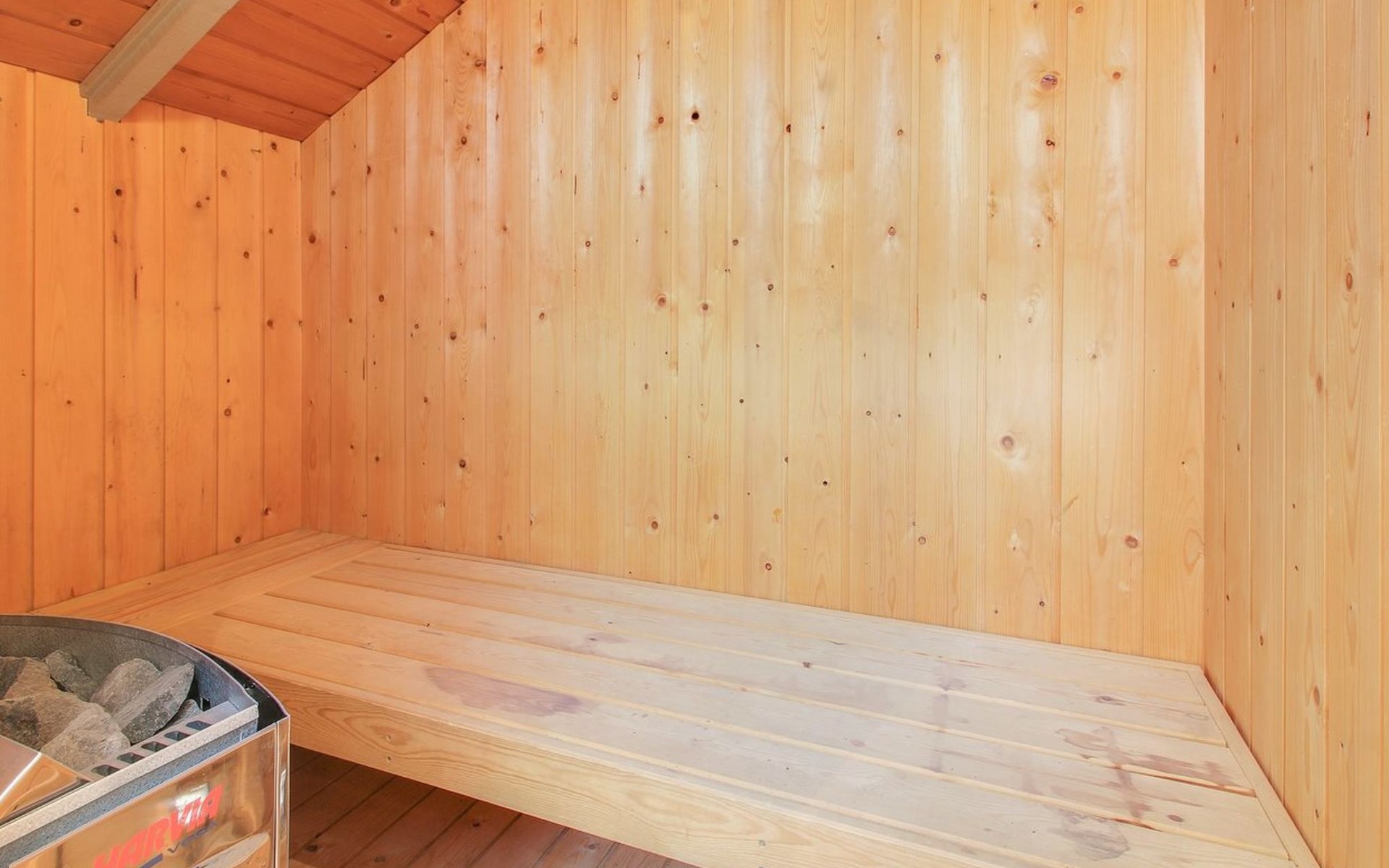 Einfamilienhaus, Baujahr 1991. Zur Alleinbenutzung: naturbelassenes Grundstück 878 m2. Terrasse (100 m2), Grill, Kinderspielplatz. Im Hause: Sauna. Parkplatz beim Haus. Lebensmittelgeschäft 3 km. Der Besitzer akzeptiert keine Jugendgruppen.