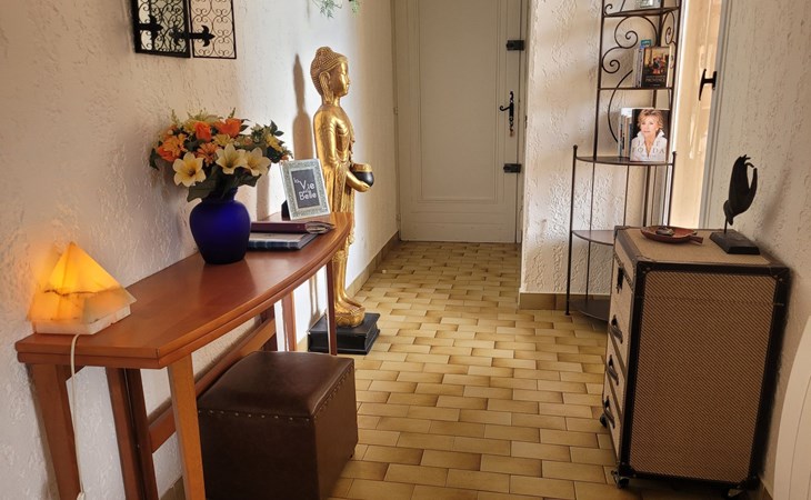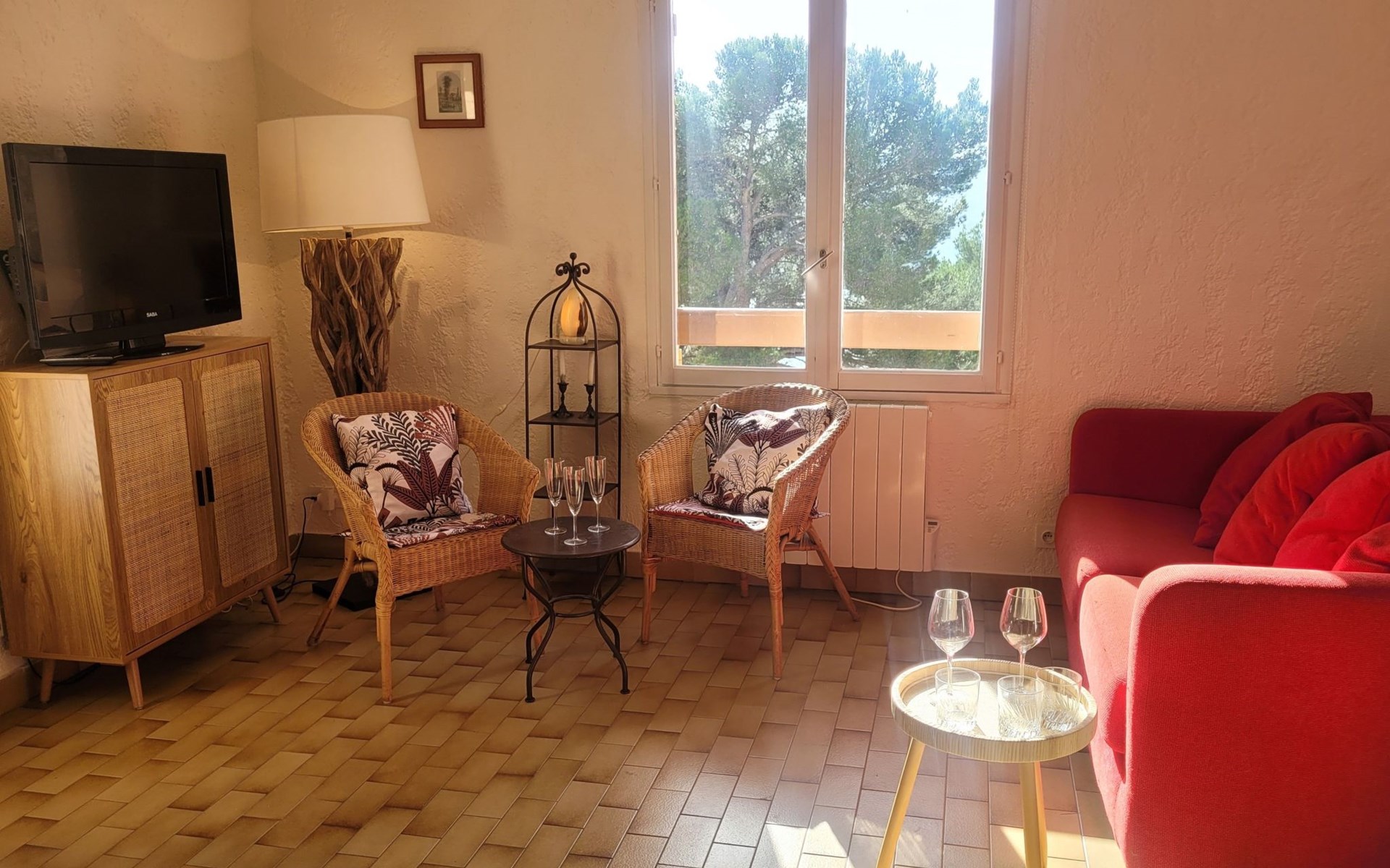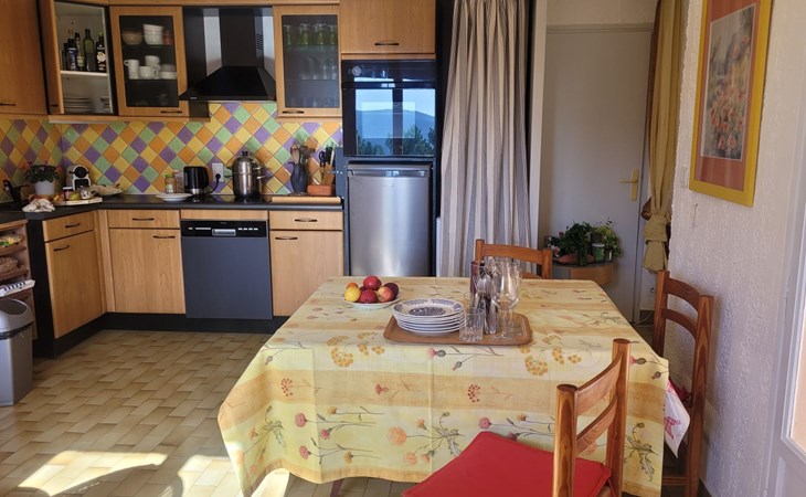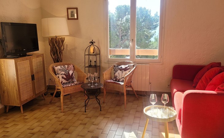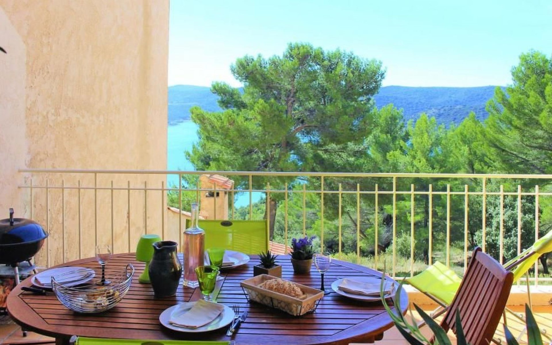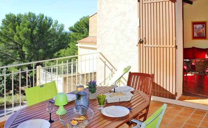 Ein überdachter Balkon mit Gartenmöbeln und Plancha ermöglicht es Ihnen, angenehme Momente zu verbringen und dabei diesen wunderschönen Ort zu genießen.