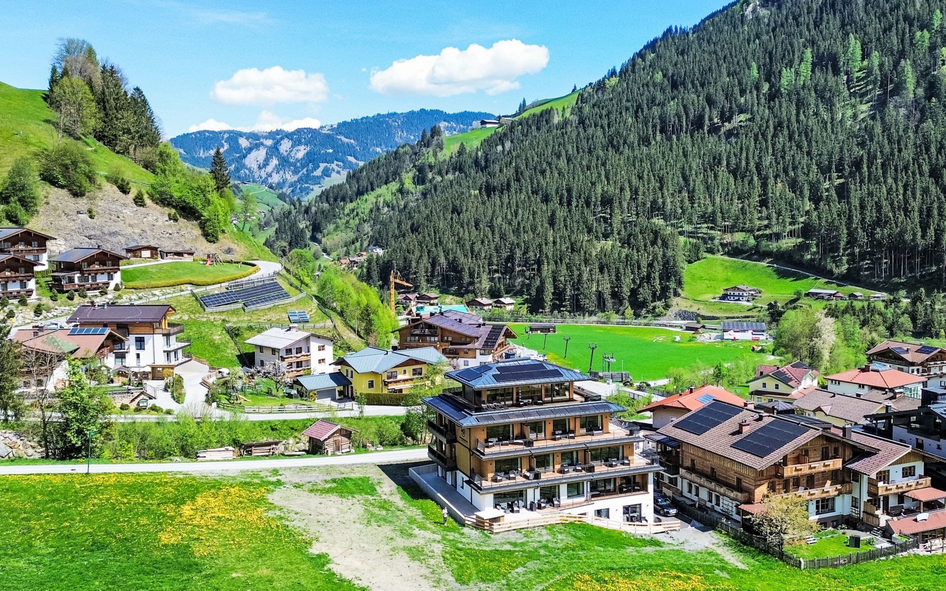 Modernes, komfortables Appartementhaus "More Mountain", auf 3 Stockwerken, Baujahr 2024. 10 Wohnungen in der Residenz. Oberhalb von Großarl, am Ortsrand, 2 km vom Zentrum von Großarl, direkt am Skigebiet. Zur Mitbenutzung: Tischtennis. Im Hause: Empfang, Aufenthaltsraum, Wireless LAN, Sauna (alles inkl.), Infrarotwärmekabine, Ruheraum, Wellnessbereich, Tischtennis, Fahrstuhl, Einstellraum für Fahrräder, Sonnenterrasse, Skiraum, Zentralheizung, Skischuhtrockner. Brötchenservice. Abstellraum vorhanden. Parkplatz beim Haus, Gemeinschaftsgarage. E-Ladestation. Supermarkt 700 m, Restaurant 250 m, Fahrradverleih 350 m, Zentrum zu Fuss in 10 Minuten erreichbar, Bushaltestelle 250 m, Bahnstation "St. Johann im Pongau" 14 km, Freibad 750 m. Golfplatz (18 Loch) 14 km, Tennis 800 m, Minigolf 1 km, Radweg 300 m, Gondelbahn 250 m, Skiverleih 350 m, Skibushaltestelle, Skischule 250 m, Kinderspielplatz 1 km. Nahe gelegene Sehenswürdigkeiten: Rucki Zucki Gaudi Alm Freizeitpark 1 km, Liechtensteinklamm 16 km, Eisriesenwelt Werfen 35 km, Krimmler Wasserfälle 100 km, Bad Gastein 49 km. Bekannte Skigebiete sind gut erreichbar: Skischaukel Großarltal-Dorfgastein 230 m, Panoramabahn Großarltal 650 m. Bekannte Seen in der Umgebung sind gut erreichbar: Zeller See / Zell am See 50 km. Wandergebiete: Tal der Almen Wanderwelt 7 km. Bitte beachten: Bei guter Schneelage Zufahrt mit den Skiern bis zum Haus.