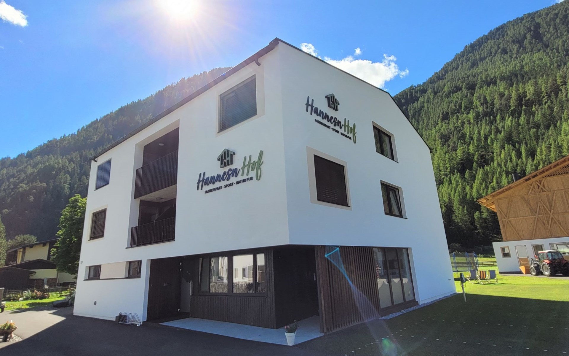Ötztal Summer Card inkludiert! grosses, modernes Appartementhaus "Hannesnhof", Baujahr 2023. Im Ortsteil Oberried, 2.5 km vom Zentrum von Längenfeld, exzellente Lage: Absolut zentral und dennoch ruhig, 200 m vom Waldrand. Zur Mitbenutzung: Wiese, Hof. Terrasse, Kinderspielplatz. Im Hause: Empfang, Aufenthaltsraum, Wireless LAN, Fahrstuhl, Einstellraum für Fahrräder, Skiraum, Zentralheizung, Waschmaschine (zur Mitbenutzung), Skischuhtrockner. Brötchenservice auf Anfrage (extra). Parkplatz (für 2 Autos) beim Haus. E-Ladestation. Supermarkt 2.5 km, Restaurant 2.5 km, Bäckerei 2.5 km, Bushaltestelle 350 m, Thermalbad "Aqua Dome Längenfeld" 4 km. Skisportanlagen 16 km, Skiverleih 2.5 km, Skibushaltestelle 350 m, Langlaufloipe. Nahe gelegene Sehenswürdigkeiten: Ötzidorf Umhausen 9 km, Adventurepark Area47 23 km. Bekannte Skigebiete sind gut erreichbar: Bergbahnen Sölden 16 km, Ötz - Hochötz 18 km. Bekannte Seen in der Umgebung sind gut erreichbar: Naturbadesee Umhausen 9 km, Piburger See Ötz 21 km. Wandergebiete: ab Haus und mit Klettersteig 1 km. Bitte beachten: Gratis Skibus. Der gratis Skibus fährt zum Skigebiet Sölden. Besitzer wohnt in separatem Hausteil.
