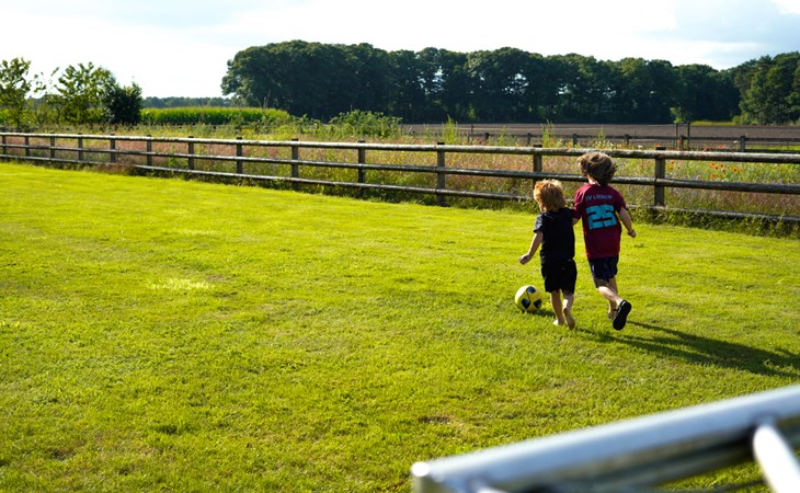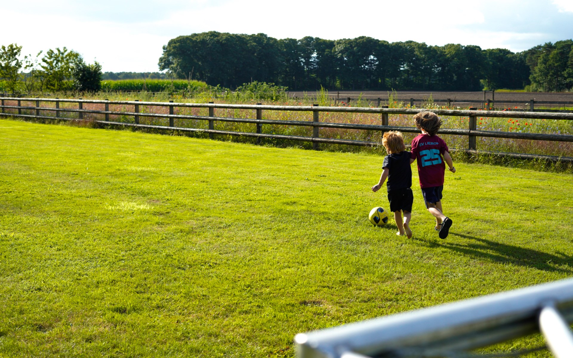 Direkt rund um die Unterkunft befinden sich große offene Felder, auf denen Kinder frei spielen, Fußball spielen oder einfach herumrennen können. Während sie ihre Energie im Grünen ausleben, genießen Sie selbst die Ruhe und die Aussicht, alles fußläufig erreichbar und ohne Trubel.