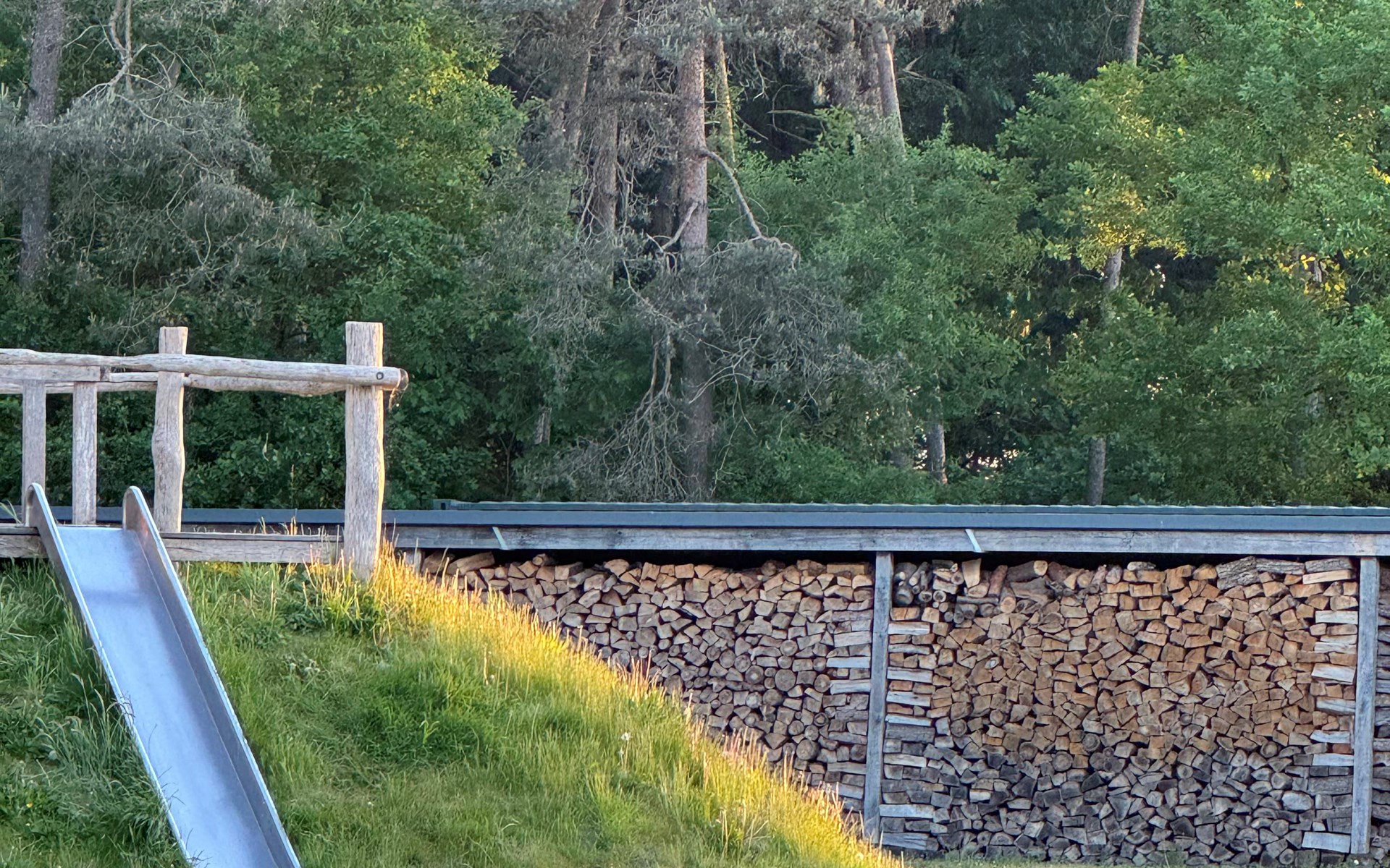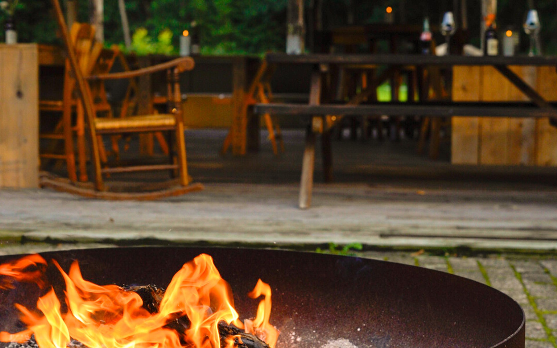 Im Außenbereich verfügt das Gruppenhaus über einen großzügigen Garten mit Blick auf den Waldrand. Unter der Überdachung können Sie gemeinsam draußen sitzen, ein Feuer im Außenkamin entfachen oder ausgiebig auf dem Grill kochen.