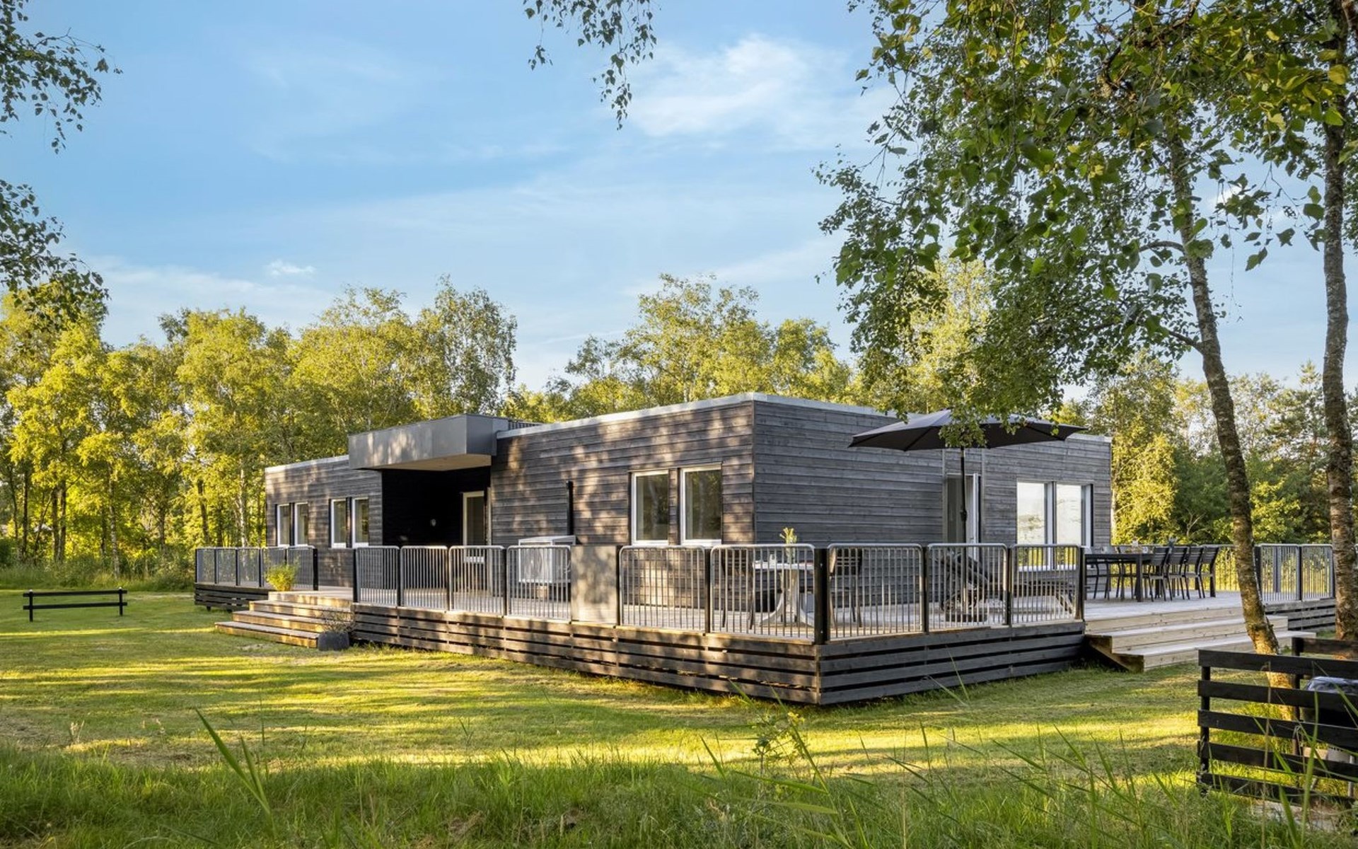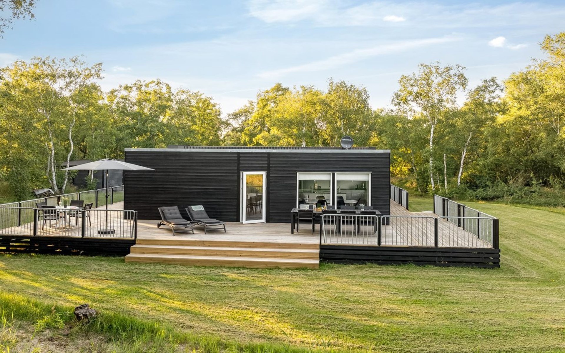 Einfamilienhaus, Baujahr 2023. 360 m vom Meer. Zur Alleinbenutzung: naturbelassenes Grundstück 2'517 m2. Terrasse (100 m2), Grill. Im Hause: Waschmaschine, Wäschetrockner. Parkplatz beim Haus. Lebensmittelgeschäft 4.5 km. Golfplatz 13.2 km. Der Besitzer akzeptiert keine Jugendgruppen.