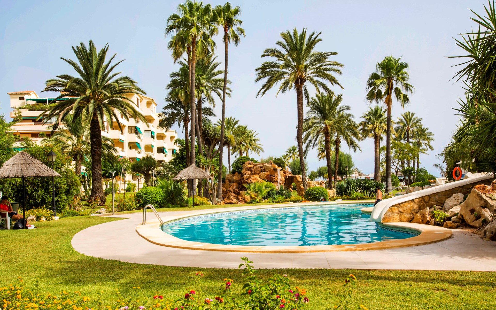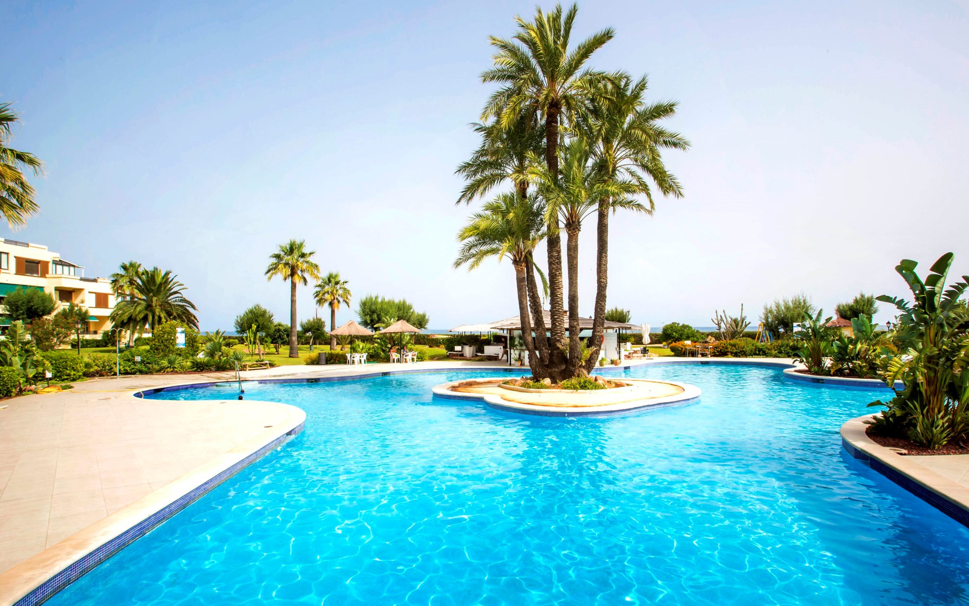Grosses, gemütliches, einfaches Appartementhaus "Playa Grande". 4 km vom Zentrum von Dénia, 50 m vom Meer, vom Strand, direkter Zugang zum Strand. Zur Mitbenutzung: Grundstück 20'000 m2 (eingezäunt), Park mit Rasen und Bäumen, wunderschöner Garten zum Entspannen, 3 Schwimmbäder (37 x 32 m, 110 - 180 cm tief, saisonale Verfügbarkeit: 01.Jan. - 31.Dez.) mit Innentreppe. Ungleichmässige Schwimmbadform, Kinderbecken, Aussendusche, Poolhaus mit WC, Kinderspielplatz (Rutschbahn, Schaukel, Sandkasten). Im Hause: Empfang, Restaurant, Bar, Fahrstuhl. Einkaufsgeschäft 50 m, Supermarkt 180 m, Restaurant, Bar 20 m, Bushaltestelle 200 m, Bahnstation 6.2 km, Fähre 5.4 km, Sandstrand 50 m. Sporthafen 5 km, Jacht-Hafen 5 km, Surfschule 5 km, Segelschule 5 km, Tennis 3 km. Bitte beachten: geeignet für Familien.