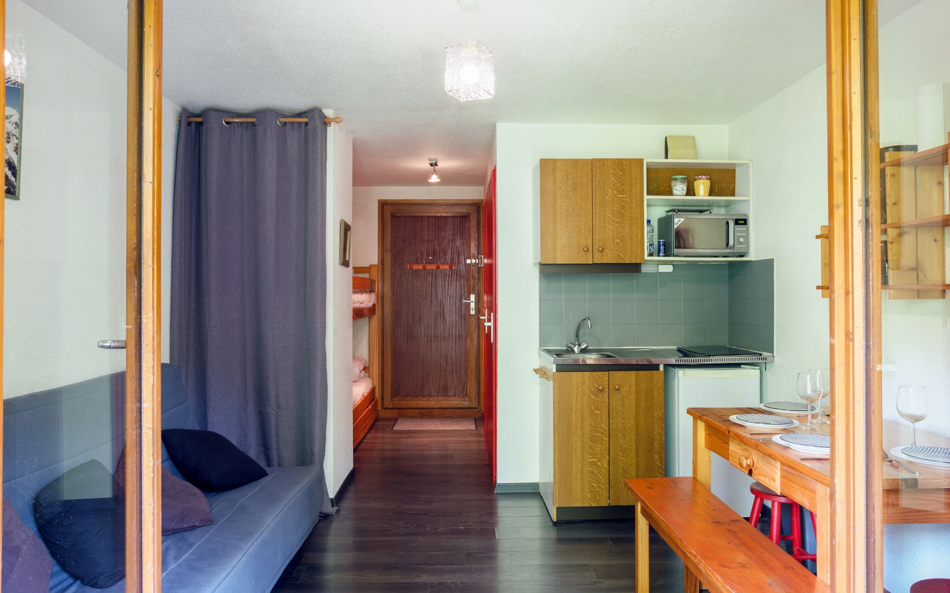 Residenz "La Piste", auf 4 Stockwerken. Am Ortsrand, 1.5 km vom Zentrum, ruhige, sonnige Lage, an einer Strasse. In der Anlage: Skiraum. Steile Zufahrt. Im Winter bitte Schneeketten mitbringen. Einkaufsgeschäft 1.5 km, Lebensmittelgeschäft 1.5 km, Restaurant 1.5 km, Zentrum zu Fuss in 25 Minuten erreichbar, Freibad 2 km, Thermalbad "Thermes de Saint Gervais" 5.8 km. Tennis 2 km, Skisportanlagen 500 m, Skipisten 9 km, Eisfeld 700 m. Bekannte Skigebiete sind gut erreichbar: Evasion Mont-Blanc 9 km. Bitte beachten: Fahrzeug empfohlen. Gratis Skibus. Die Residenz besteht aus zwei Gebäuden: A und B. Zugang zu Gebäude B mit dem Aufzug von Gebäude A und über eine Treppe, oder einen winzigen Ausstieg am unteren Ende von Gebäude B und dann Zugang über eine Treppe.