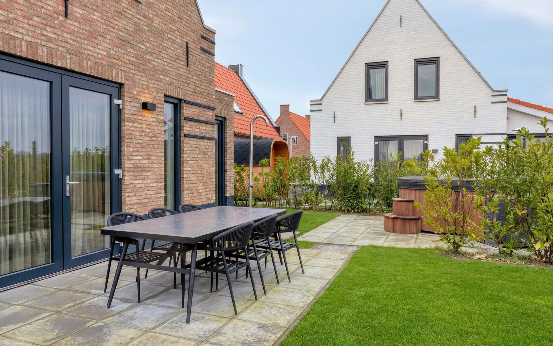 Es war ein sehr schönes neues Ferienhaus, sehr modern und großartigem Hottub und Fasssauna im Garten!