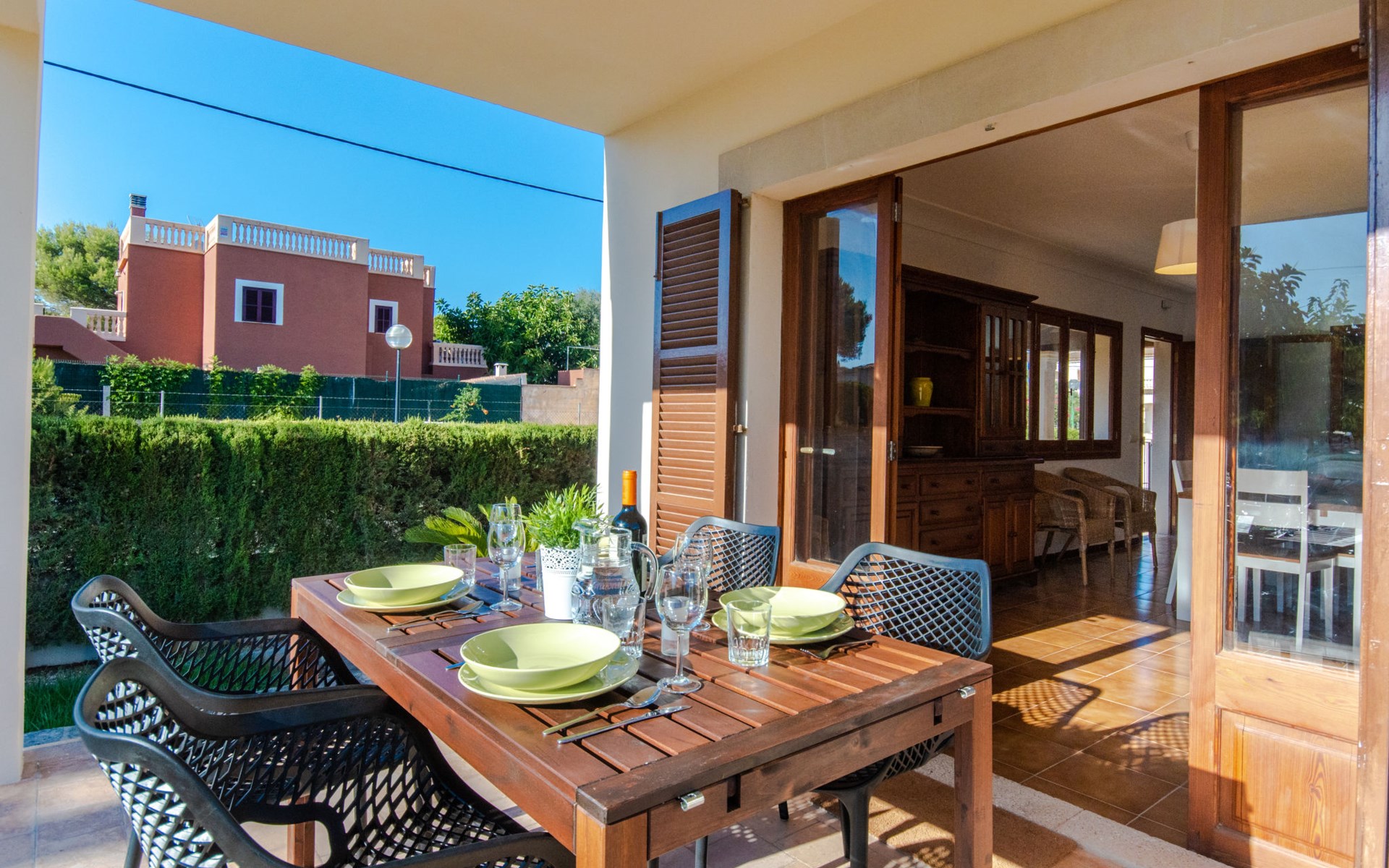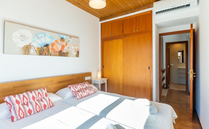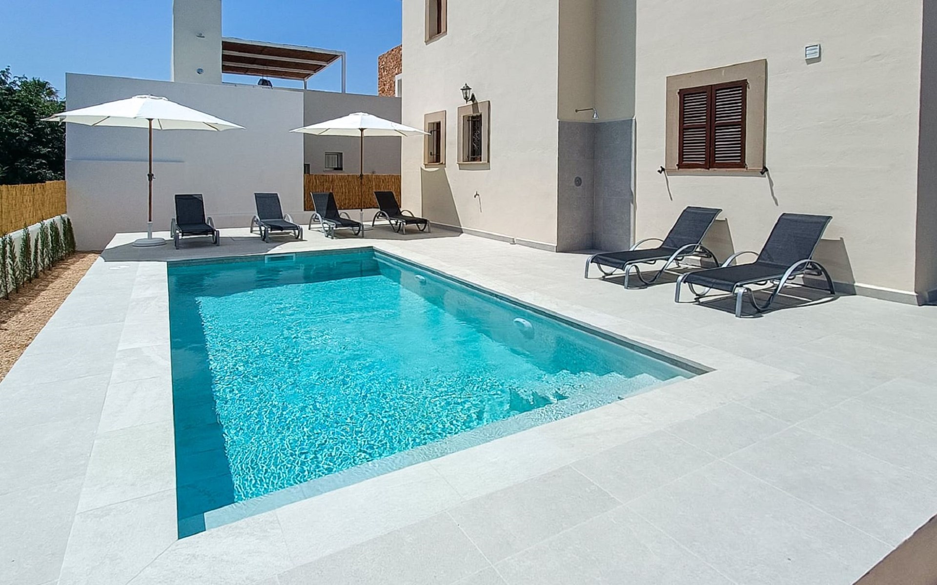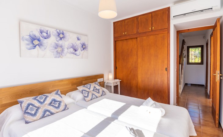 Sa Rapita 2 km von Playa de's Trenc: Sehr grosse, gemütliche, komfortable Villa "Es Trenc Pool-Beach House Xaloc 99", auf 2 Stockwerken, renoviert. Im Ort, ruhige, sonnige Lage im Villenviertel, 90 m vom Meer, 120 m vom Strand. Zur Alleinbenutzung: schöner, gepflegter Garten mit Pflanzen, Schwimmbad eckig (6 x 3 m, 150 cm tief, saisonale Verfügbarkeit: 15.Mai. - 31.Dez.). Aussendusche, Sitzplatz, Pergola, Gartenmöbel, Grill, Poolpflege durch den Besitzer/Gärtner. Im Hause: Internetzugang, Wireless LAN, Klimaanlage, Alarmanlage, Waschmaschine, Wäschetrockner. Öffentliche Parkplätze auf der Strasse. Lebensmittelgeschäft 850 m, Supermarkt, Einkaufszentrum 36 km, Restaurant, Bar 850 m, Bäckerei 850 m, Café, Fußgängerzone 700 m, Fahrradverleih 1 km, Biergarten 850 m, Zentrum zu Fuss in 15 Minuten erreichbar, Bushaltestelle 140 m, Sandstrand "Es Trenc" 2 km, Steinstrand, Felsstrand 180 m. Sporthafen 1.5 km, Jacht-Hafen 1.5 km, Golfplatz (18 Loch) 28 km. Bitte beachten: geeignet für Familien, geeignet für Senioren. Objekt geeignet für 8 Erwachsene. Der Besitzer akzeptiert keine Gruppen. Der Besitzer akzeptiert keine Jugendgruppen.