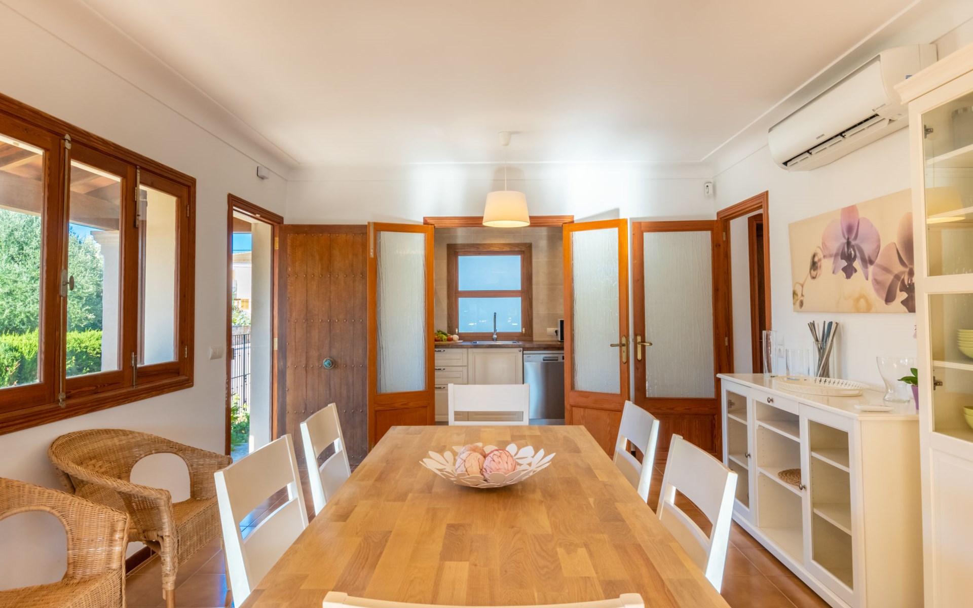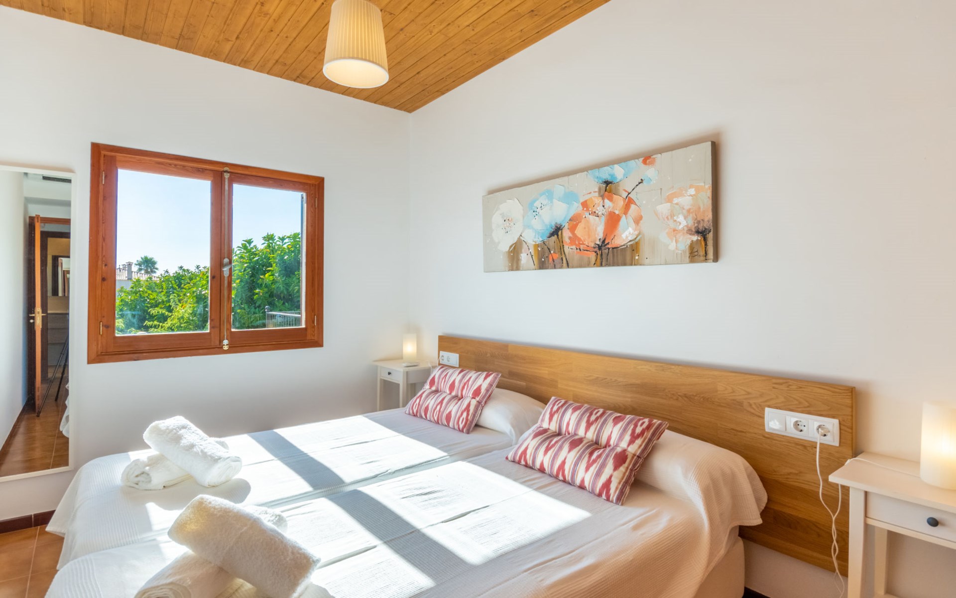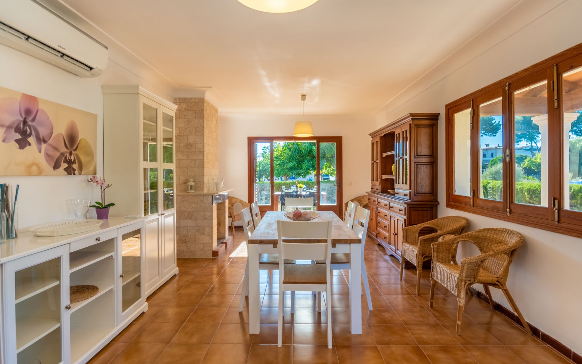 Sa Rapita 2 km von Playa de's Trenc: Sehr grosse, gemütliche, komfortable Villa "Es Trenc Pool-Beach House Xaloc 99", auf 2 Stockwerken, renoviert. Im Ort, ruhige, sonnige Lage im Villenviertel, 90 m vom Meer, 120 m vom Strand. Zur Alleinbenutzung: schöner, gepflegter Garten mit Pflanzen, Schwimmbad eckig (6 x 3 m, 150 cm tief, saisonale Verfügbarkeit: 15.Mai. - 31.Dez.). Aussendusche, Sitzplatz, Pergola, Gartenmöbel, Grill, Poolpflege durch den Besitzer/Gärtner. Im Hause: Internetzugang, Wireless LAN, Klimaanlage, Alarmanlage, Waschmaschine, Wäschetrockner. Öffentliche Parkplätze auf der Strasse. Lebensmittelgeschäft 850 m, Supermarkt, Einkaufszentrum 36 km, Restaurant, Bar 850 m, Bäckerei 850 m, Café, Fußgängerzone 700 m, Fahrradverleih 1 km, Biergarten 850 m, Zentrum zu Fuss in 15 Minuten erreichbar, Bushaltestelle 140 m, Sandstrand "Es Trenc" 2 km, Steinstrand, Felsstrand 180 m. Sporthafen 1.5 km, Jacht-Hafen 1.5 km, Golfplatz (18 Loch) 28 km. Bitte beachten: geeignet für Familien, geeignet für Senioren. Objekt geeignet für 8 Erwachsene. Der Besitzer akzeptiert keine Gruppen. Der Besitzer akzeptiert keine Jugendgruppen.