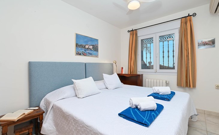 - Schlafzimmer mit Klimaanlage, Doppelbett (190 x 140 cm) und Ventilator