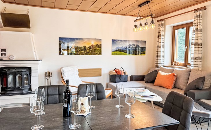 Modernes Zweifamilienhaus "LuxuSölk", renoviert im Jahre 2023. 300 m vom Zentrum von Stein an der Enns, am Ortsrand, 15 km vom Zentrum von Haus im Ennstal, 20 km vom Zentrum von Schladming, im Grünen. Zur Mitbenutzung: Garten (eingezäunt). Gartenmöbel, Grill, Kinderspielplatz. Im Hause: Sauna, Sprudelbad (extra). Ruheraum, Wellnessbereich (extra), Skiraum. Parkplatz (für 2 Autos) auf dem Grundstück. E-Ladestation. Einkaufsgeschäft 300 m, Restaurant 300 m, Bushaltestelle 250 m, Bahnstation "Stein an der Enns", Freibad 5 km, Hallenbad 5 km, Badesee "Aich" 10 km. Golfplatz (18 Loch) 16 km, Skilift 10 km, Skipisten 10 km. Bekannte Skigebiete sind gut erreichbar: Hauser Kaibling 14 km. Bekannte Seen in der Umgebung sind gut erreichbar: Steirischer Bodensee 17 km, Putterersee 18 km. Wandergebiete: Großsölk / Naturpark Sölktäler 6 km. Aufladen von Elektroautos am Haus gegen Gebühr möglich (je nach Verbrauch). Wellnessbereich zur Mitbenutzung aller Hausbewohner mit Sauna, Sprudelbad und Entspannungs-Liegen im Erdgeschoss (Gebühr). Spielplatz im Garten zur Mitbenutzung (Eltern haften für Ihre Kinder). Aufladen von E-Bikes am Haus gratis.