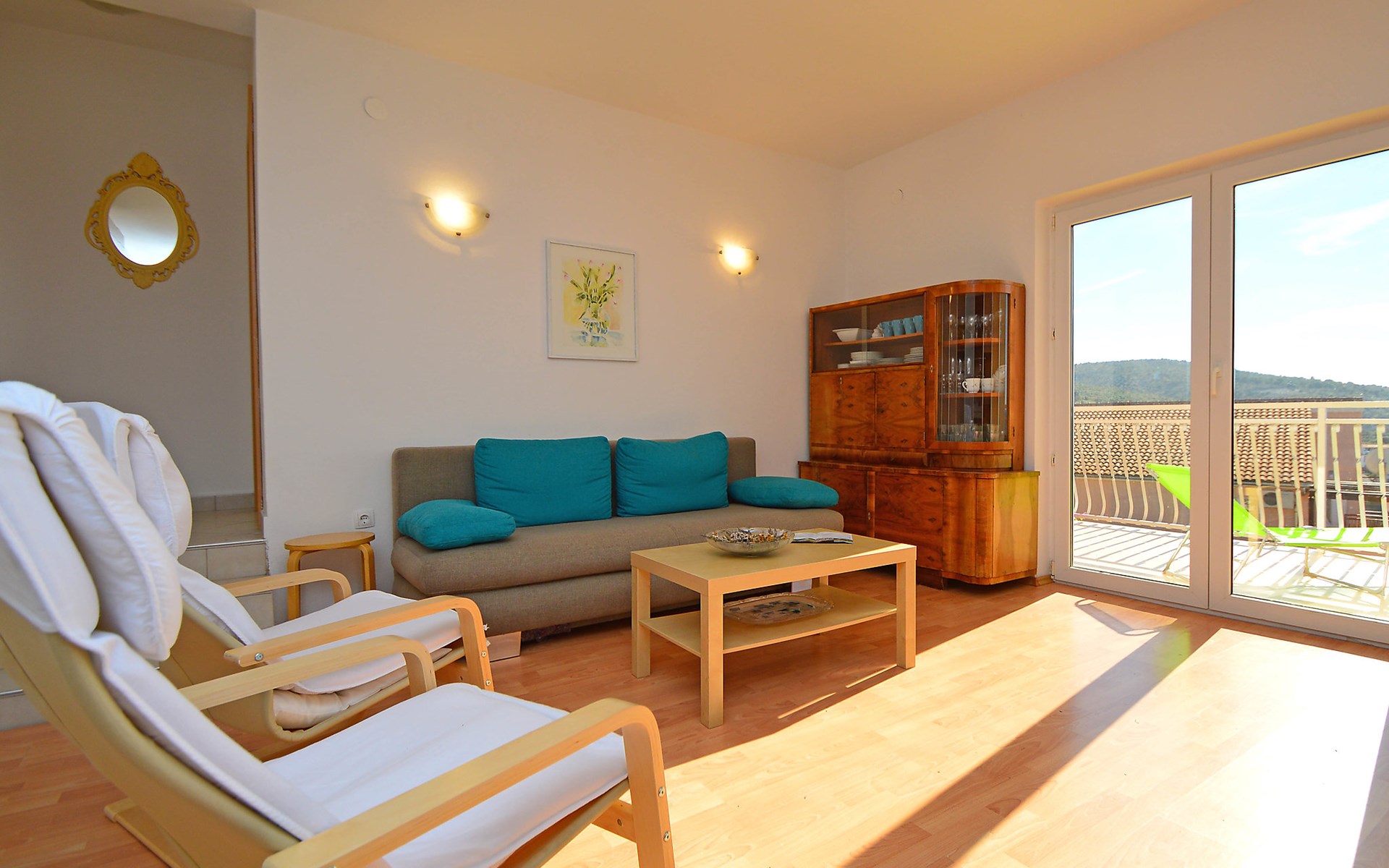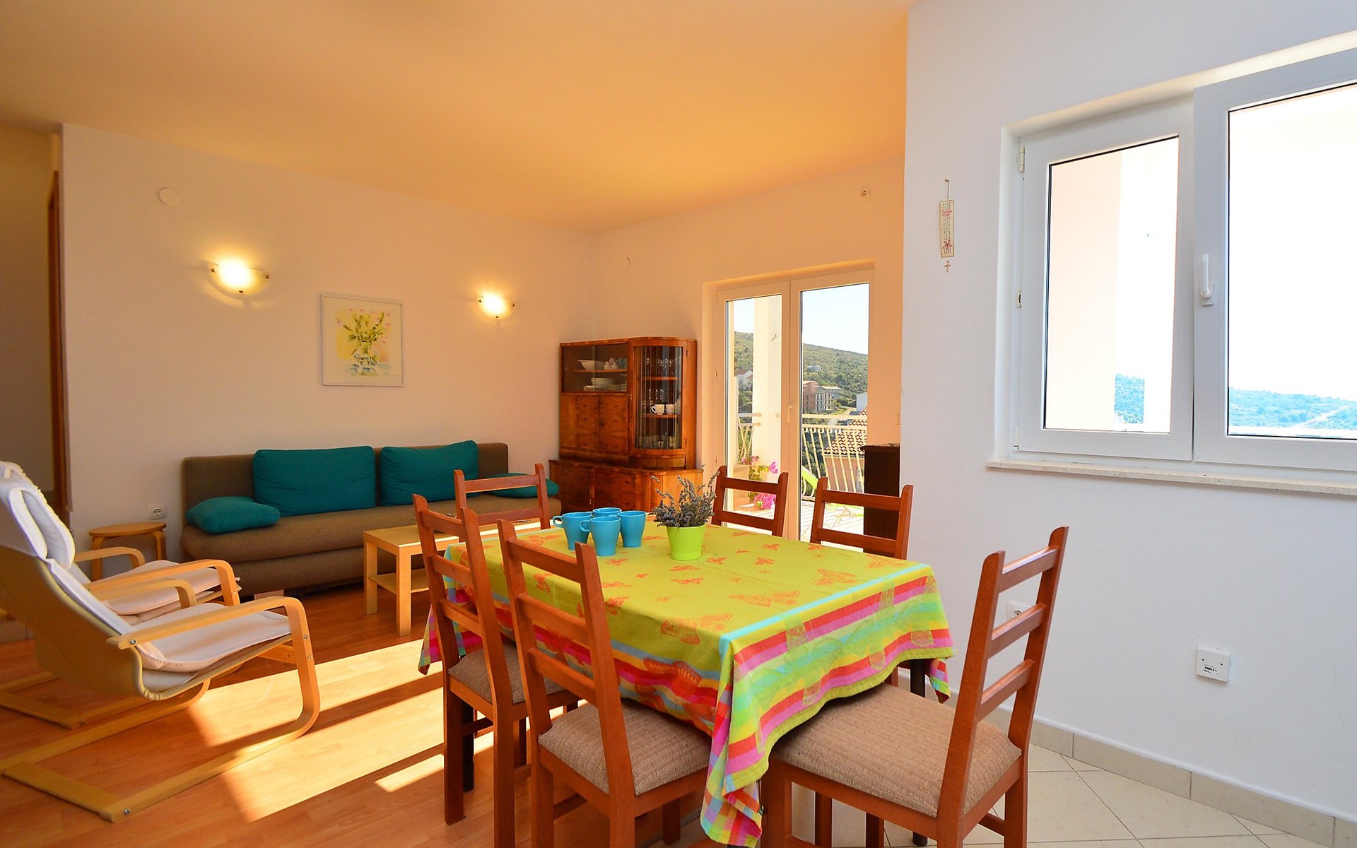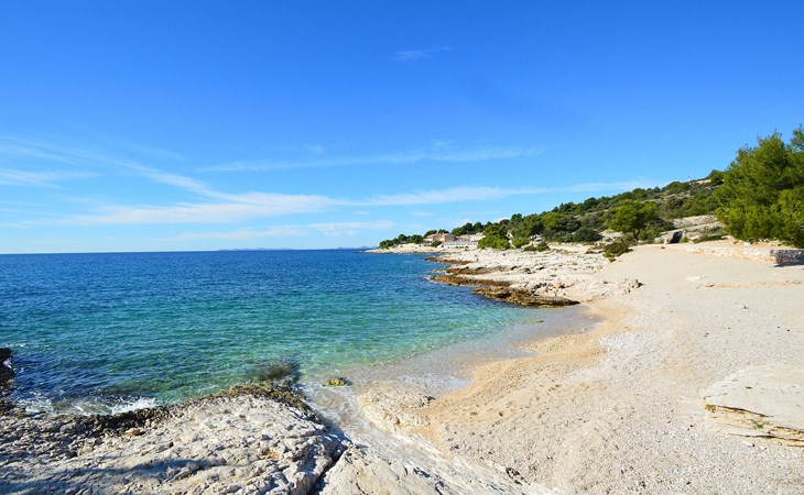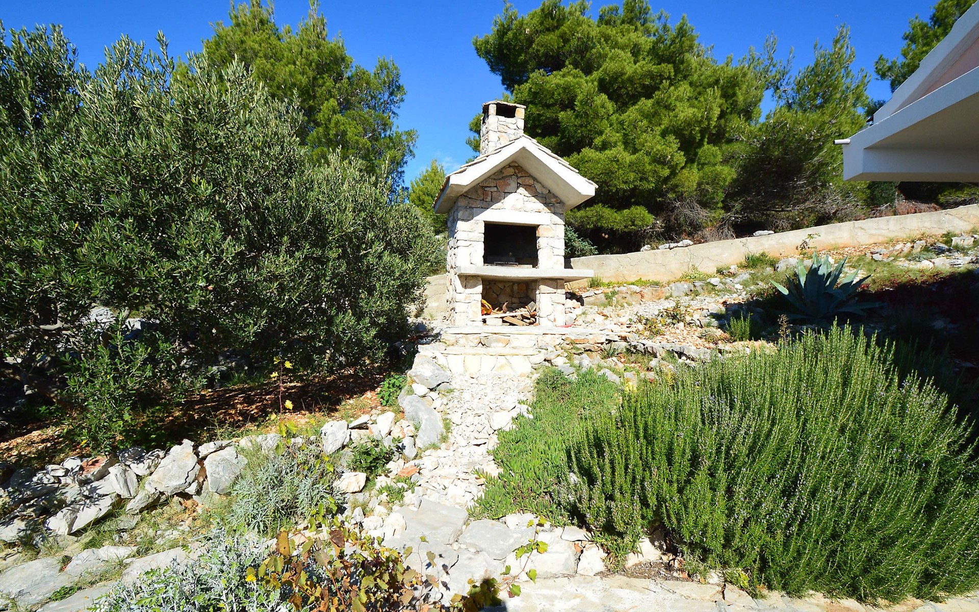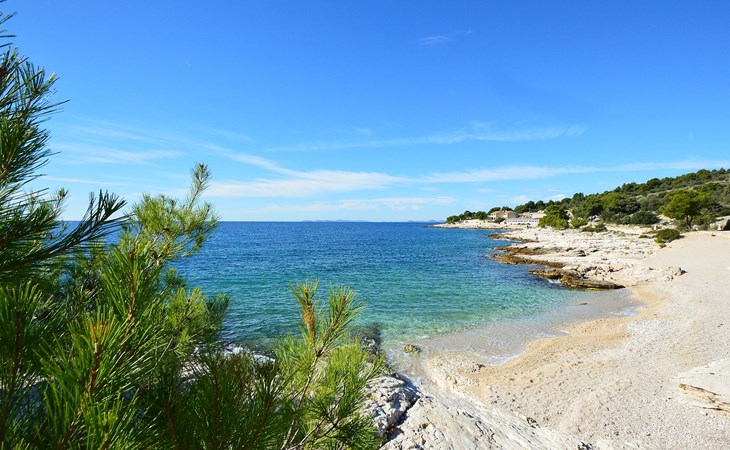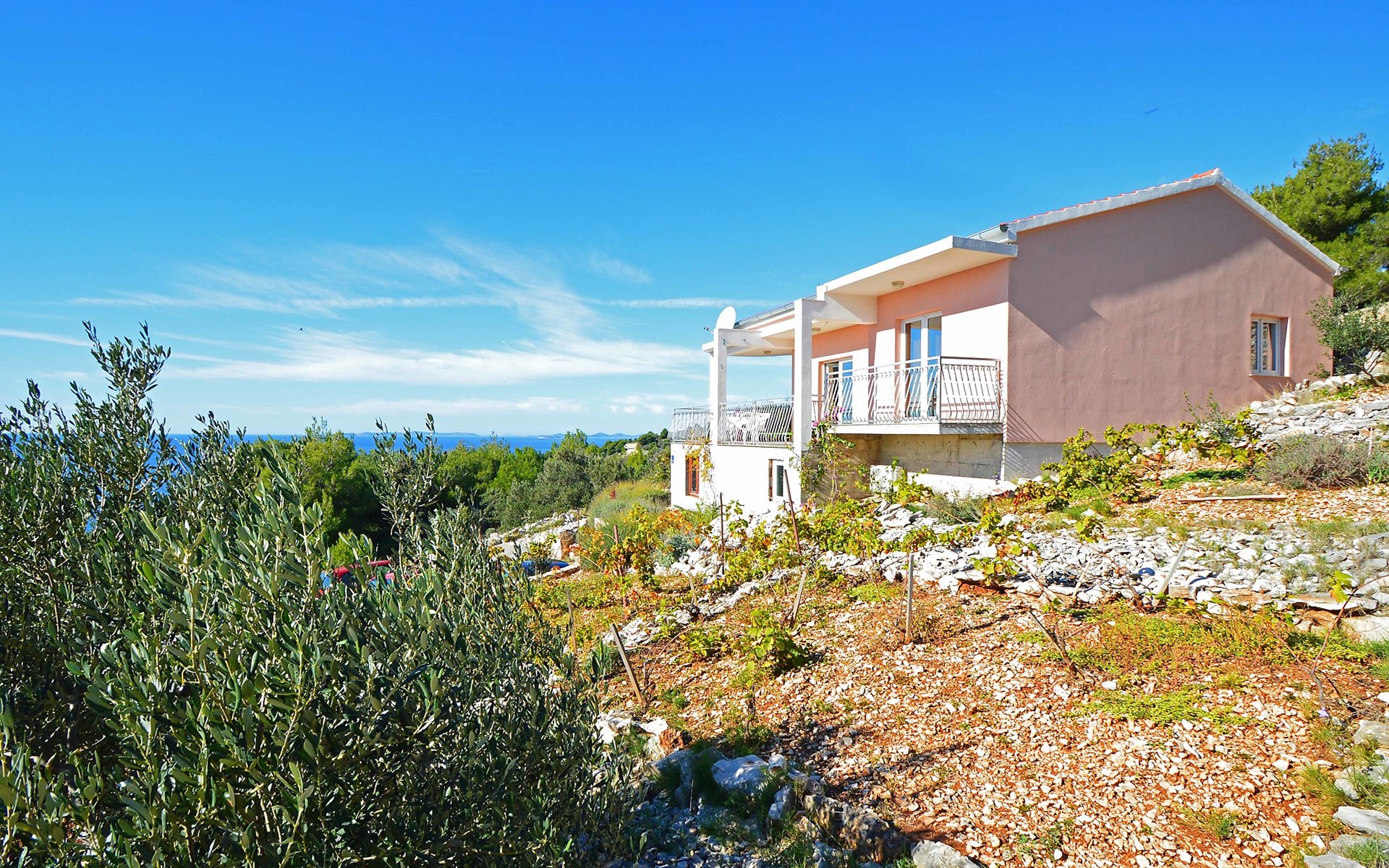 Einfamilienhaus "Mira". 3.5 km vom Zentrum von Primošten, ruhige, sonnige, erhöhte Lage, 370 m vom Meer, 370 m vom Strand. Zur Alleinbenutzung: Grundstück 700 m2. Grill. Im Hause: Internetzugang, Waschmaschine. Parkplatz (für 3 Autos) beim Haus auf dem Grundstück. Einkaufsgeschäft 1.5 km, Restaurant 650 m, Café 370 m, Bushaltestelle 600 m, Kieselstrand, Felsstrand 370 m, Tauchzentrum 1.5 km.
