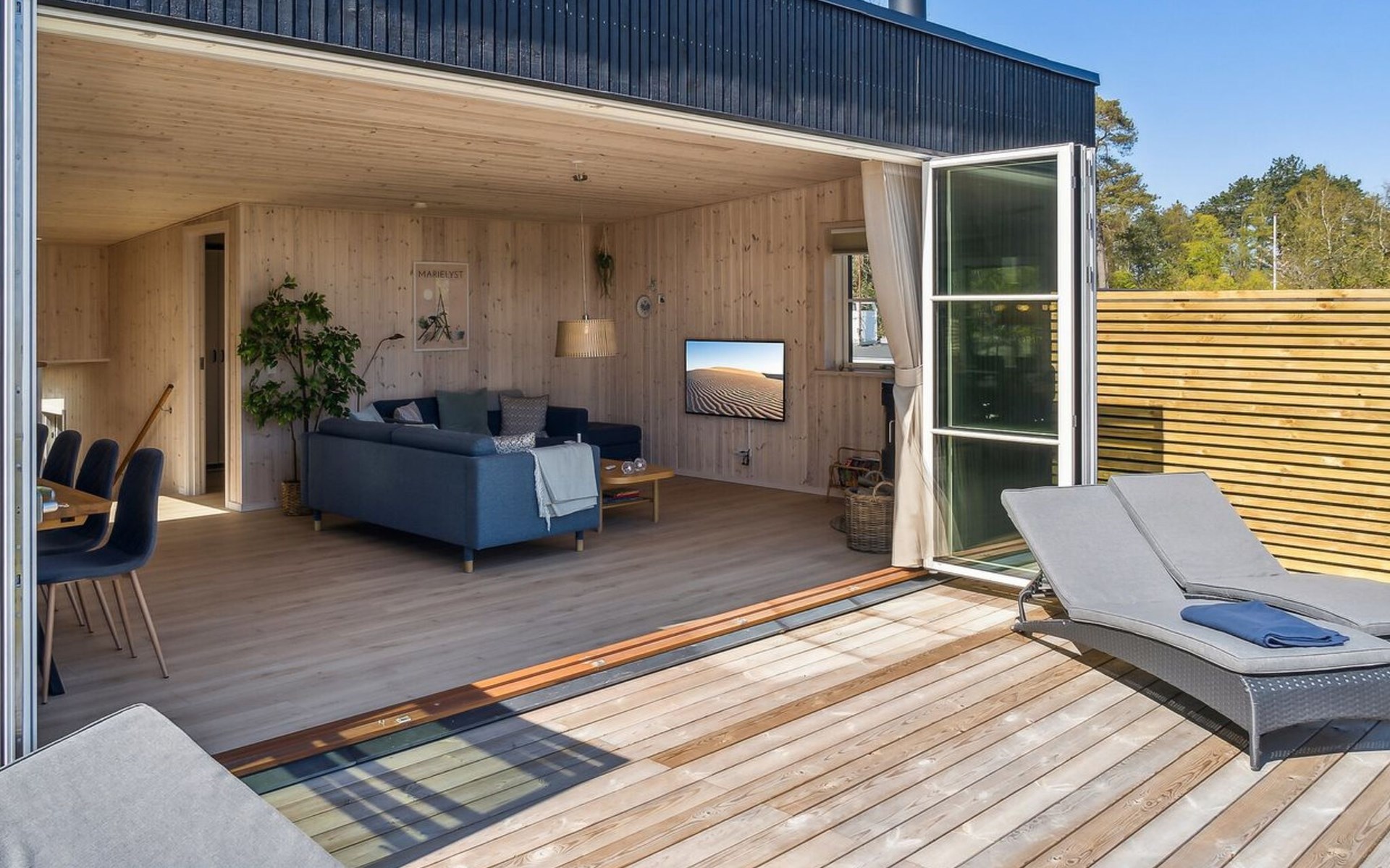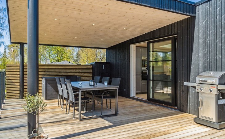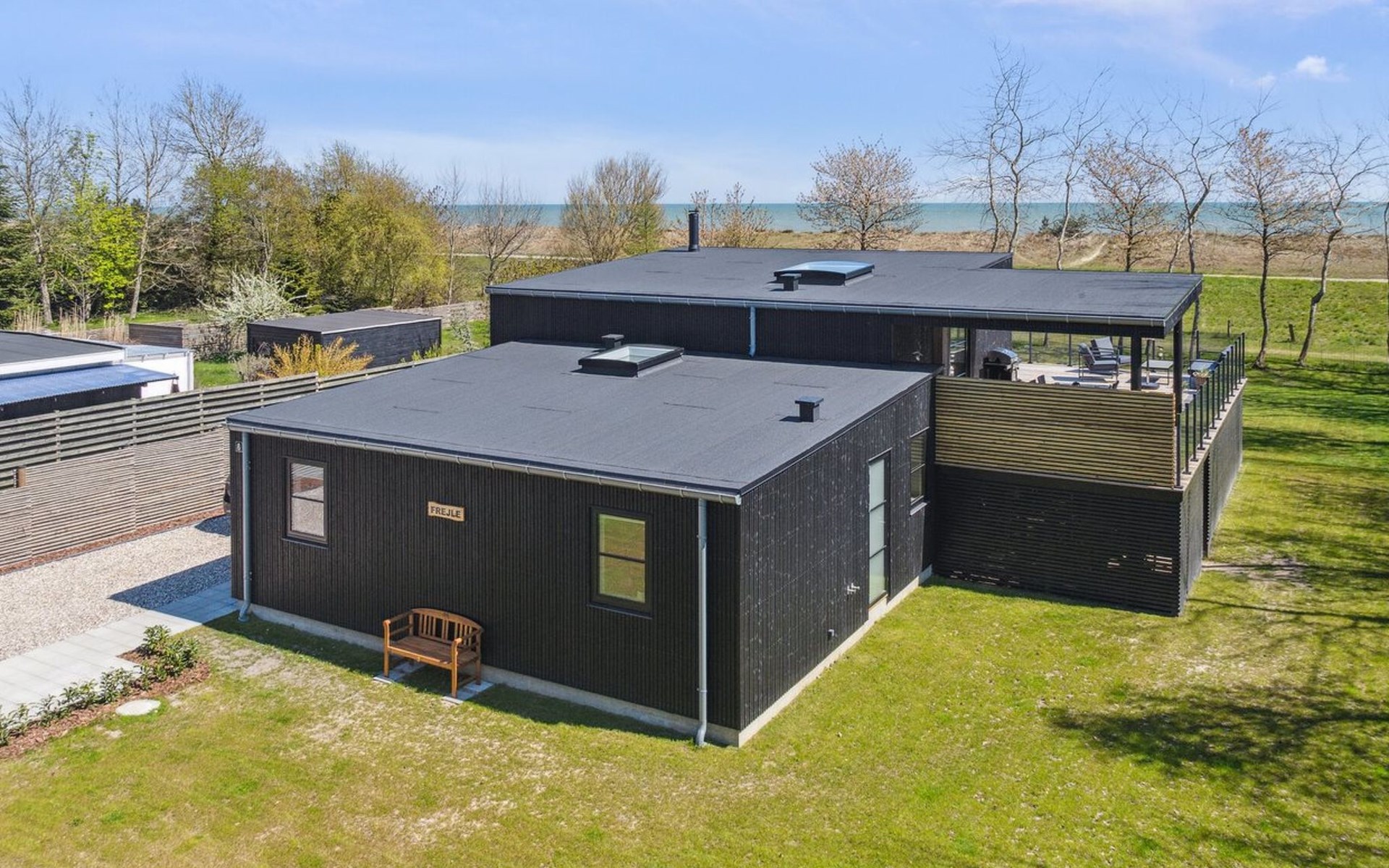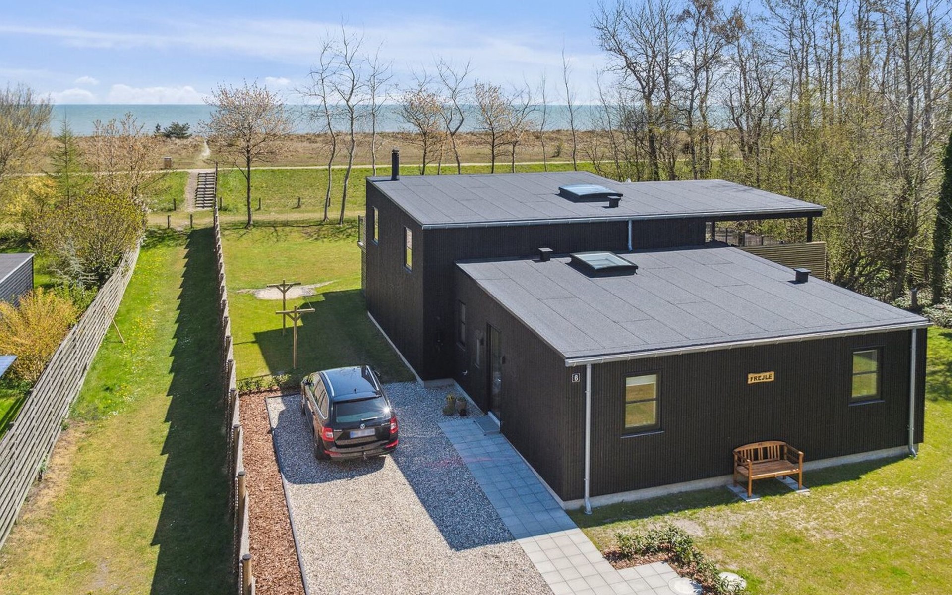 Einfamilienhaus, Baujahr 2022. 90 m vom Meer. Zur Alleinbenutzung: naturbelassenes Grundstück 1'050 m2. Terrasse (70 m2), Grill. Im Hause: Waschmaschine, Wäschetrockner. Parkplatz beim Haus. E-Ladestation. Lebensmittelgeschäft 900 m. Der Besitzer akzeptiert keine Jugendgruppen.