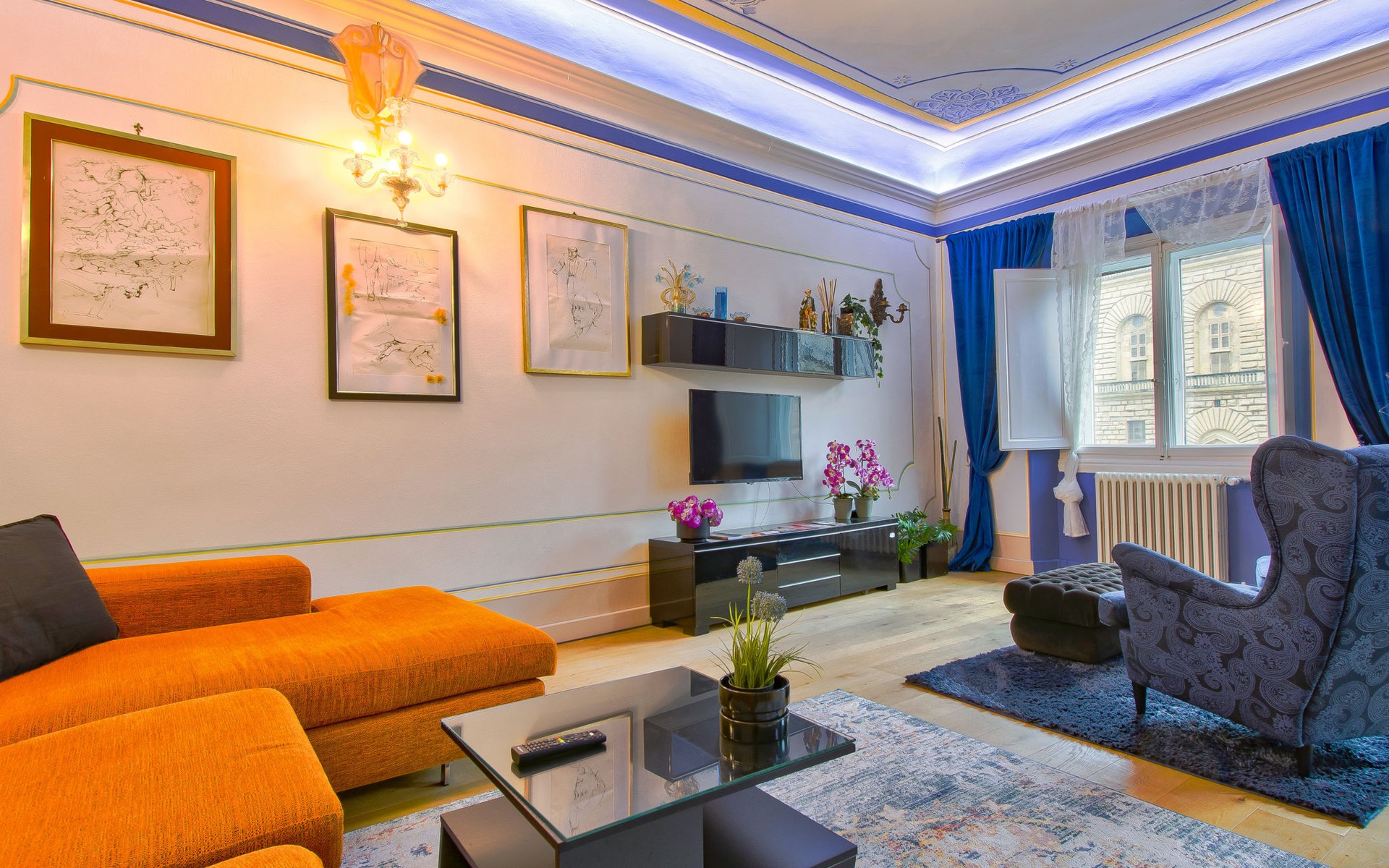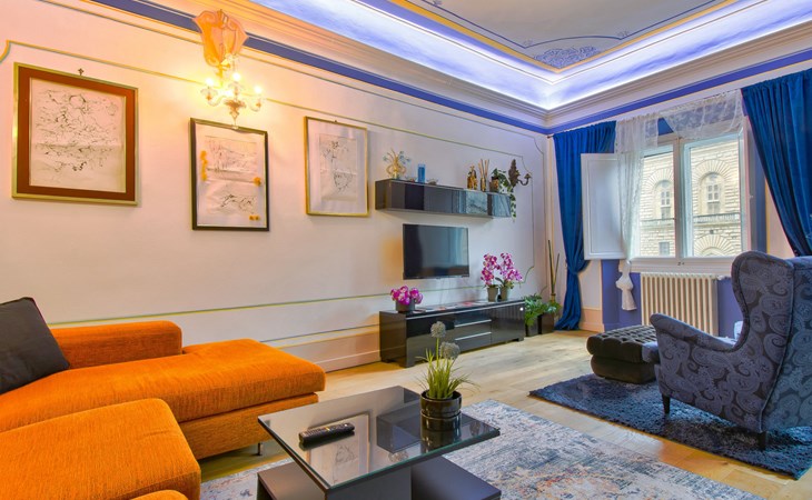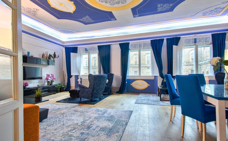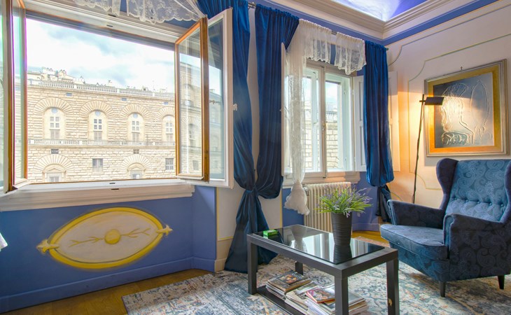 Die von uns vorgeschlagene Wohnung befindet sich in einem Gebäude aus dem 16. Jahrhundert in der Via Maggio im Stadtteil Oltrarno von Florenz, einer der an historischen Gebäuden reichsten Straßen der Stadt. Ab dem 16. Jahrhundert erhielt die Straße durch die Nähe zum Palazzo Pitti und dem großherzoglichen Hof eine neue und größere Bedeutung, alle bedeutenden Familien bauten hier Residenzen und Paläste. Appartementhaus. Im Ortszentrum von Firenze, im Bezirk Piazza Pitti, ruhige Lage, im Herzen der Stadt. Im Hause: Fahrstuhl. Einkaufsgeschäft, Supermarkt 50 m, Restaurant 80 m, Bushaltestelle 100 m, Bahnstation "Firenze Santa Maria Novella" 1.5 km, Sandstrand "Viareggio/Forte dei Marmi" 90 km, Felsstrand "Castiglioncello" 90 km, Thermalbad "Montecatini Terme" 50 km. Golfplatz (18 Loch) 15 km. Nahe gelegene Sehenswürdigkeiten: Piazza Pitti 100 m, Ponte Vecchio 450 m, Galleria degli Uffizi 750 m, Museo Nazionale del Bargello 1.1 km, Cappella Brancacci, Piazza del Duomo 1.2 km, Galleria dell'Accademia 1.7 km. Die Wohnung befindet sich in einer für den Verkehr begrenzt zugänglichen Zone (ZTL).