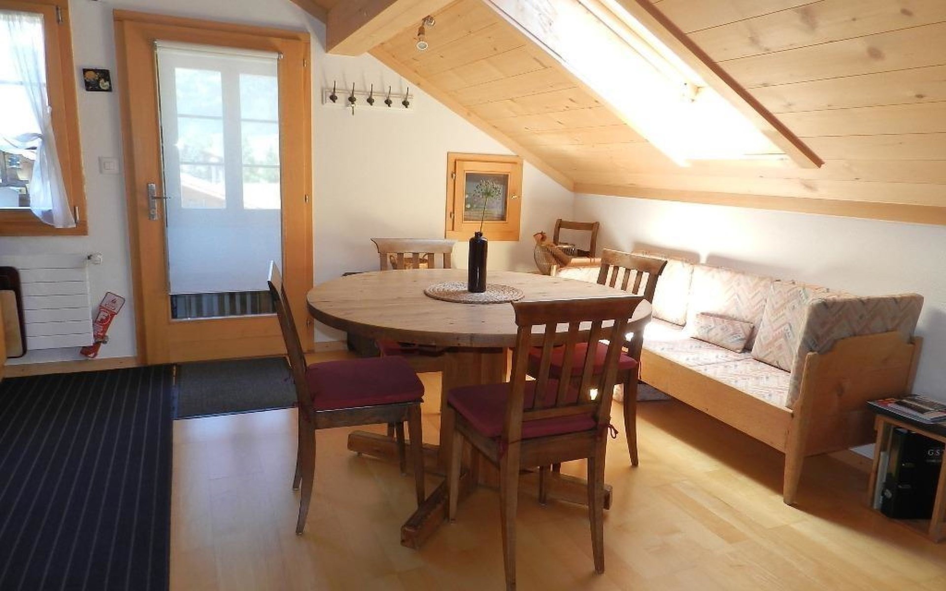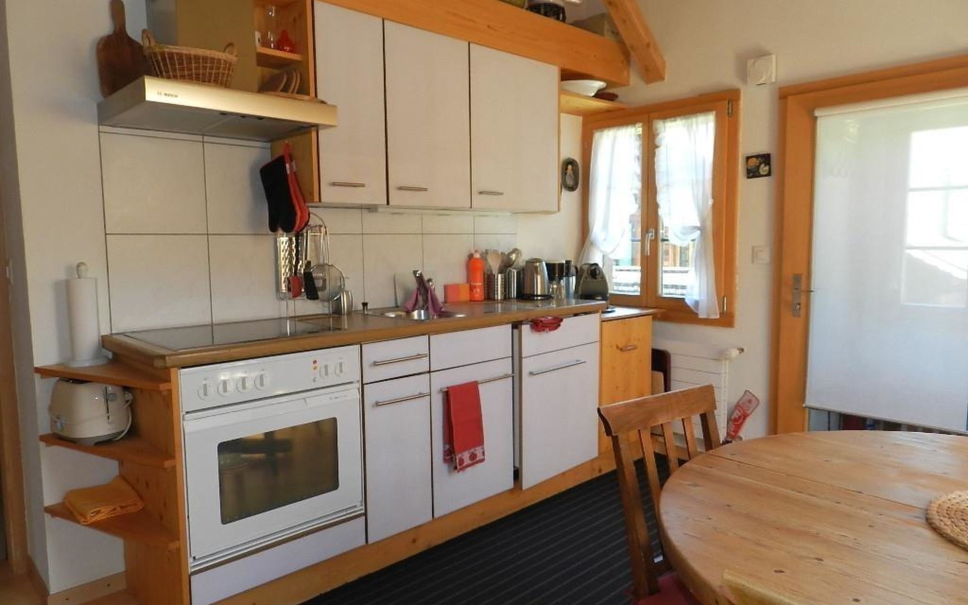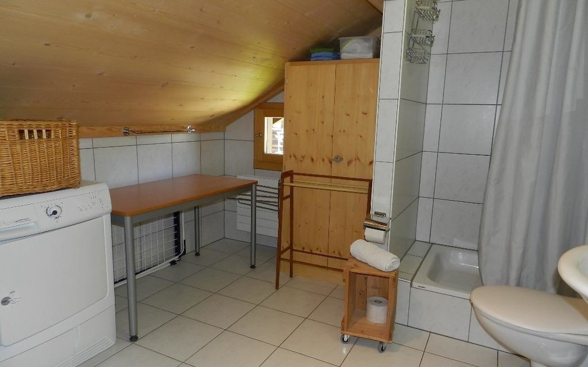 1 Schlafzimmer mit Doppelbett (2x90x200cm) und Kleiderschrank. Wohnzimmer mit ausziehbarem Sofa (152x200cm, 1 Matratze), offener Küche (u.a. ausgestattet mit Kaffeemaschine (Nespresso), Fondue- und Raclette-Set sowie Esstisch. Badezimmer mit Dusche/WC, Waschmaschine und Wäschetrockner. WiFi. Kinderbett (80x120cm) inkl. Bettwäsche und Kinderhochstuhl vorhanden.