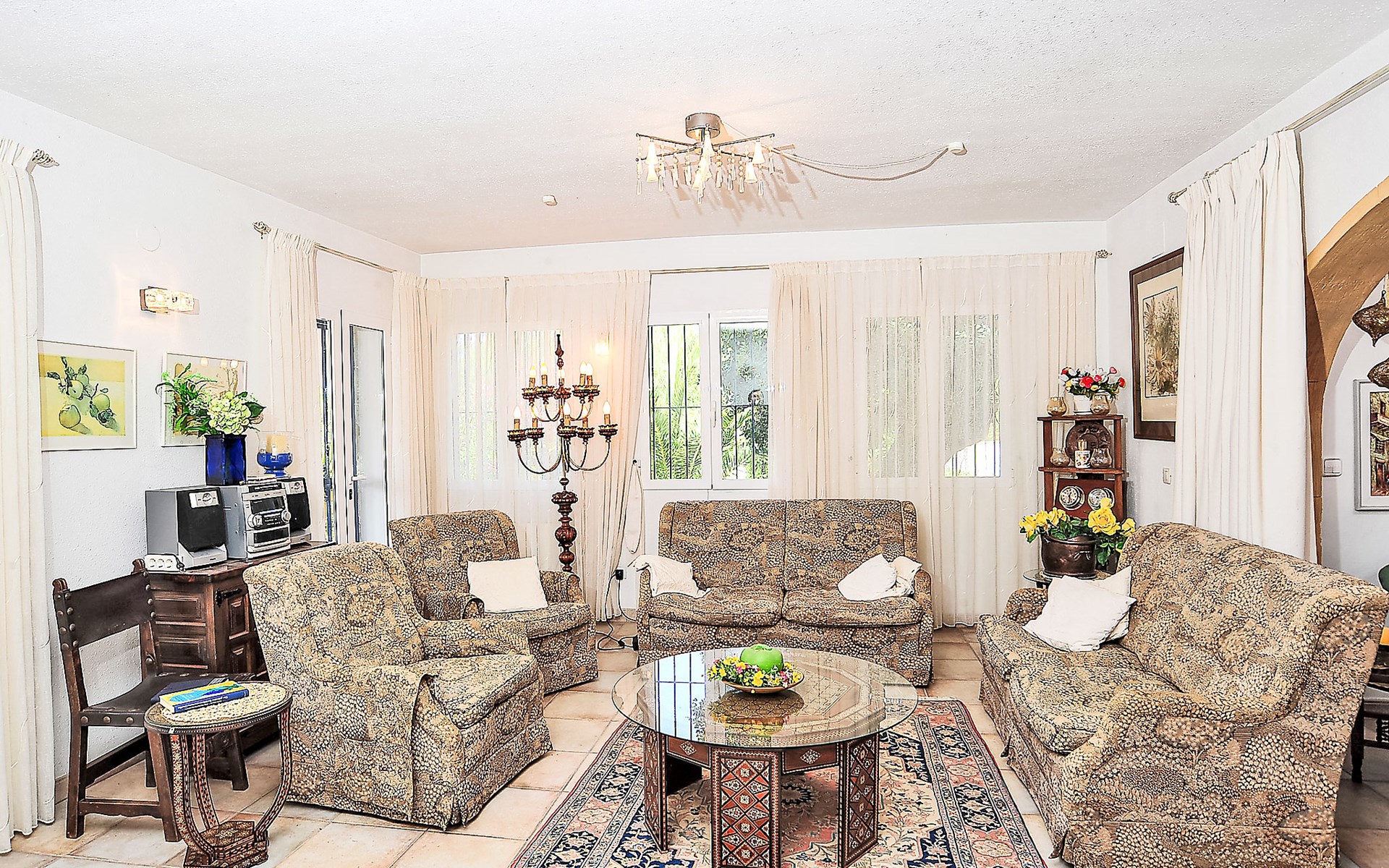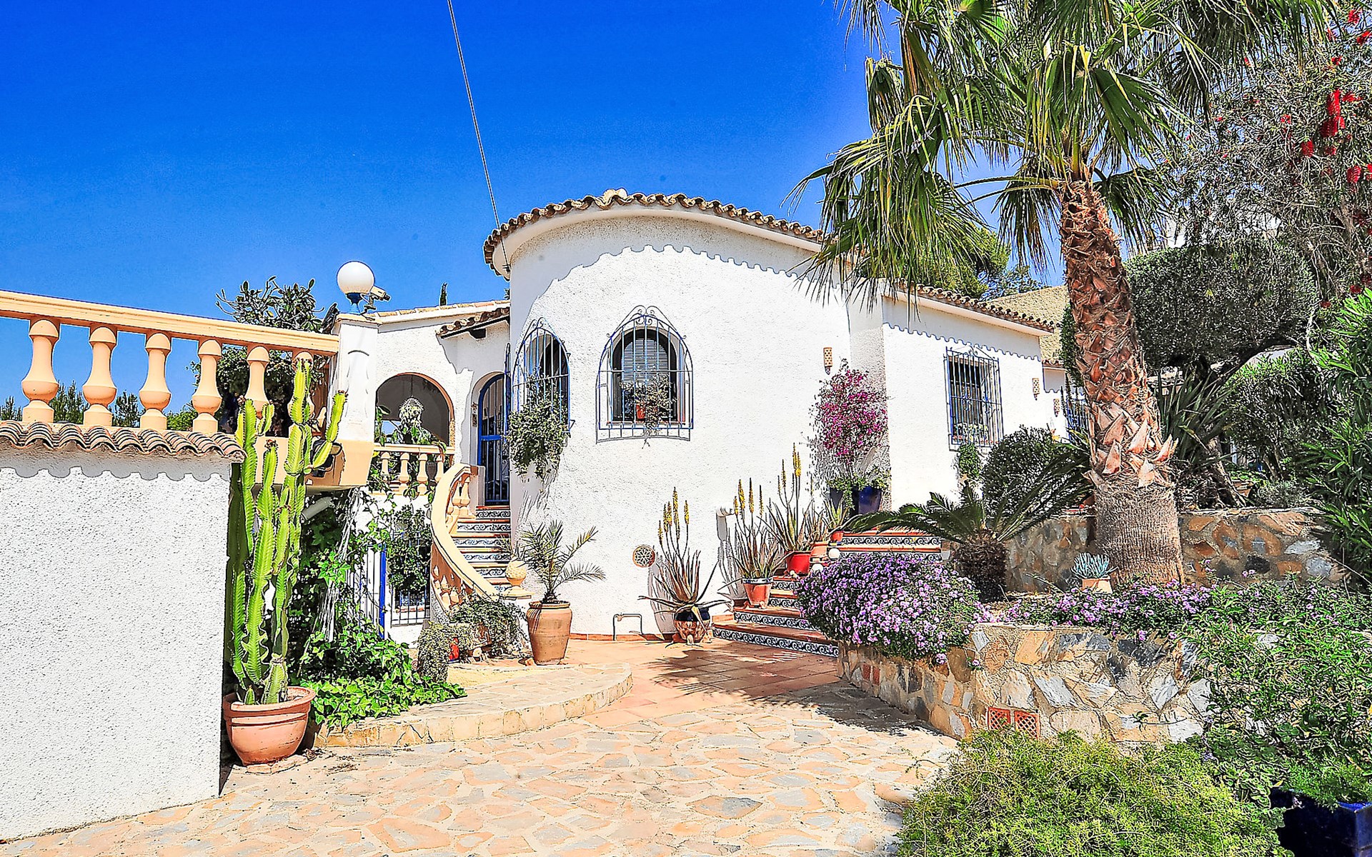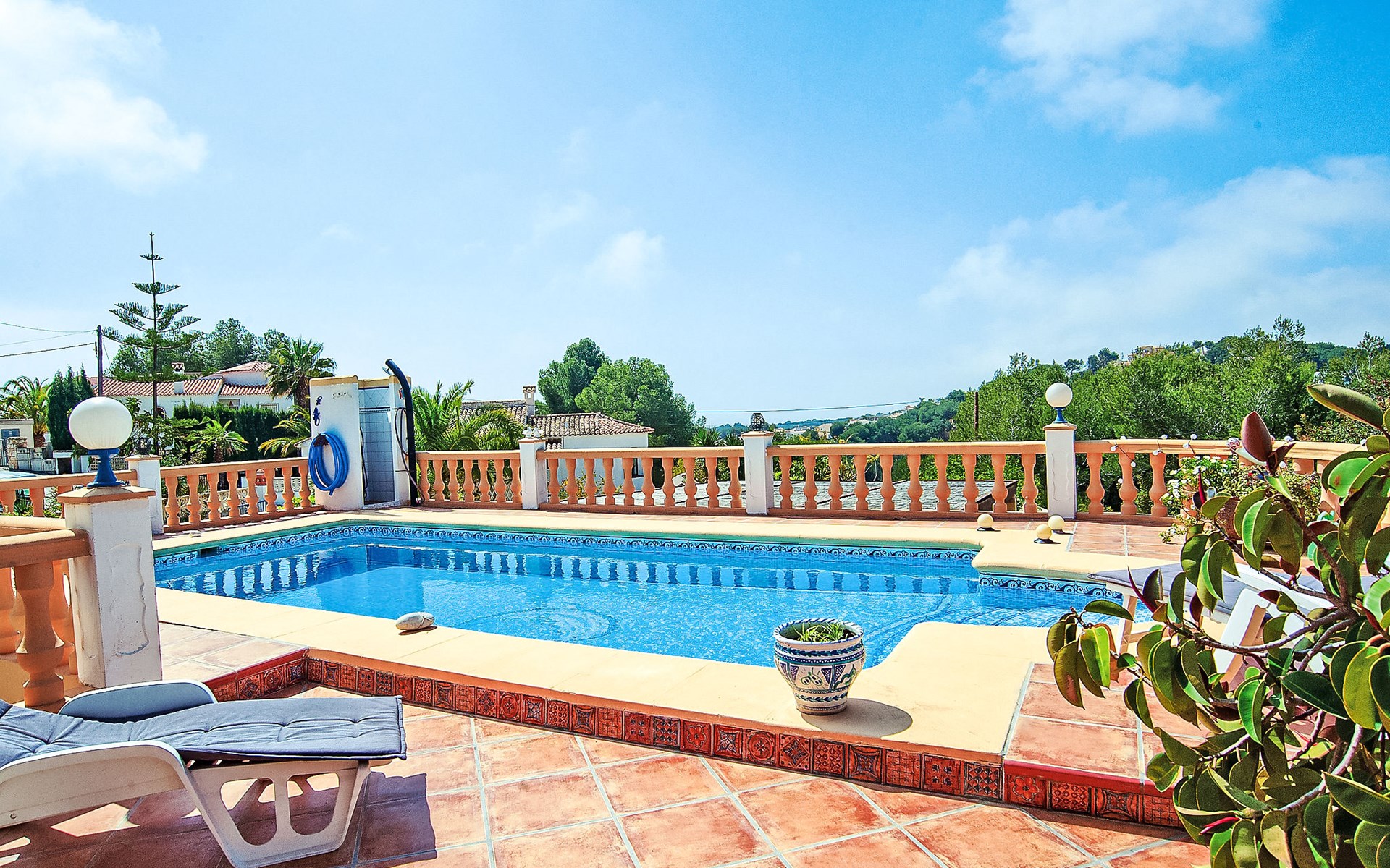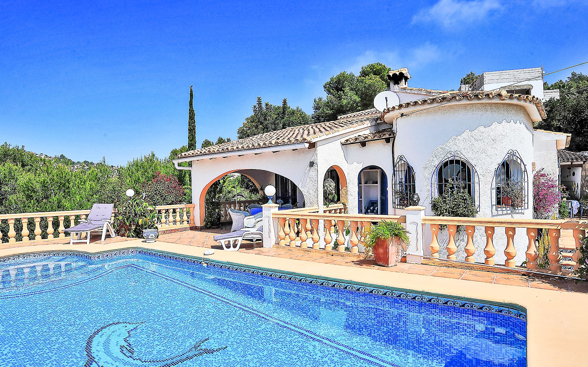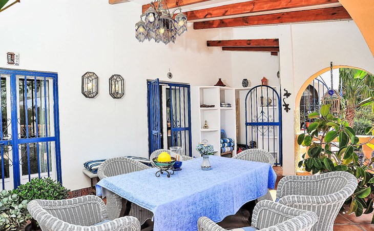Sehr schönes, komfortables Haus "Mirada al Sol", auf 2 Stockwerken. Ruhige, sonnige Lage, 1.3 km vom Meer, 1.3 km vom Strand. Zur Alleinbenutzung: grosser, schöner, gepflegter Garten 1'100 m2 (eingezäunt), Schwimmbad eckig (4 x 8 m, saisonale Verfügbarkeit: 01.Jan. - 31.Dez.) mit Innentreppe. Aussendusche. Im Hause: Zentralheizung. Parkplatz (für 2 Autos) auf dem Grundstück. Supermarkt, Restaurant, Bar 500 m, Bushaltestelle 2.5 km, Sandstrand 1.3 km. Tennis 1.7 km. Bitte beachten: geeignet für Familien, Babyausstattung (inkl.). Der Besitzer akzeptiert keine Jugendgruppen.