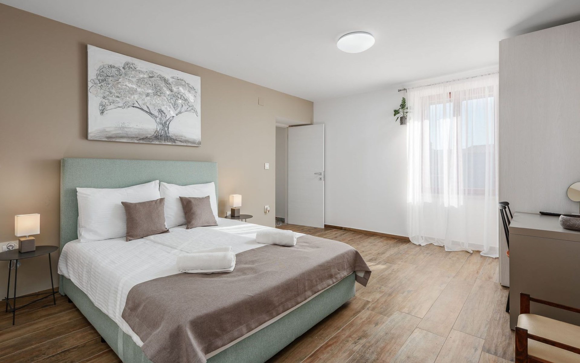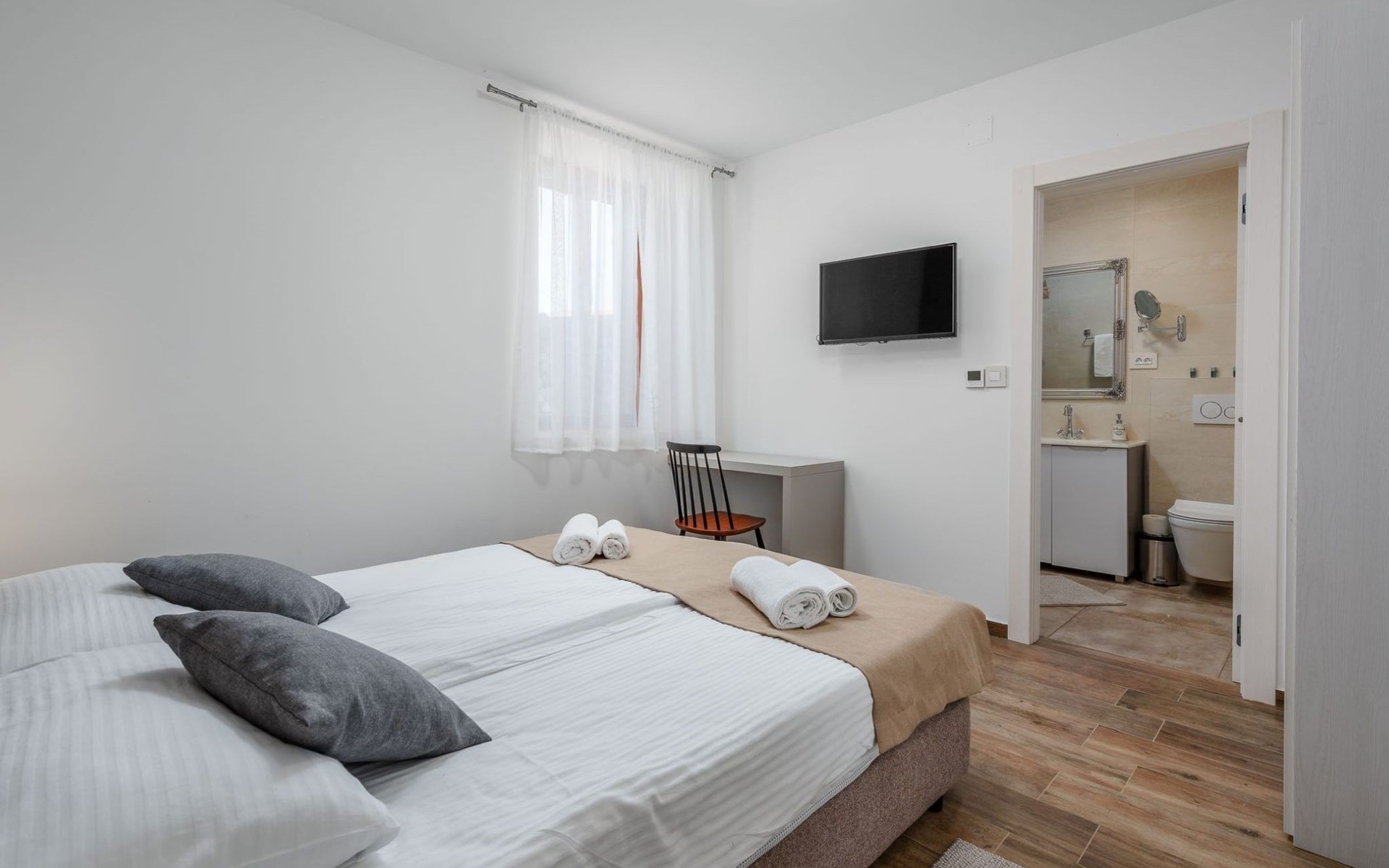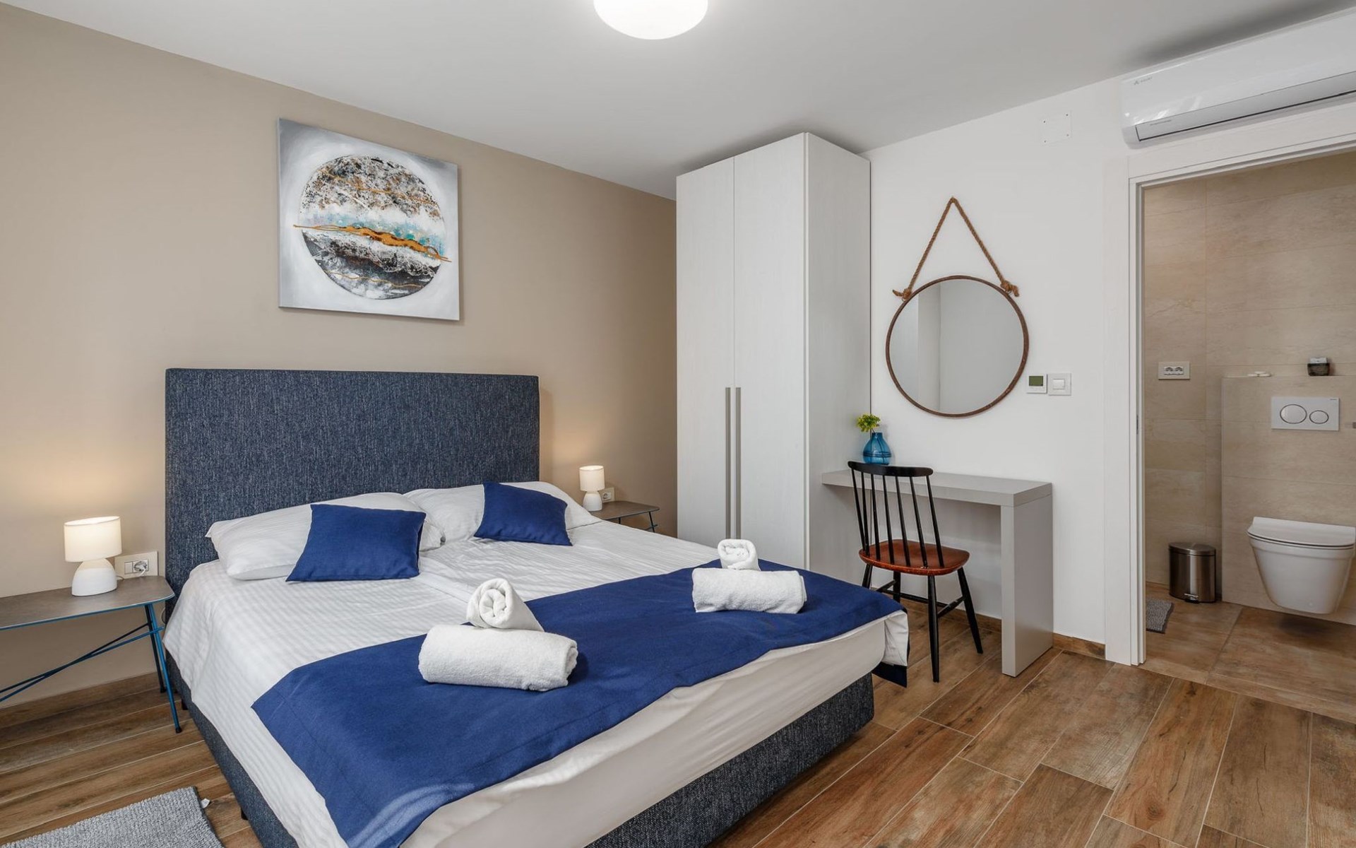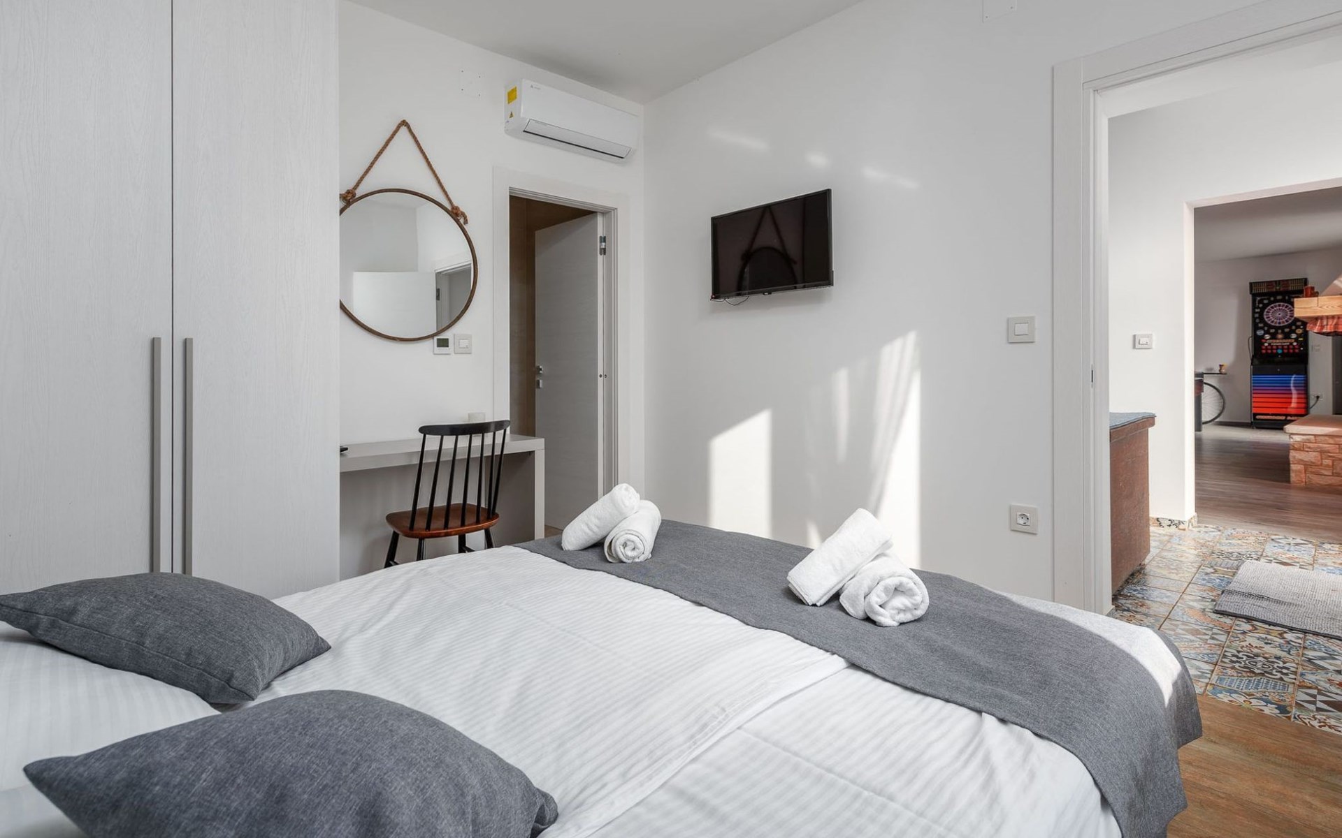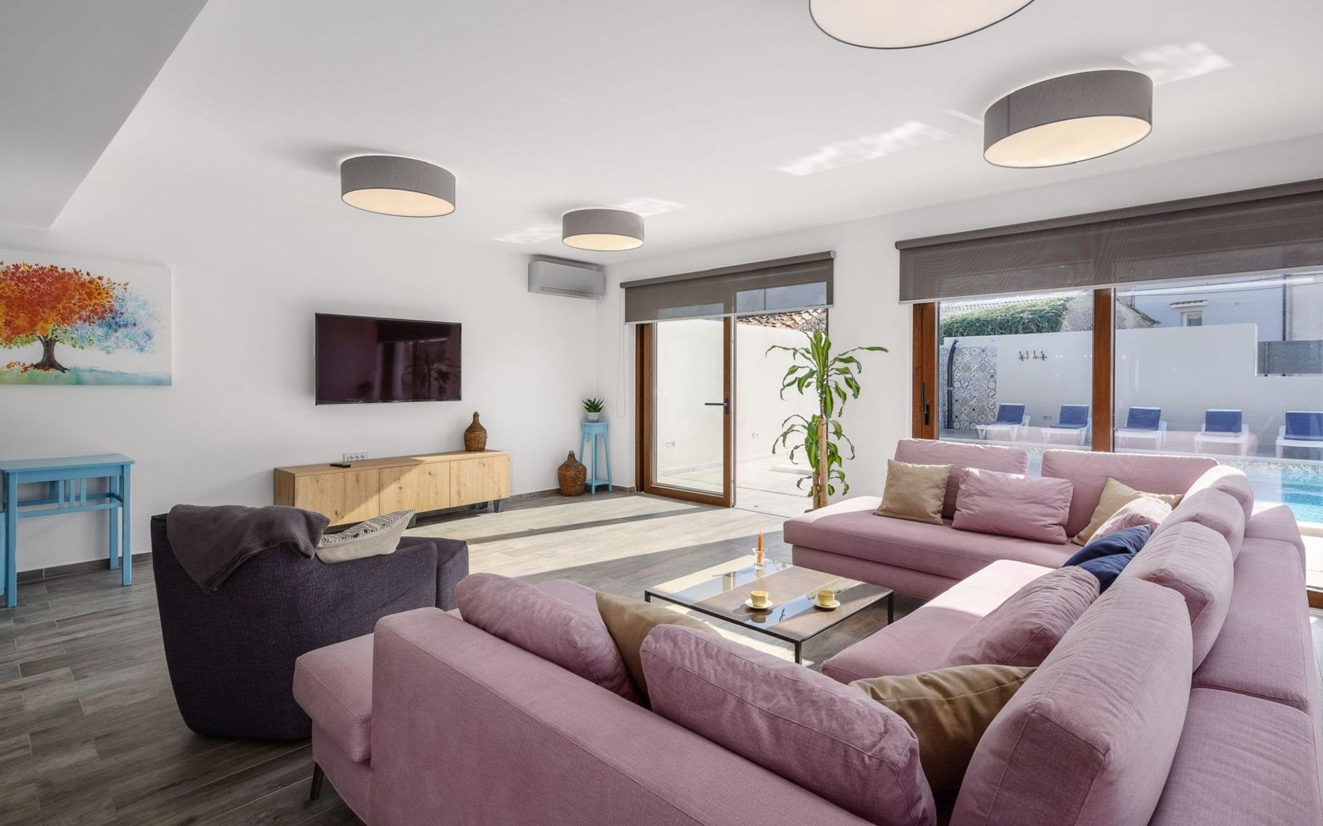 Im Inneren bietet die Villa Valtura sechs komfortable Schlafzimmer, jedes mit eigenem Bad, so dass jeder Gast seine Privatsphäre und seinen Komfort genießen kann. Jedes Schlafzimmer ist mit Klimaanlage, WiFi-Zugang und einem Smart-TV ausgestattet. Das Wohnzimmer verfügt über eine Klimaanlage und einen Fernseher und öffnet sich direkt auf die Poolterrasse, wodurch ein nahtloses Indoor-Outdoor-Wohngefühl entsteht. Eine voll ausgestattete Küche bietet alles, was für die Zubereitung und den Genuss gemeinsamer Mahlzeiten benötigt wird.