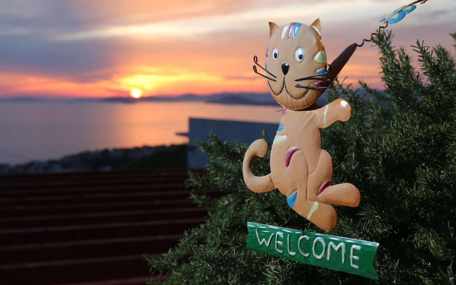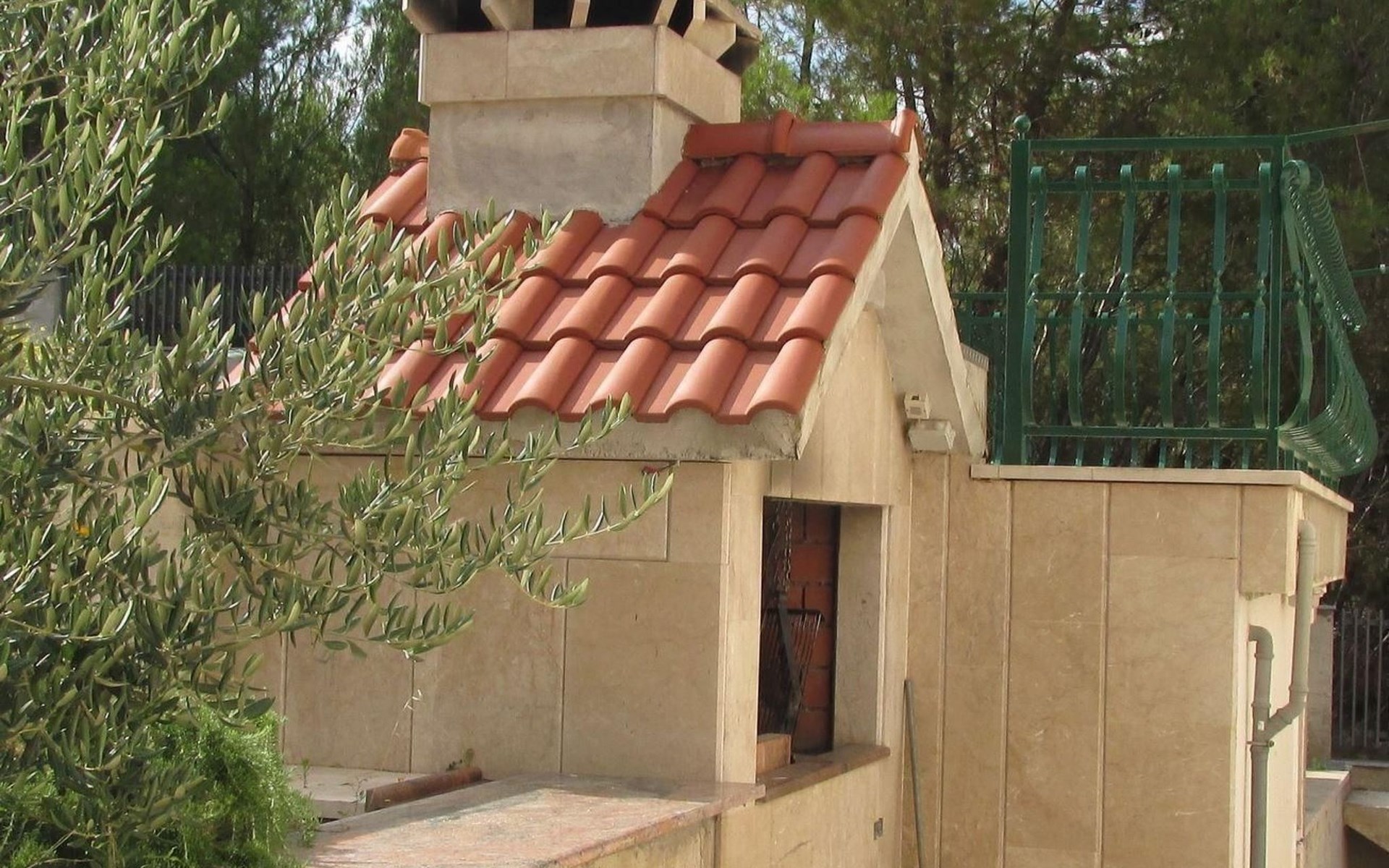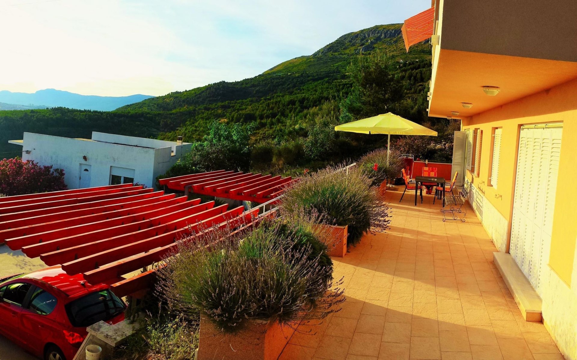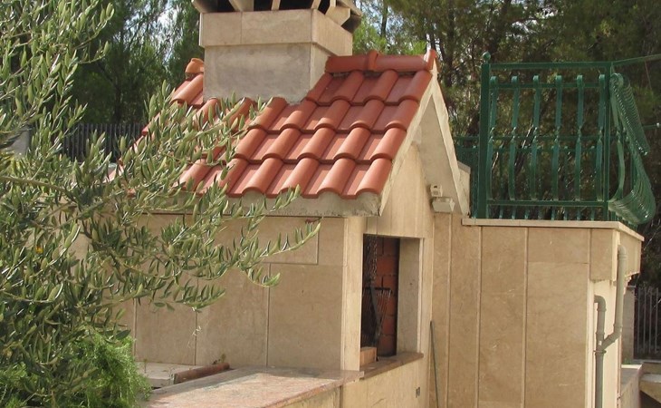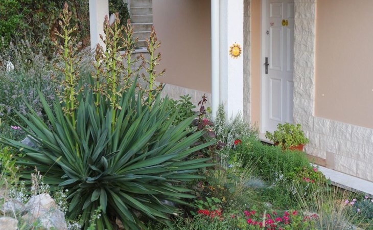 Von der Terrasse mit den Gartenmöbeln genießen Sie einen wunderbaren Ausblick über den Ort und das Meer. Hinter dem Haus steht ein Garten mit Pflanzen und Blumen sowie ein Grill für die Gäste im Haus bereit. Auch auch Parkplätze sind vorhanden.