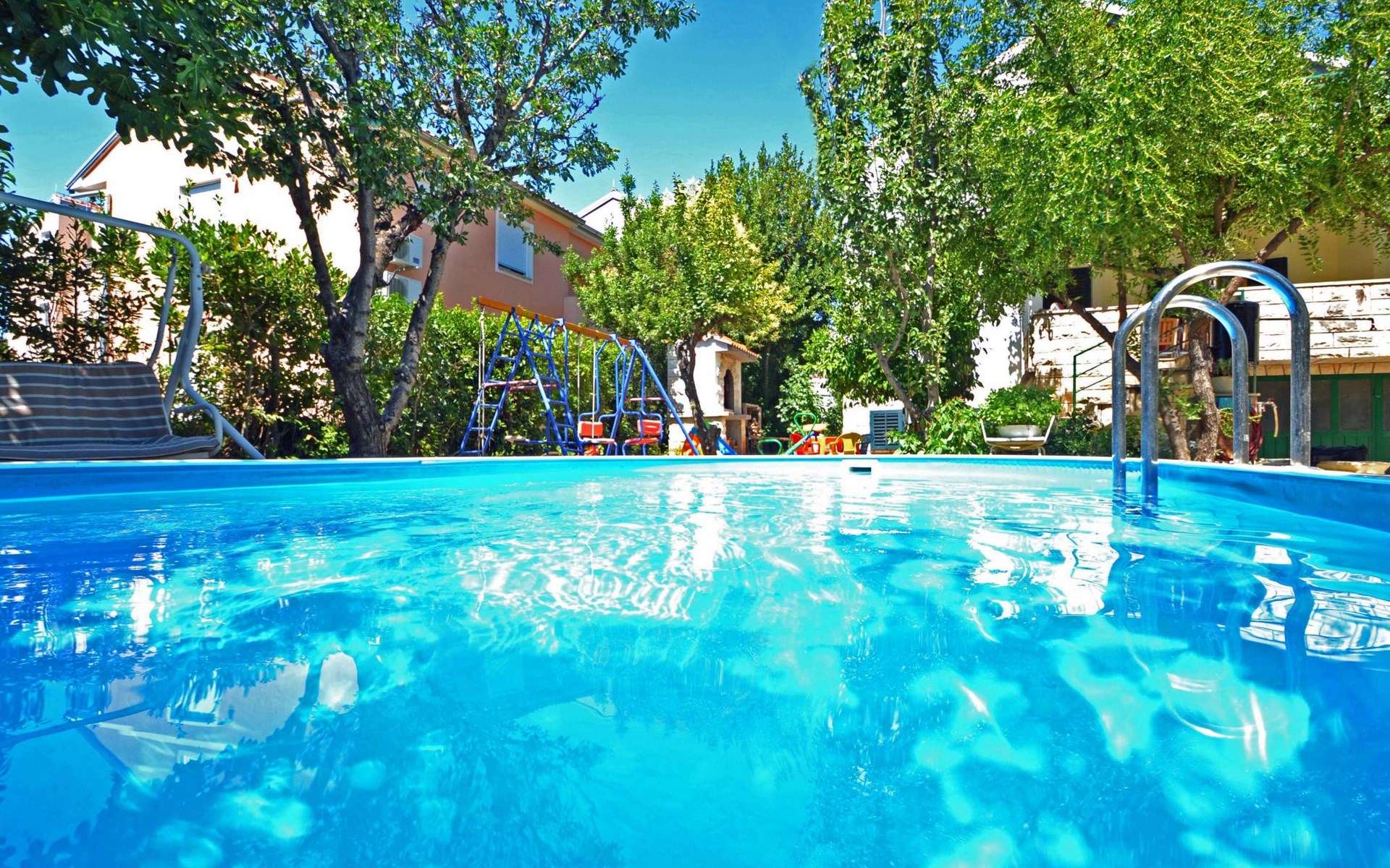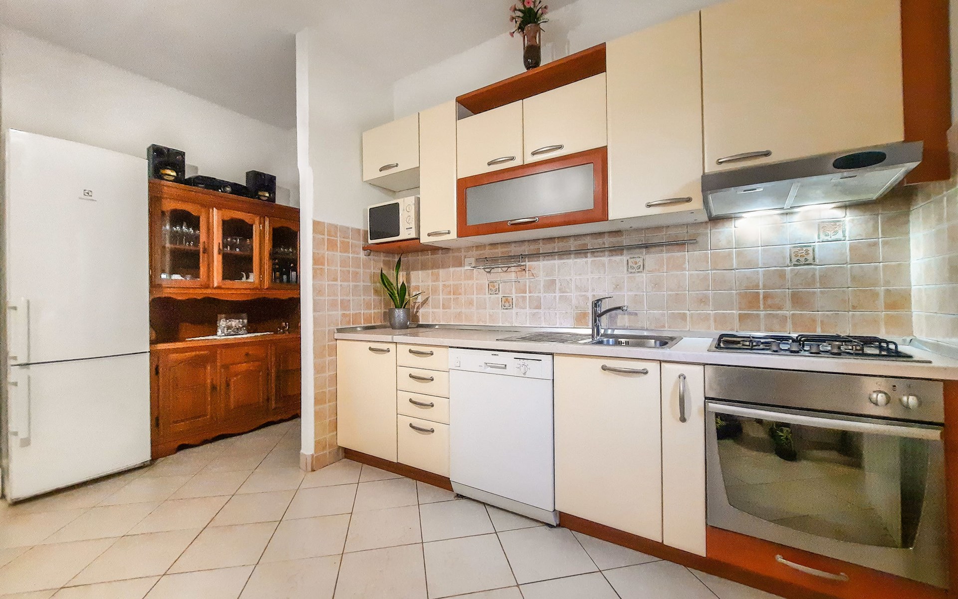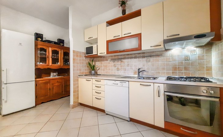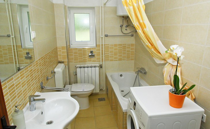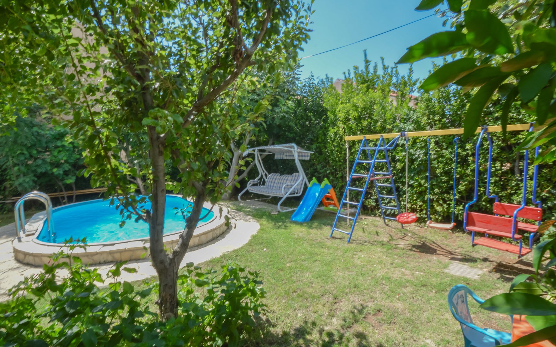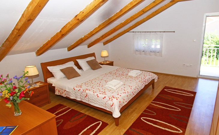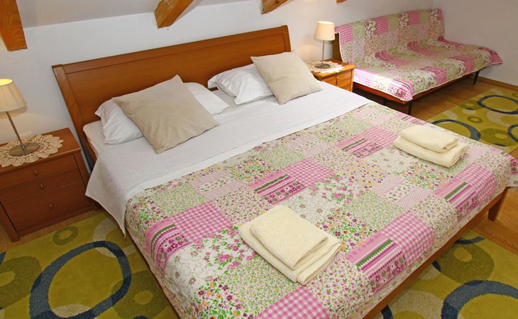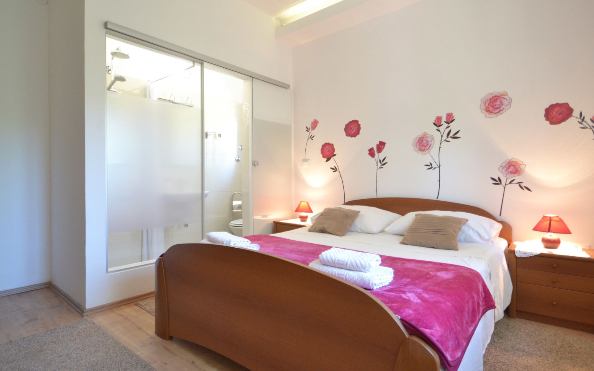 Gemütliches Einfamilienhaus "Mihovilka", auf 2 Stockwerken, renoviert im Jahre 2016. 500 m vom Zentrum, sonnige, erhöhte Lage, 250 m vom Meer, 250 m vom Strand, im Grünen. Zur Alleinbenutzung: Grundstück 1'100 m2 (eingezäunt), Garten mit Pflanzen und Bäumen, Wiese, Obstgarten, Schwimmbad (3 x 5 m, 120 cm tief, saisonale Verfügbarkeit: 01.Mai. - 15.Okt.). Aussendusche, Grillhaus, Kinderspielplatz (Rutschbahn, Schaukel, Sandkasten). Im Hause: Internetzugang, Sauna, Tischtennis, Billard. Zur Verfügung: Fahrräder (2). Parkplatz beim Haus auf dem Grundstück. Einkaufsgeschäft, Restaurant 150 m, Bushaltestelle 1.3 km, Sandstrand, Kieselstrand, Steinstrand 250 m, Tauchzentrum 5 km. Surfschule 1 km, Segelschule 1 km, Tennis 300 m, Reitstall 25 km. Nahe gelegene Sehenswürdigkeiten: amusement park 5.5 km. Ab Hof Verkauf von bäuerlichen Produkten. Ovalförmiges Schwimmbad. Ein Boot kann gemietet werden. Exkursionen mit dem Boot des Eigentümers sind möglich, extra bezahlbar. Der Eigentümer unternimmt einen kleinen Ausflug zur herzförmigen Insel "Galesnjak", auch bekannt als die Insel der Verliebten.