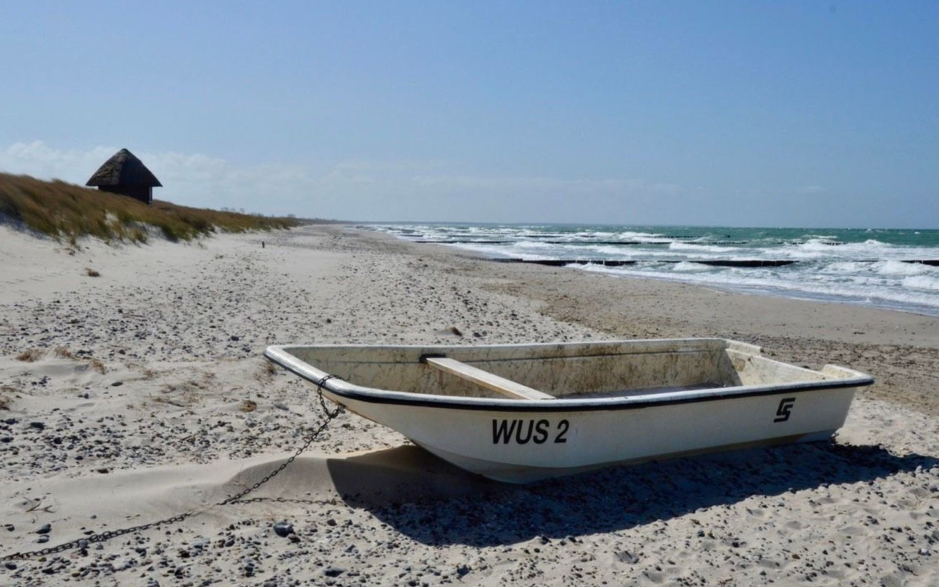 Zur Badestelle am Bodstedter Bodden sind es nur ca. 800m. Den feinsandigen Ostseestrand erreichen Sie über den Radweg, sowie mit Auto oder Bus in ca. 9km.