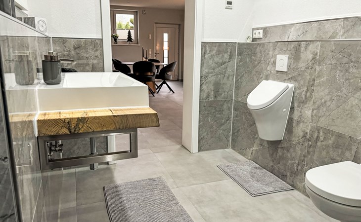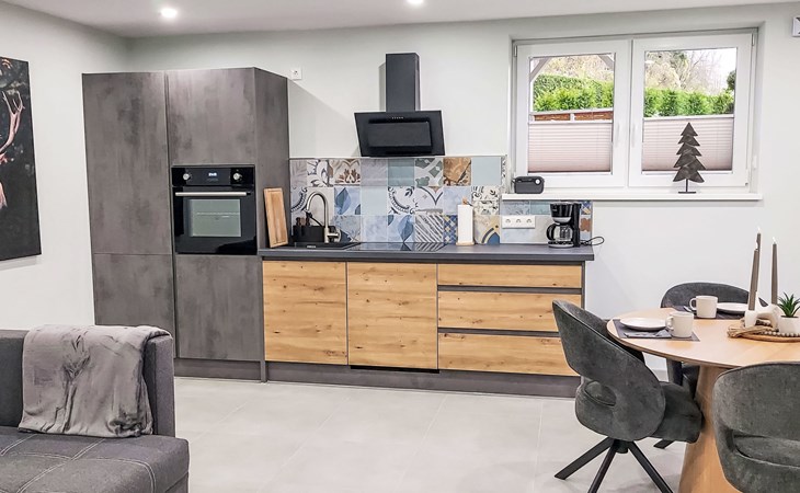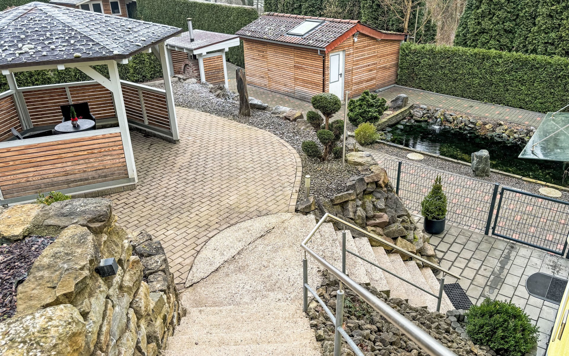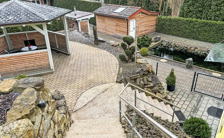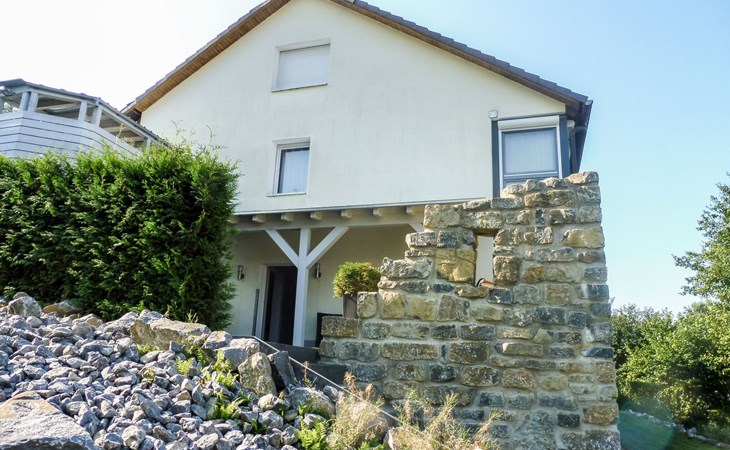Modernes Dreifamilienhaus, einseitig angebaut, umgeben von Bäumen und Wiesen. Oberhalb von Lügde (Altstadt), am Ortsrand, 800 m vom Zentrum, ruhige Lage am Hang, 100 m vom Waldrand, 8 km vom See, 1 km vom Fluss, in einer Sackgasse. Treppenweg (18 Stufen) bis zum Haus. Parkplatz auf dem Grundstück. Einkaufsgeschäft 1 km, Lebensmittelgeschäft 1 km, Supermarkt 1 km, Restaurant 800 m, Bäckerei 1 km, Café 800 m, Bushaltestelle 300 m, Bahnstation "Lügde" 300 m, Freibad 3 km, Hallenbad 5 km, Thermalbad 5 km, See Schiedersee 8 km. Golfplatz (18 Loch) 1.5 km, Wanderwege ab Haus 200 m. Nahe gelegene Sehenswürdigkeiten: Stadtmauer, Wehrtürme, Altstadt Lügde, Schloss Hämelschenburg 12 km, Externsteine Bad Meinberg 30 km, Hermannsdenkmal 40 km. Bitte beachten: Fahrzeug empfohlen.