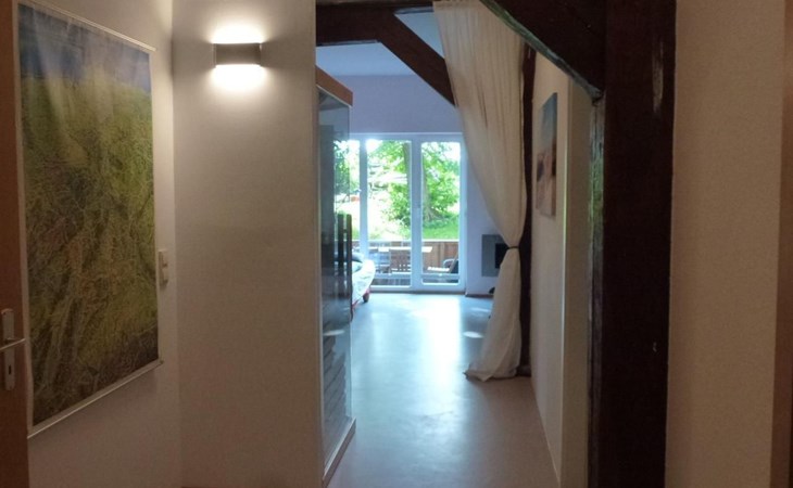 Lassen Sie es sich in unserer 85qm großen hellen, großzügigen und modernen Ferienwohnung gut gehen. Die Ausstattung ist vollwertig und hat alles zu bieten was man für einen erholsamen Urlaub braucht. Sie verfügt über eine eigene in sich geschlossene Terasse mit großer elektrischer Markise welche auch einen Nieselregen oder herbstlichen Nebel abhält. Von der Terrasse aus haben Sie einen direkten Zugang zum Garten sowie einen großen Grill dabei. Ist das Wetter nicht so freundlich, können Sie eine schöne Zeit in der großflächig verglasten Sauna mit Blick nach draußen verbringen. Der eigene Stellplatz (für einen Pkw) mit eigenem Eingang rundet das Bild ab. Unsere zutrauliche Neufundländerhündin bewegt sich frei auf dem großzügigen eingezäunten Grundstück. Dieses kann für die Freizeitgestaltung nach Absprache mitbenutzt werden. Die alten Linden laden an heißen Sommertagen zum Verweilen darunter ein. Im Sommer haben wir zwei Hausschweine die in der ländlichen Idylle nicht fehlen dürfen und neben der Ferienwohnung im Stall bzw. Auslauf wohnen. WLAN ist in der Wohnung ebenfalls verfügbar und wird über einen eigenen Zugang gewährleistet welcher mit maximal 16 Mbps überträgt ("16.000er Leitung"). Der moderne große 55" Bildschirm verfügt über Amazon- und Netflixzugänge. Sie benötigen nur Ihre Zugangsdaten um Ihre Filme zu sehen. Alternativ SAT Programme. Die Küche verfügt über eine große stand-alone Kühl-Gefrierkombination damit Sie ausreichend vorsorgen können. Wichtige Hinweise: Buchungen mit Anreise am gleichen Tag oder bis übermorgen können wir in der Regel nicht zusagen. Wir brauchen etwas Vorlauf. Bei einer Belegung mit 5 Personen kann max. 1 Hund mitkommen, bei einer Belegung mit 6 Personen entfällt die Option "Hund" komplett. Weiterhin haben Hunde keinen Bett und / oder Sofazugang. Der gehört ausschließlich den Zweibeinern. Aus hygienischen Gründen sind in der Küche keine Lebensmittel bzw. Zutaten vorhanden. Kurzbeschreibung Sonstiges : Nichtraucherhaus Kurzbeschreibung 1Anzahl Küchen : 1Sonstige Räume : Abstellraum für Fahrräder Wohnzimmer 1Sonstige Wohnzimmerausstattung : Das Schlafsofa ist nicht die Couchecke, sondern zusätzlich zum Sitzen oder als Platz 5+6. Bei dem Ofen handelt es sich um einen Bioethanolkamin. Weiterhin befinden sich hier im Wohnzimmer der Schreibtisch, der 55" Flachbildschirm sowie die Soundbox über bluetooth koppelbar mit Ihrem Handy. Schlafzimmer 1Sonstige Schlafzimmereinrichtung : geräumiger Kleiderschrank, Zustellbett für Kleinkinder möglich. Das Zimmer verfügt über ein Kipp-Dreh-Fenster welches in den luftigen Wirtschaftsgang öffnet. Der Blick ins Freie geht mittelbar durch das gegenüberliegende originale historische Fenster. Schlafzimmer 2 Sonstige Schlafzimmereinrichtung : Kleiderschrank, separate große Kommode. Das Zimmer verfügt über ein Oberlicht welches zum Lüften geöffnet werden kann. Ein direkter Blick in den Himmel ist baubedingt hier nicht möglich. Badezimmer 1Sonstige Badezimmereinrichtung : Hier befindet sich auch die Waschmaschine sowie der Wäschetrockner, die Dusche ist fast ebenerdig (3cm) und begehbar Küche 1Sonstige Kücheneinrichtung : die Wohnküche ist sehr gemütlich mit einem direktem Terrassenzugang und sie ist komplett ausgestattet. Umgebung Leihmöglichkeiten : Bootsverleih, Fahrradverleih Sportmöglichkeiten in der Umgebung : Angeln, Bolzplatz, Golfplatz, Jagdmöglichkeit, Kanu, Mountainbiking, Radtouren, Reithalle, Reitplatz/Reitmöglichkeiten, Rudern, Segeln, Tauchen, Tennis Umgebung 1Ausflugsmöglichkeiten: da sind wir gern behilflich: Je nachdem was im Vordergrund steht: Rostock, Schwerin, naturnahe Ausflüge, Tierpark MV - einfach fragen, wir geben Tipps Ortsbeschreibung : Es handelt sich um einen kleinen ruhigen Ort welcher zentral liegt und damit einen guten Ausgangspunkt für vielseitige Aktivitäten darstellt. Einkaufsmöglichkeiten gibt es in Güstrow oder Krakow. Der historische Schafstall mit der darin gelegenen Ferienwohnung gehört zu der Gutsanlage Hoppenrade welche insgesamt als Ensemble unter Denkmalschutz steht Garten und Außenanlagen Freizeiteinrichtungen am Objekt : Sauna Gartenausstattung : Gartenmöbel vorhanden, Grill, Spielgeräte Serviceleistungen (ggfs. kostenpflichtig) : Einkaufsservice vor der Anreise, Kinderbetreuung, Babysitter mögl. 1Sonstiges : Wir haben unsere Terrasse mit einer elektrisch betriebenen Markise mit Windsensor ausgestattet. Diese überspannt nahezu den kompletten Sitzbereich und lässt auch bei leichtem Regen die Außennutzung zu. Die helle gemütliche Sauna für zwei Personen mit Blick ins Freie lässt Sie das feuchte Herbstwetter entspannt genießen. Wer sich vorab Fahrräder ausleihen möchte, damit diese gleich bei der Anreise bereit stehen, kann uns gern dazu ansprechen. Wir kümmern uns darum. Zuletzt noch: Wenn Sie mit Ihrem Hund anreisen, können wir gern einen Futter- und Wassernapf bereitstellen damit Sie dies nicht mitzubringen brauchen. Objekt in Wohnsiedlung; Außen: Eingefriedet; Garten vorhanden; Holzgrill; PKW-Stellplätze insgesamt: 1; Privatparkplatz; Veranda; Allgemein: Badezimmer: 2; Baujahr: 1896; Etage: 0; Fahrrad Verleih: 0,00 km; Gesamtzahl Etagen: 1; Grundstücksfläche: 4200 qm; Historisches Gebäude; Renovierungsjahr: 2018; Schlafzimmer; Wohnen: Bügeleisen; CD-Player; Doppelsofa; DVD-Player; Französisches Bett; Kamin; King-size Bett; Radio; Safe; Satelliten-TV; TV;Bad/WC: Dusche; Föhne; Sauna in der Nähe; Toilette; Kochen: Backofen; Ceranherd; Elektroherd; Gefrierfach; Herd; Kaffeemaschine; Kühlschrank; Mikrowelle; Spülmaschine; Tiefkühlschrank; Toaster; Wasserkocher; Sonstiges: Anbieter wohnt auf dem Grundstück; Aussicht; Bodenheizung; Haustier erlaubt: max. 2; Heizung; keine Gruppenbuchung; Keine Jugendgruppen; Kinderstuhl; Nichtraucherobjekt; Staubsauger; Trockner; Ventilator; Waschmaschine; W-Lan Komplettpaket;Entfernungen (Luftlinie, ca.): Entfernung Bar / Club: 12,00 km; Entfernun