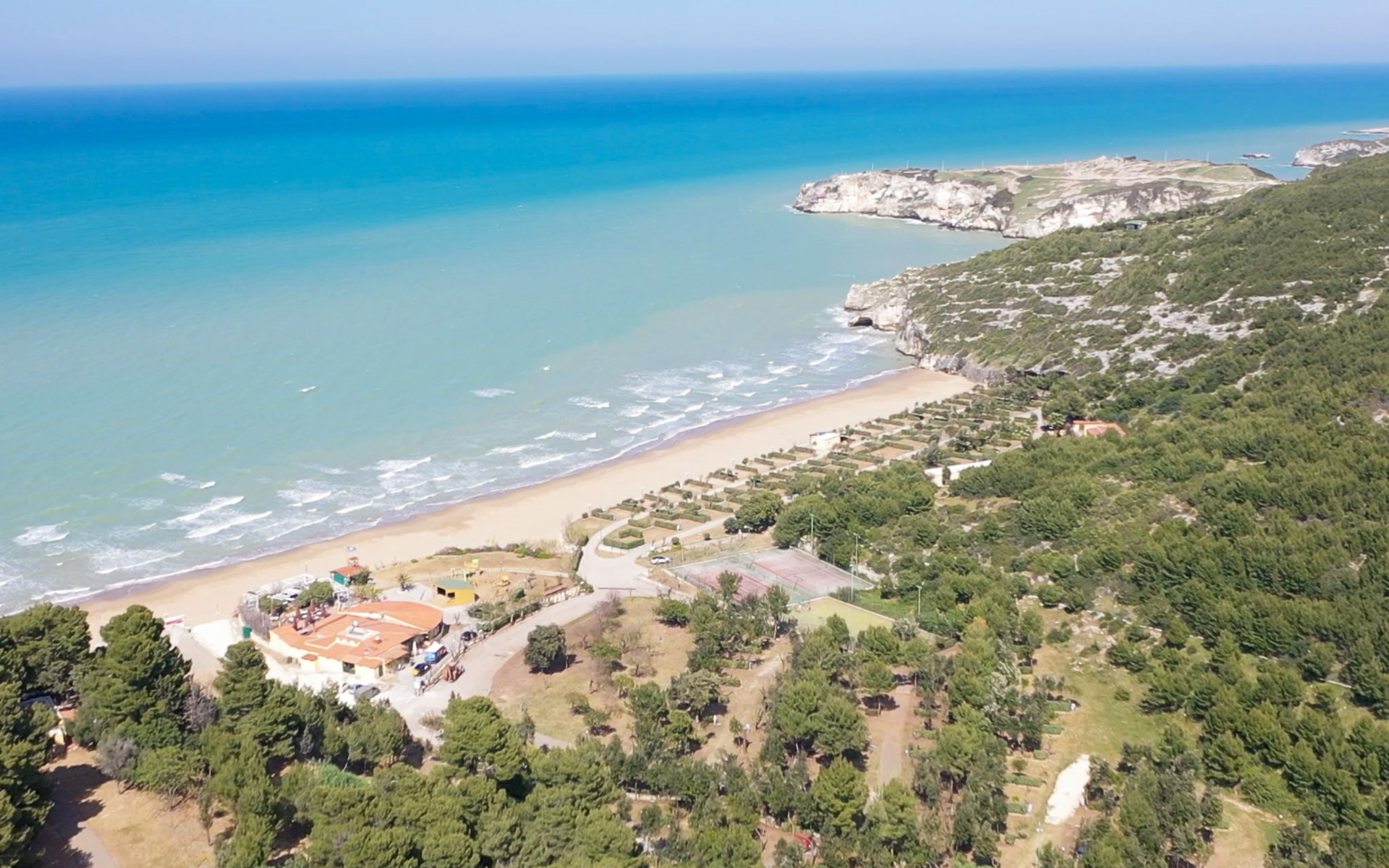 Kinderfreundliches Feriendorf "Centro Turistico San Nicola", umgeben von Bäumen. 45 Häuser im Ferienresort. Im Ortsteil San Nicola, 3.2 km vom Zentrum von Peschici, 22 km vom Zentrum von Vieste, 20 km vom Zentrum von Rodi Garganico, erhöhte Lage, 100 m vom Meer, 100 m vom Strand, direkter Zugang zum Strand. Zur Mitbenutzung: Grundstück 13 ha (eingezäunt) mit Pflanzen und Bäumen. Tennis, Beachvolleyball, Kinderspielplatz. In der Anlage: Restaurant, Einkaufsmöglichkeit, Fahrradverleih. Frühstück Vollpension Halbpension möglich auf Anfrage (extra). Lebensmittelgeschäft 100 m, Supermarkt 2.2 km, Bar 100 m, Bushaltestelle 2 km, Sandstrand 60 m. Nahe gelegene Sehenswürdigkeiten: Parco Nazionale del Gargano, Riserva Naturale della Foresta Umbra 23 km, Termoli 111 km. Bitte beachten: Animation in der Saison. Geeignet für Familien.