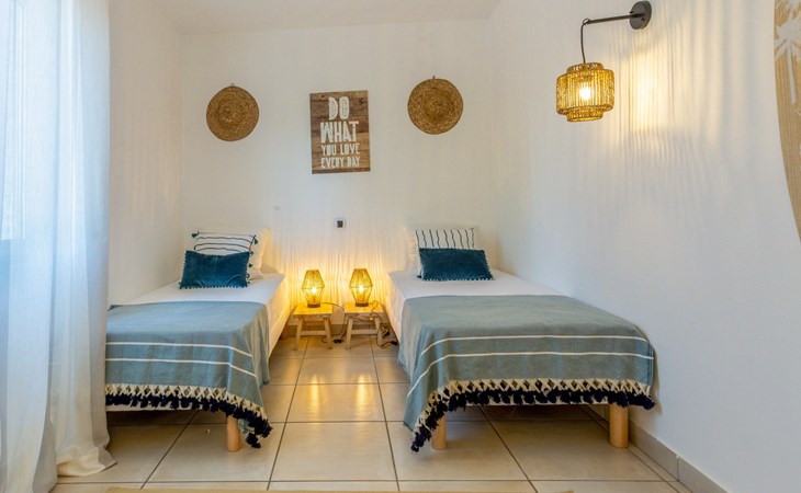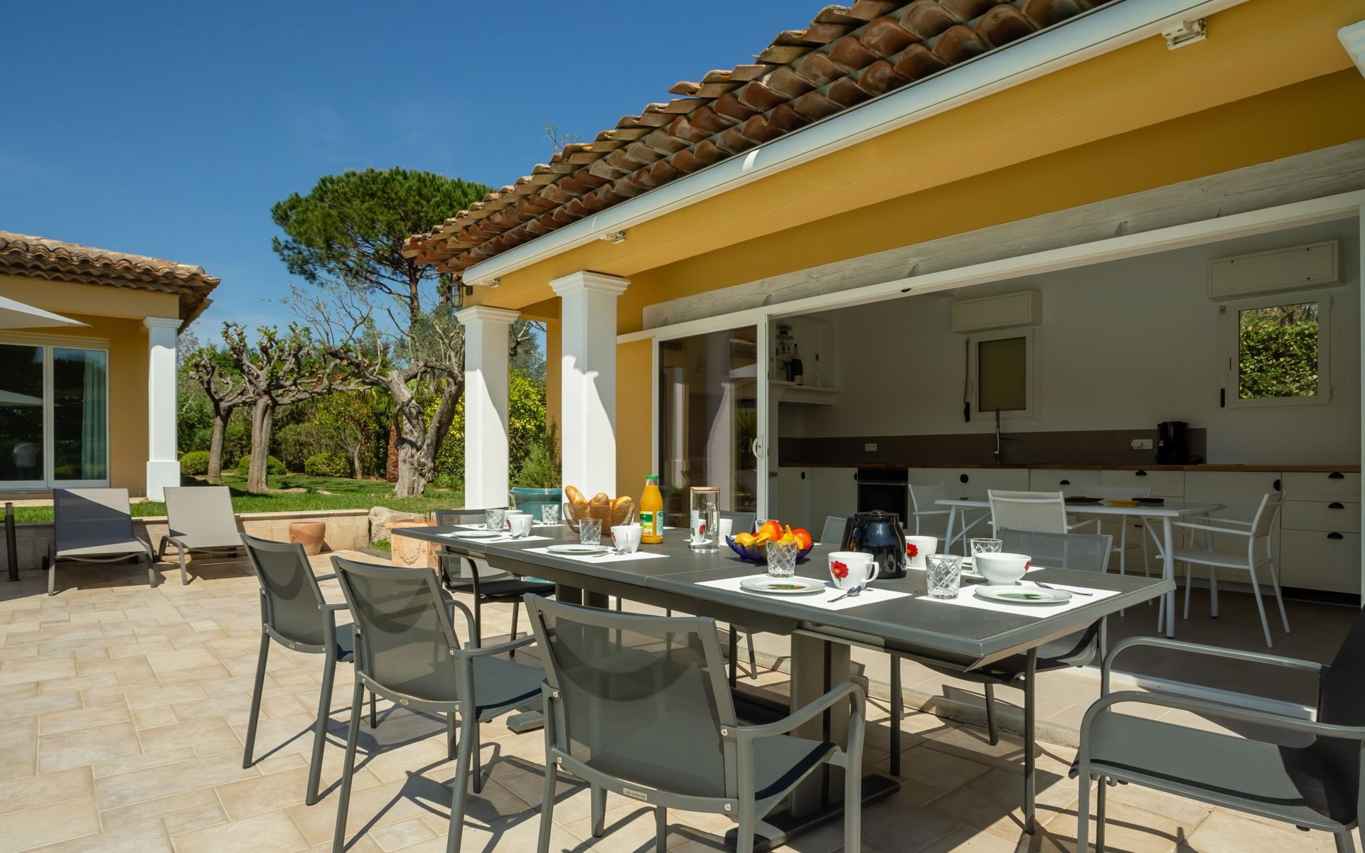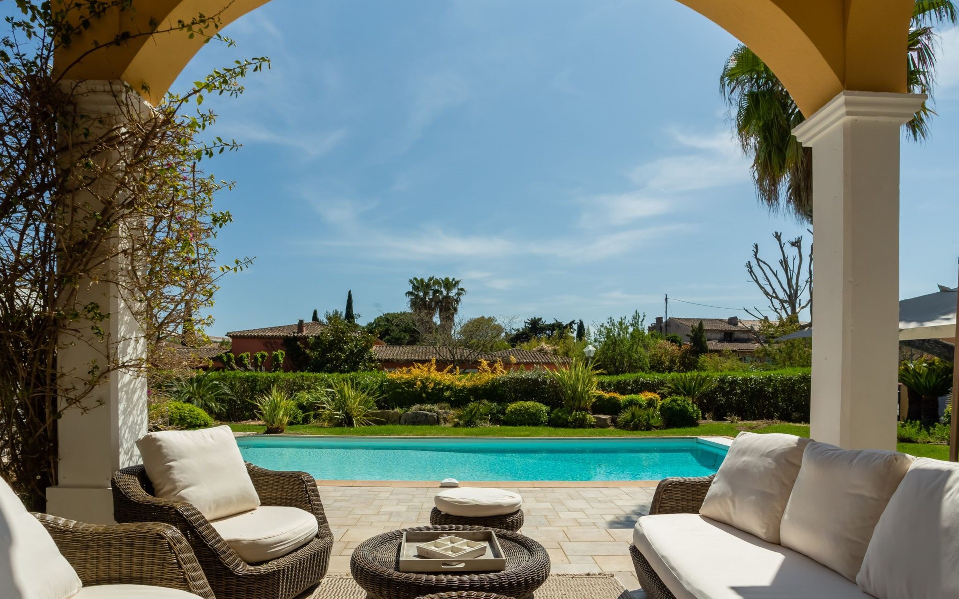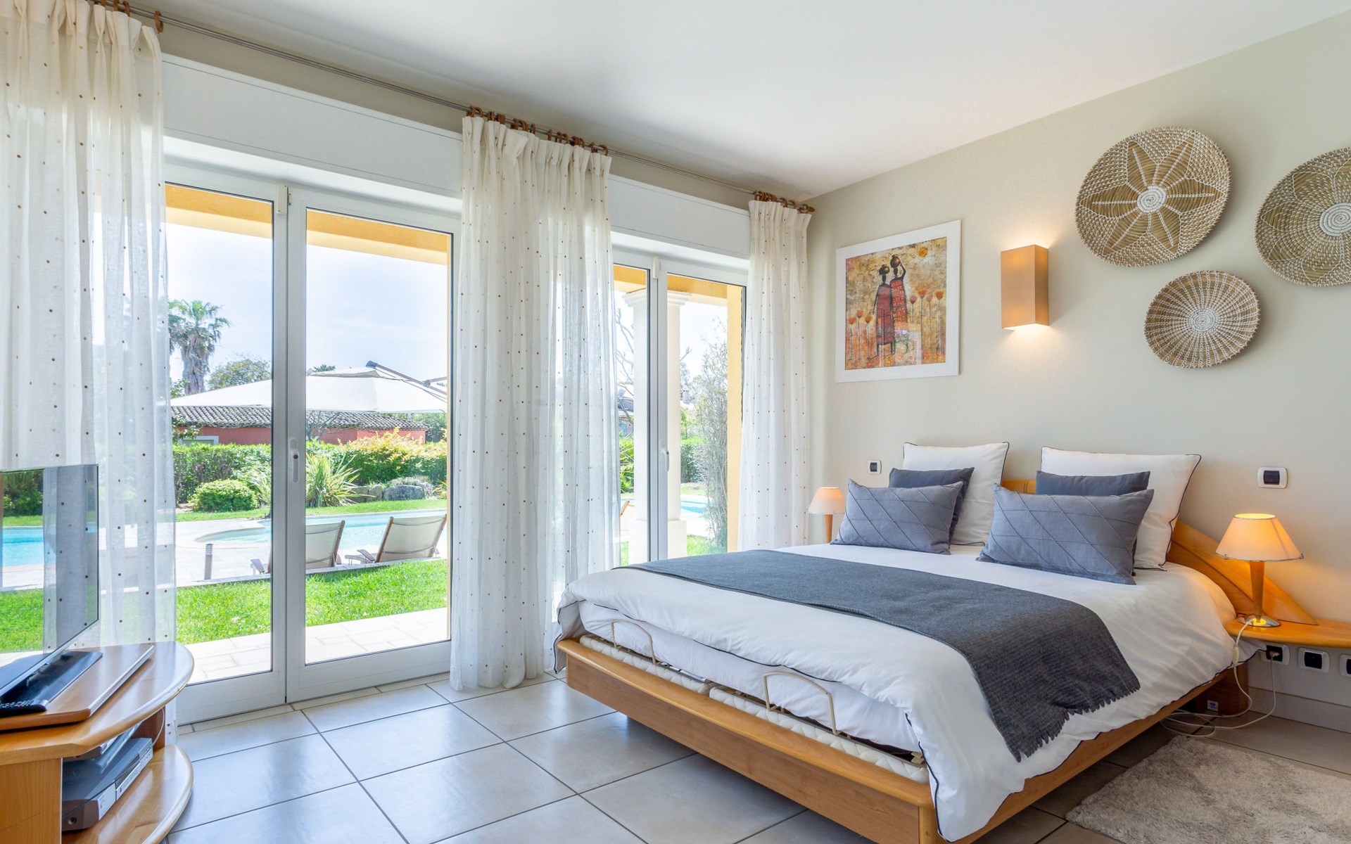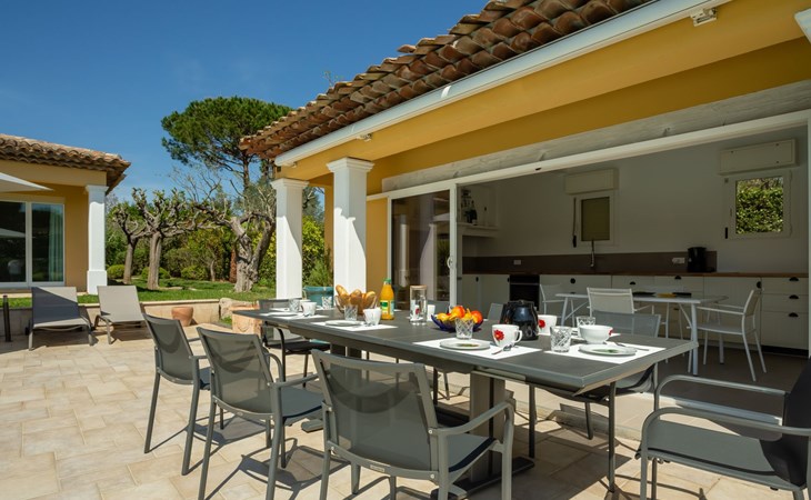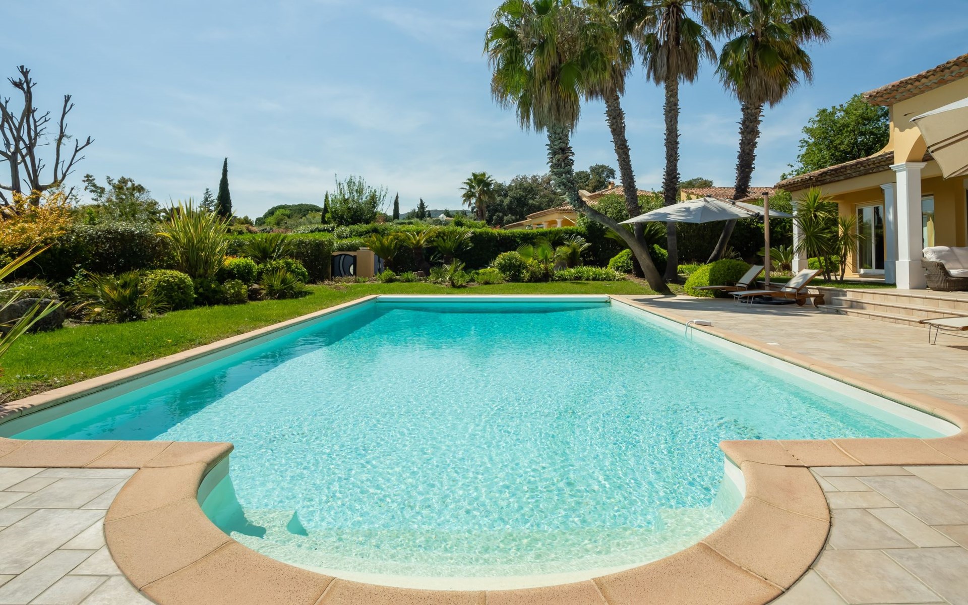 Schöne Villa "Alwena". Ausserhalb des Ortes, 5 km vom Zentrum von Grimaud, in einem Wohnquartier, 1.4 km vom Meer, 1.4 km vom Strand. Zur Alleinbenutzung: gepflegter Garten 2'000 m2 (eingezäunt) Rasen, Schwimmbad (12 x 6 m, 100 - 200 cm tief, saisonale Verfügbarkeit: 01.Apr. - 01.Okt.) mit Alarmanlage. Poolhaus mit Kühlschrank und Kochherd, Boccia. Einkaufsgeschäft 4 km, Lebensmittelgeschäft 300 m, Supermarkt 4 km, Restaurant 800 m, Bushaltestelle "Prairies de la mer" 1 km, Sandstrand "Les Prairies de la mer" 1.4 km. Sporthafen 3 km, Golfplatz (18 Loch) 4 km, Segelschule 5 km, Tennis 4 km, Radweg 800 m. Nahe gelegene Sehenswürdigkeiten: Saint Tropez 11 km, Sainte Maxime 11 km, Plages de Pampelonne 17 km, Cannes 85 km, Nice 110 km, Monaco 130 km. Bekannte Seen in der Umgebung sind gut erreichbar: Le Lac de Sainte Croix 98 km. Wandergebiete: Le Massif de l'Esterel 50 km. Bitte beachten: Fahrzeug empfohlen. Die Schlüsselübergabe findet bei der Agentur Interhome in Gassin statt, 4 km.