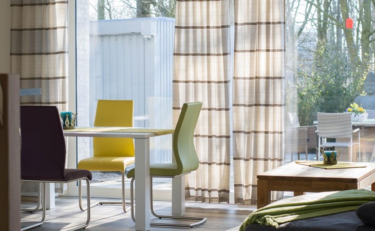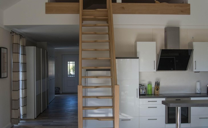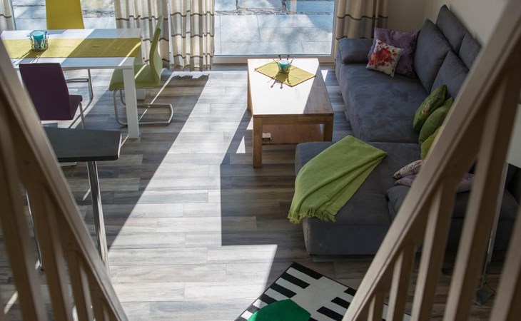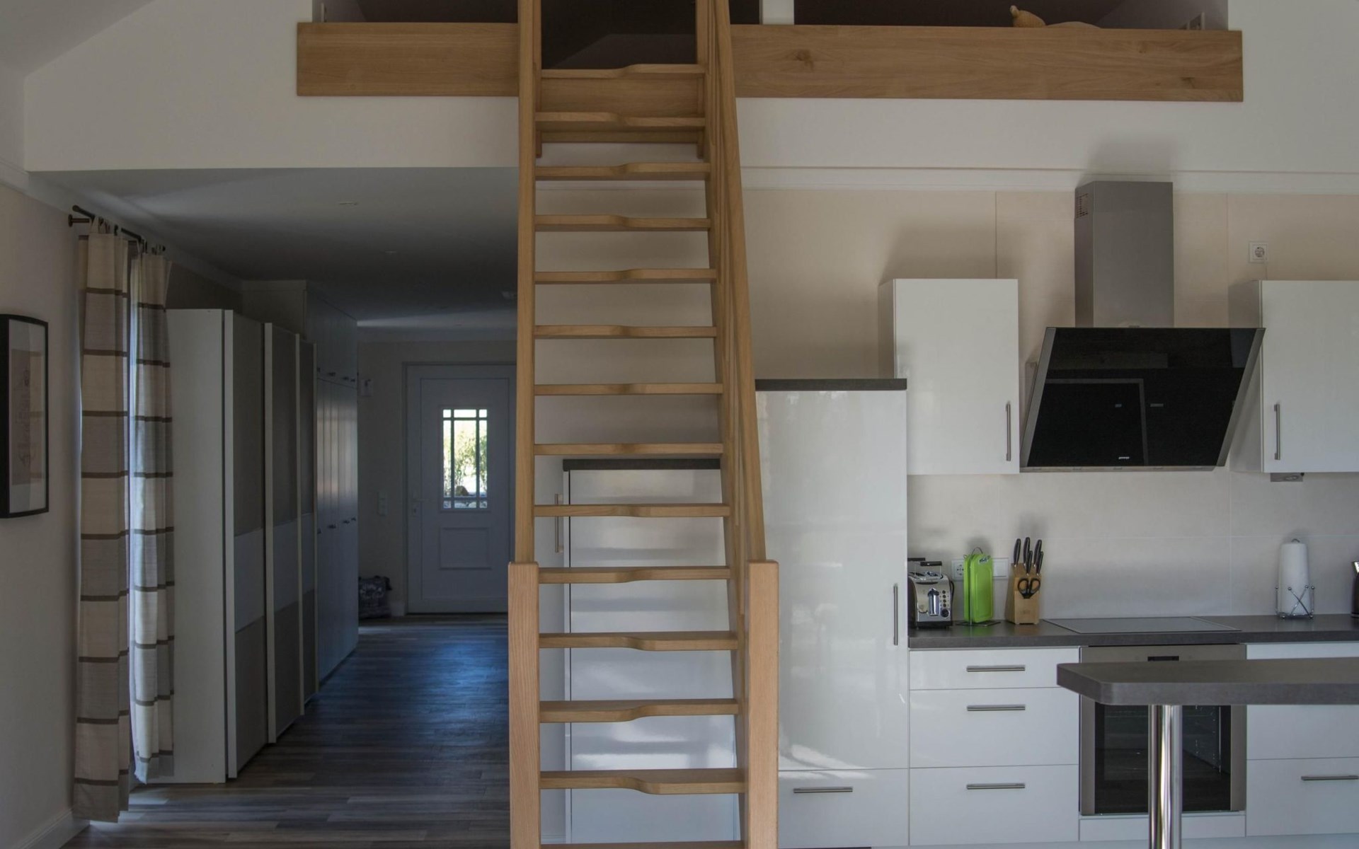 Das modern eingerichtete Haus ist 95 m² groß und bietet Platz für maximal vier Personen. Die zwei separaten Schlafzimmer befinden sich im Erdgeschoss und sind ruhig gelegen. Die 180 x 200 cm großen Doppelbetten lassen sich auch einzeln auseinander stellen. Das ebenfalls im Erdgeschoss gelegene Wohnzimmer bietet Ihnen eine offene Wohnküche mit einem gemütlichen Sitz- und Essbereich sowie einer modernen Küche, die komplett mit Herd, Backofen, Kaffeemaschine, Kühlschrank, Mikrowelle, Wasserkocher und Spülmaschine ausgestattet ist. Weiterhin haben Sie hier einen Flur mit Wandschränken, ein topmodernes Duschbad sowie ein Gäste-WC. Über eine Treppe im Wohnbereich gelangt man zu einem zusätzlichen Schlafplatz auf der Galerie mit zwei Matratzen. Wegen der geringen Deckenhöhe ist diese Galerie allerdings nur für Kinder geeignet. Drei Flachbildfernseher (Sat.-TV) und ein gebührenfreier WLAN-Internetanschluss stehen zu Ihrer Unterhaltung zur Verfügung. Alle Räume können beheizt werden und sind individuell regulierbar. Im Haus ist auch eine Waschmaschine vorhanden.
