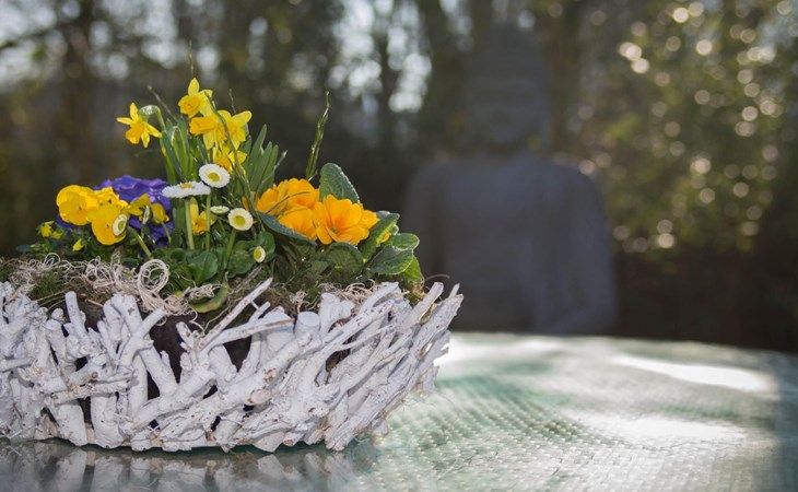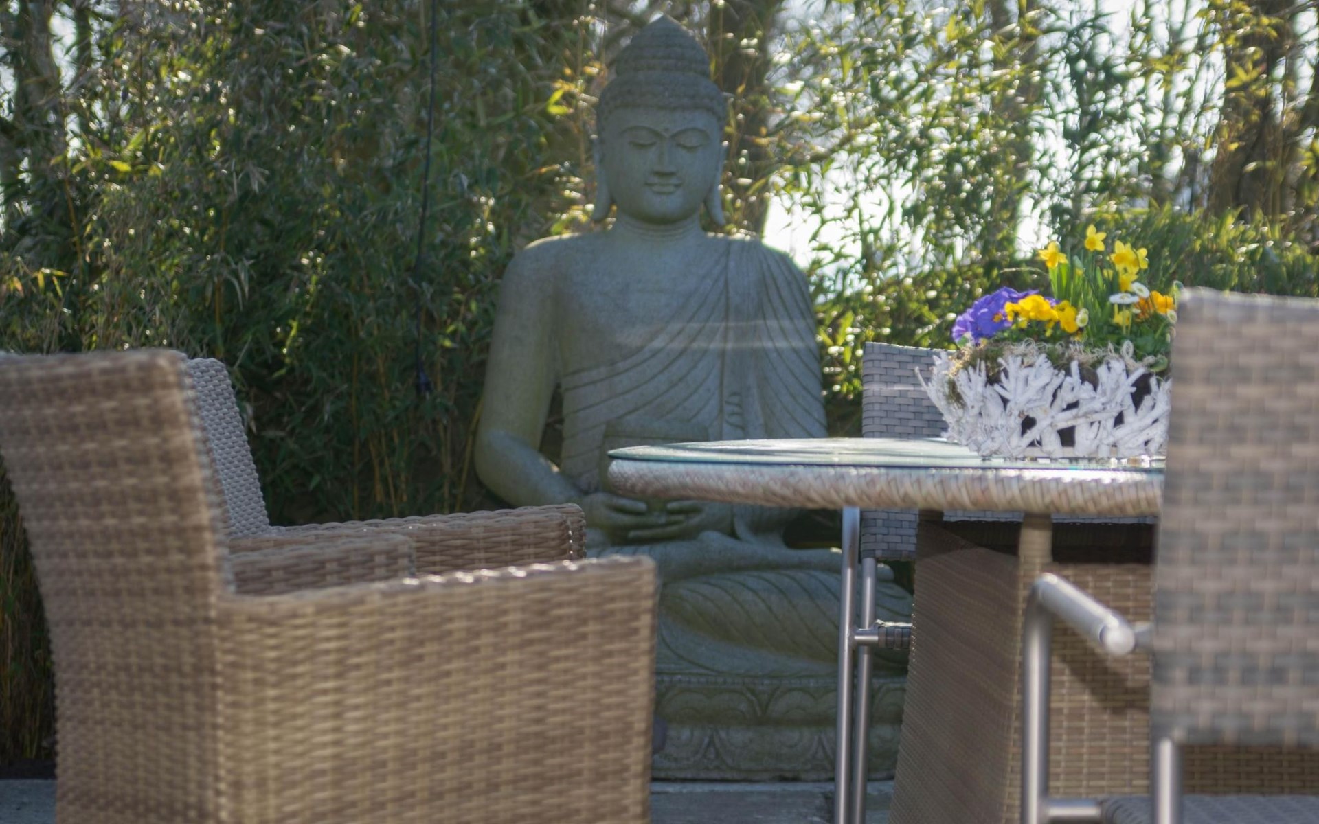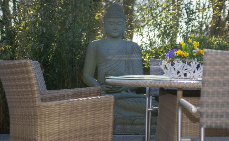 Morgens scheint die Sonne herrlich auf die eigene 40 m² große Terrasse. Hier lässt es sich prima frühstücken unter dem weiten Himmel Nordfrieslands. Eine Besonderheit ist der sitzende Buddha im Garten. Er strahlt die Ruhe und Gelassenheit aus, die Sie bestimmt in dieser schönen Umgebung finden werden. Am Haus sind weiterhin zwei Autostellplätze sowie ein Schuppen für Fahrräder vorhanden.