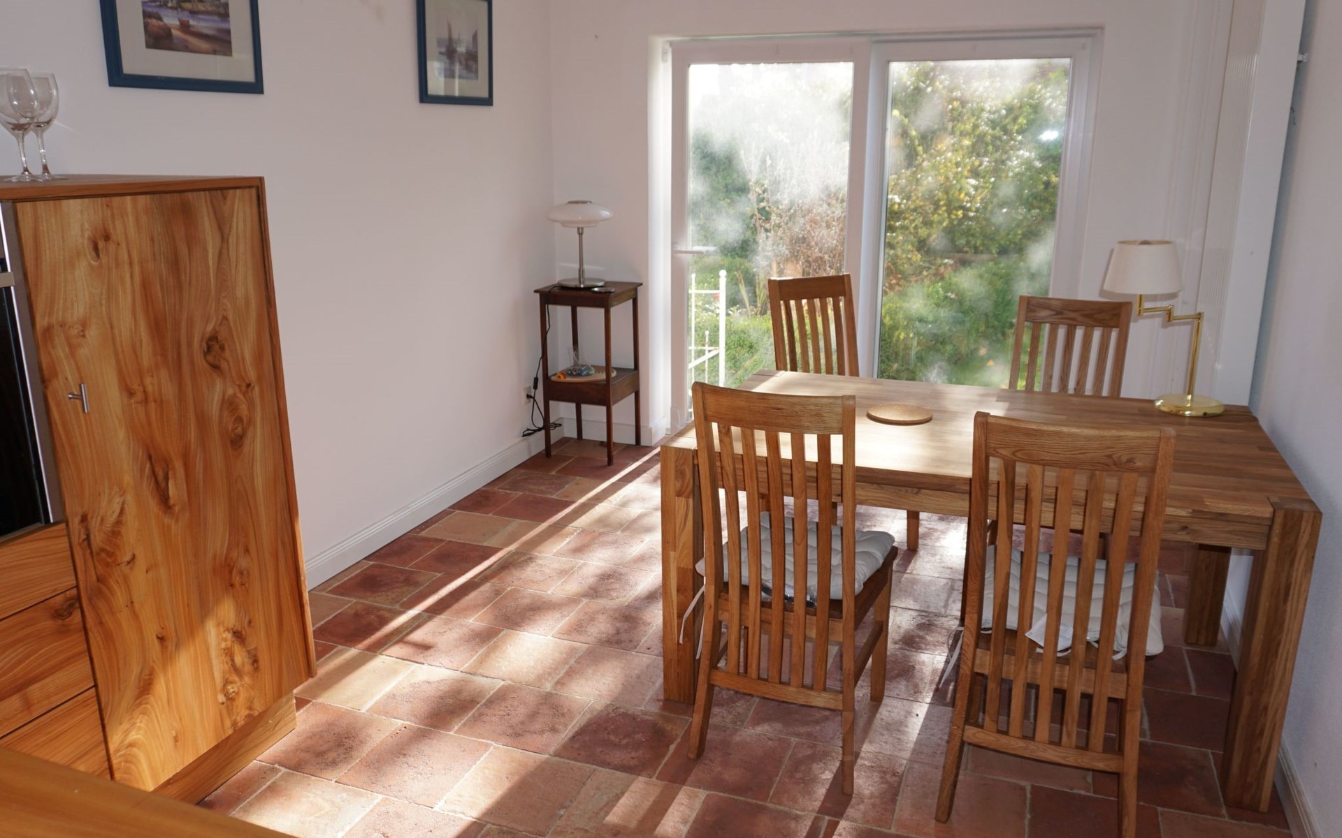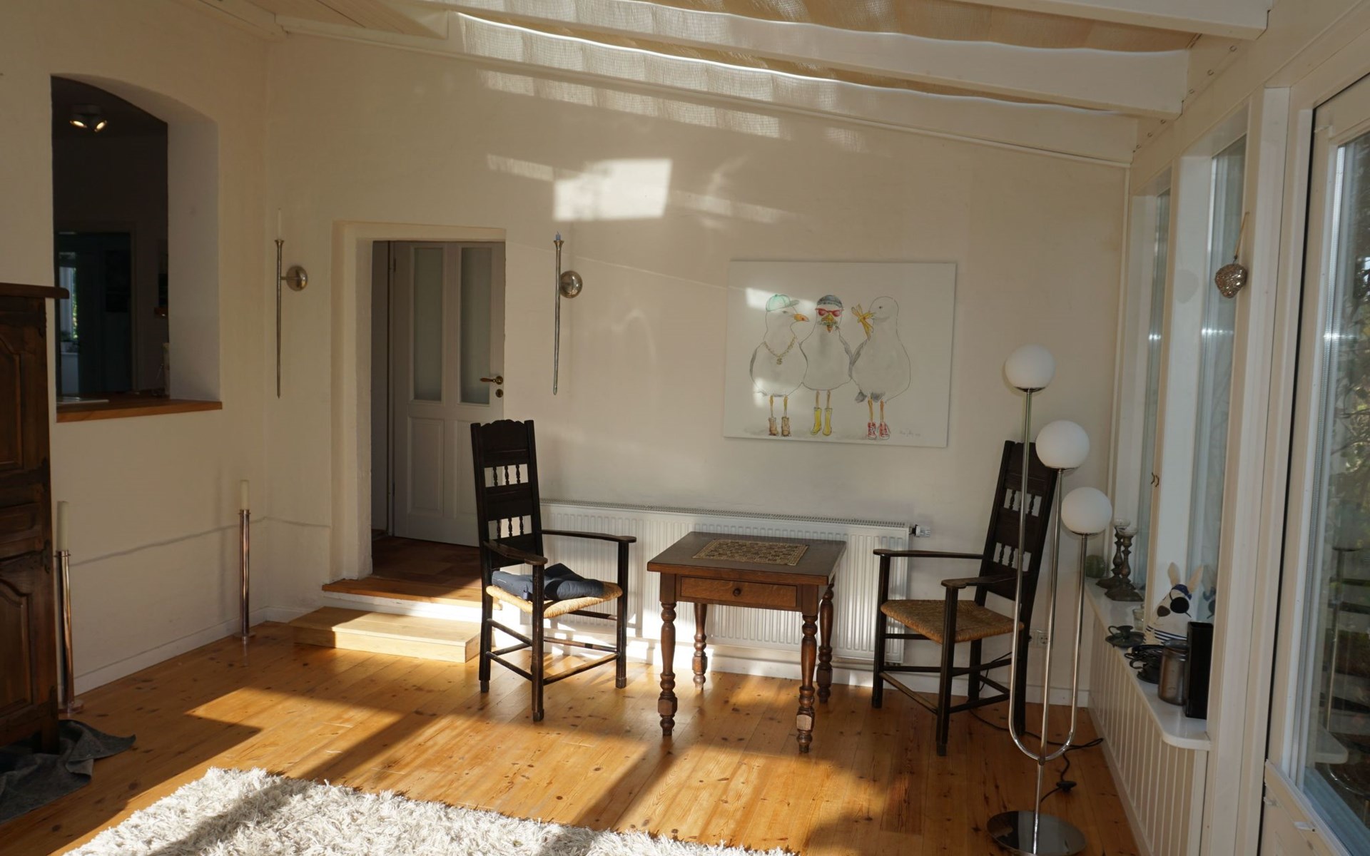 Im Inneren des Hauses erwarten Sie eine wundervoll ausgestattete Wohnküche, ein gemütliches Wohnzimmer mit Kamin und Smart TV für entspannte Abende, ein Speisezimmer mit Klavier und ausladendem Esstisch sowie drei einladende Schlafzimmer, wobei eines ebenfalls über einen Smart TV verfügt. Des Weiteren stehen Ihnen 3 WCs und 2 ebenerdige Duschen, ein Saunazimmer für Entspannungsmomente und der wintergartenähnliche Anbau zur Verfügung, der mit seinem panoramischen Blick über die Landschaft zum Verweilen einlädt.