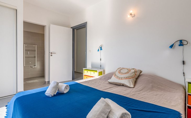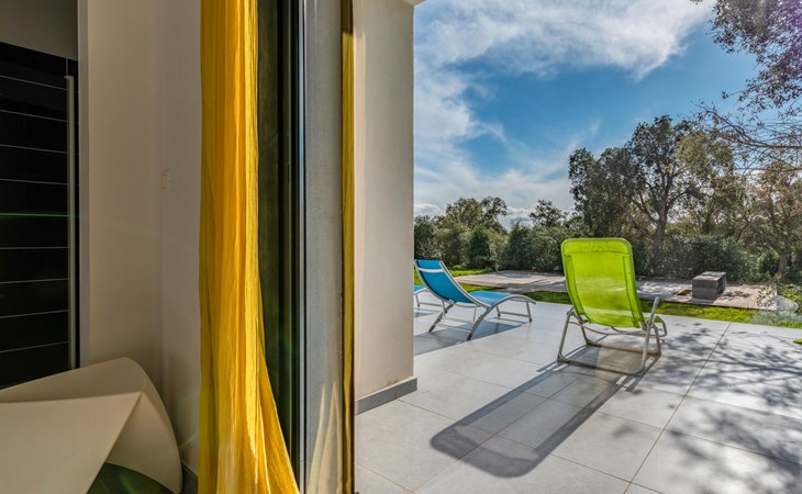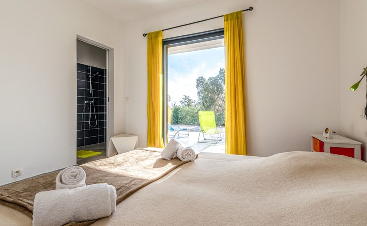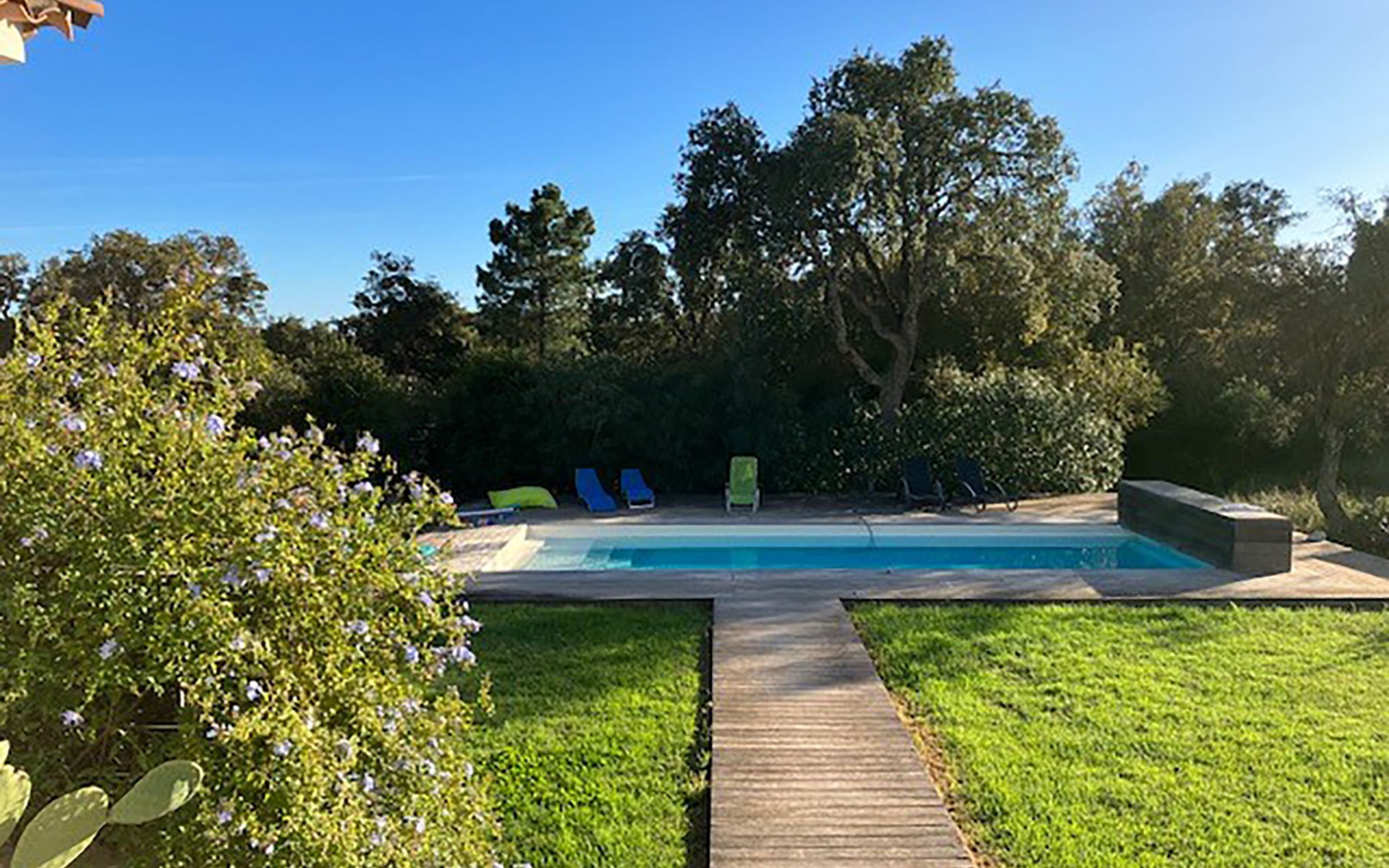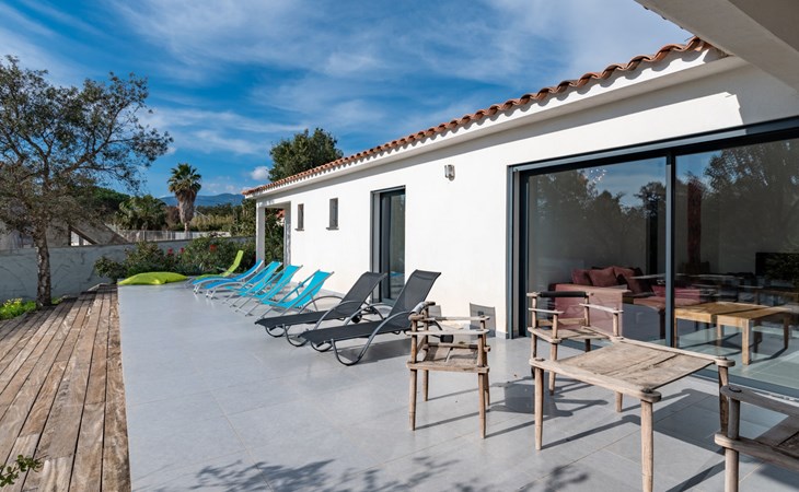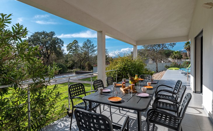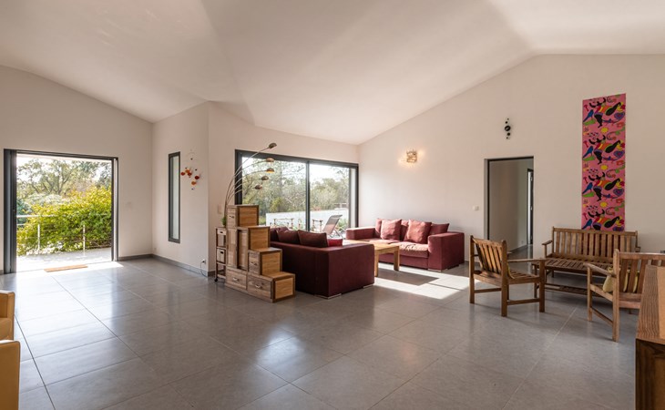 Villa. Im Ortsteil Mangia Gatta, am Ortsrand, 4 km vom Zentrum von Sainte Lucie de Porto-Vecchio, alleinstehende Lage, 700 m vom Meer, 700 m vom Strand, direkter Zugang zum Strand. Zur Alleinbenutzung: naturbelassenes Grundstück, Schwimmbad eckig (10 x 4 m, 70 - 180 cm tief, saisonale Verfügbarkeit: 15.Apr. - 15.Sep.) mit Rollladenabdeckung. Im Hause: Klimaanlage. Zufahrt (Naturweg). Parkplatz auf dem Grundstück. Supermarkt 4 km, Restaurant 1 km, Bäckerei 4 km, Bushaltestelle 4.1 km, Sandstrand "Plage de Fautea" 1 km. Nahe gelegene Sehenswürdigkeiten: Centre ville Porto-Vecchio 20 km, Centre ville Solenzara 19 km. Wandergebiete: Aiguilles de Bavella 40 km. Bitte beachten: Fahrzeug empfohlen.