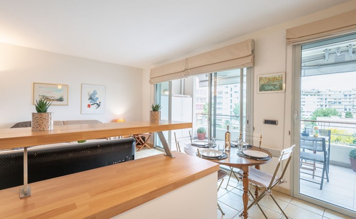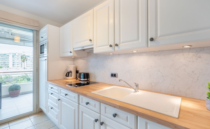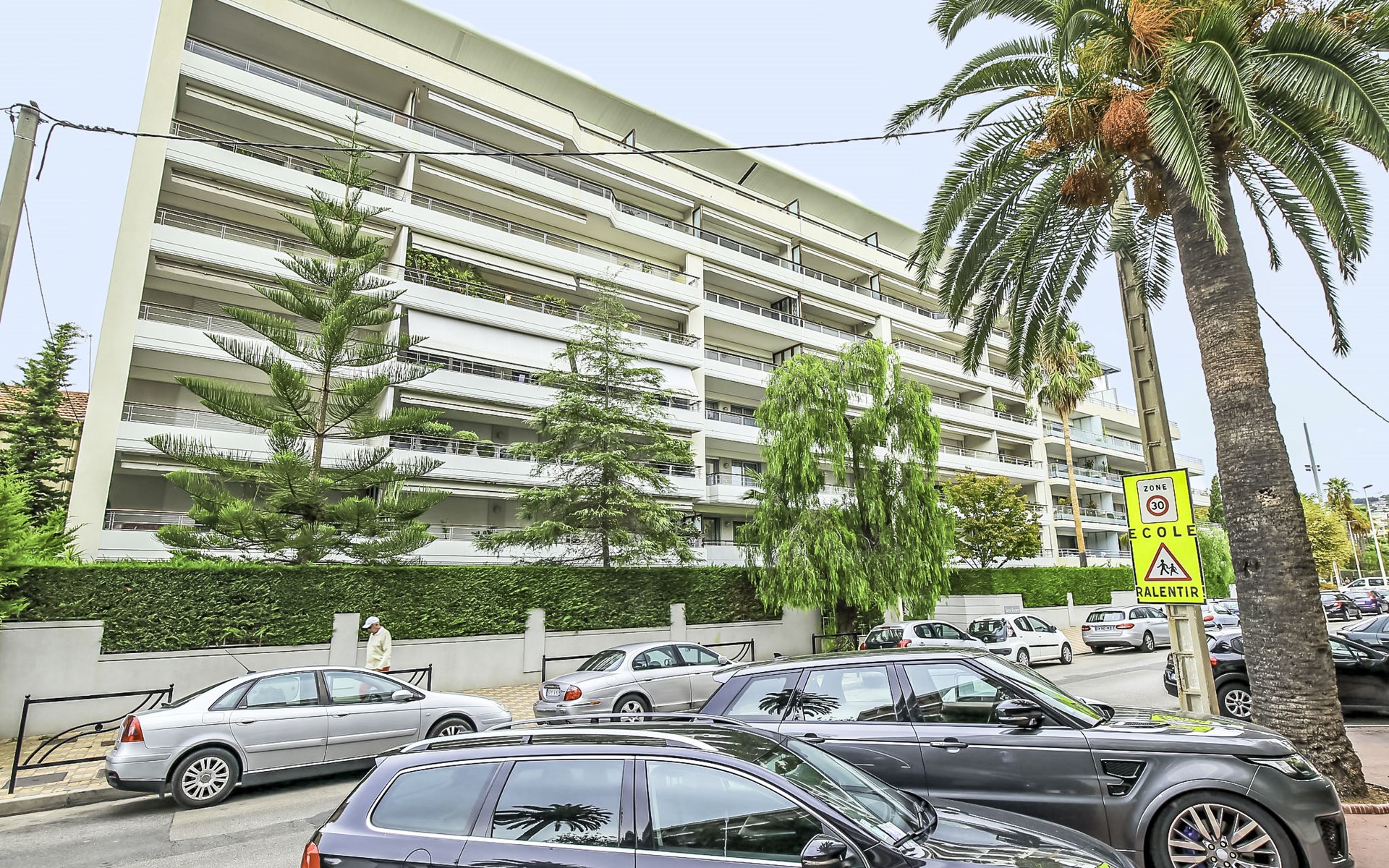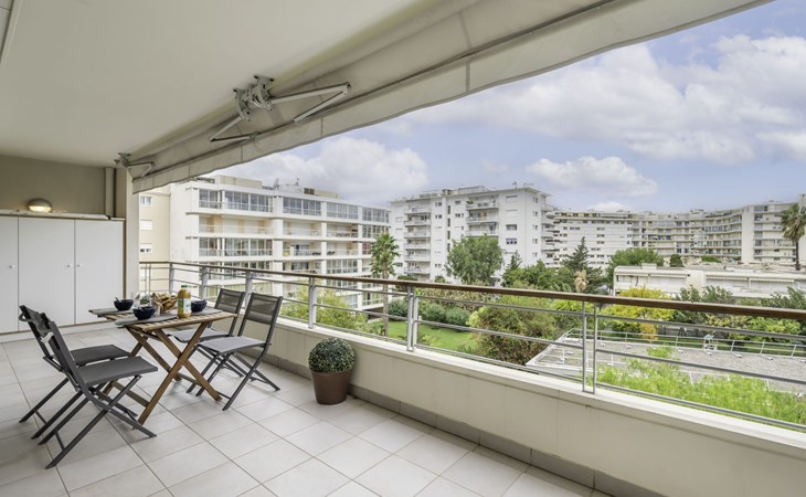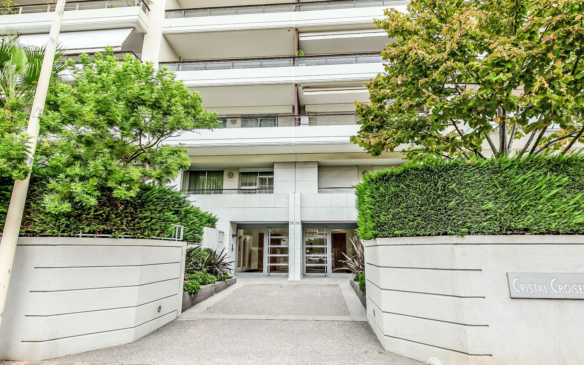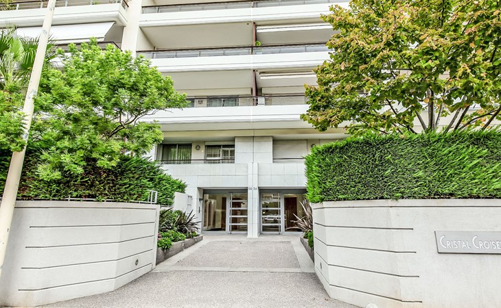 Sehr moderne, schöne Residenz "Cristal Croisette", auf 7 Stockwerken, Baujahr 2005. Im Ortsteil Palm Beach, 1 km vom Zentrum von Cannes, 200 m vom Meer, 200 m vom Strand. Zur Mitbenutzung: Garten (eingezäunt) Rasen und Blumen. In der Anlage: Fahrstuhl. Öffentliche Parkplätze auf der Strasse. Einkaufsgeschäft 300 m, Supermarkt 400 m, Restaurant, Bushaltestelle 50 m, Bahnstation "Cannes" 3 km, Sandstrand 200 m. Sporthafen 300 m, Segelschule. Nahe gelegene Sehenswürdigkeiten: Croisette 150 m, Palais des Festivals 2 km. Schule 100m.