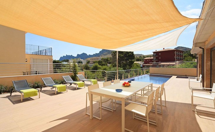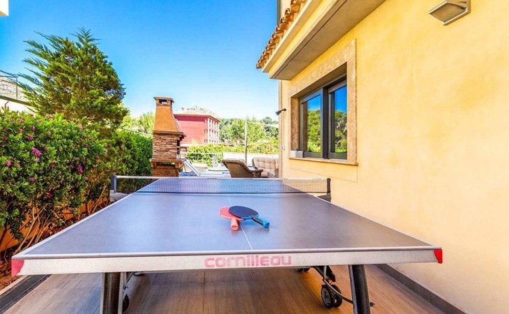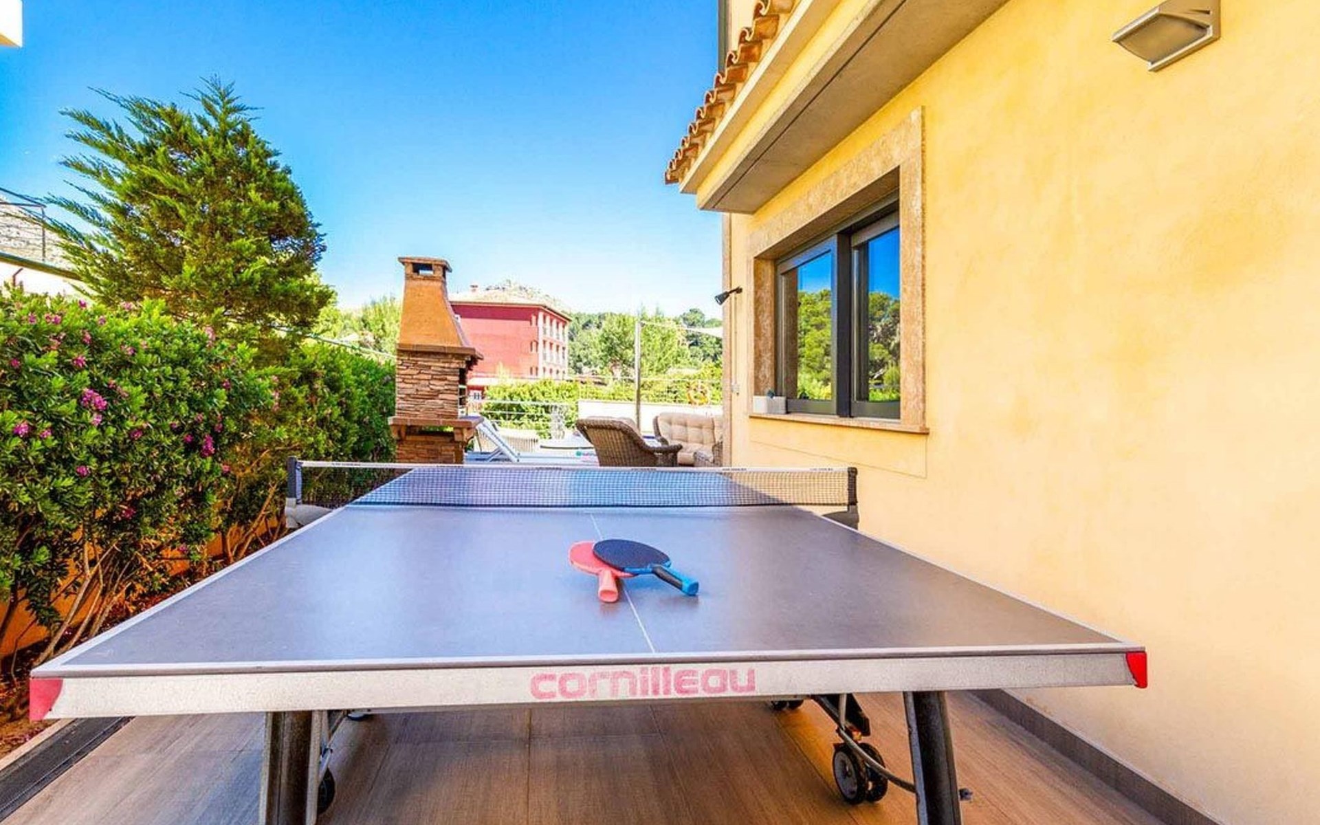 Die Terrasse bietet dank der beiden Markisen einen erfrischenden Schattenplatz. Sie ist mit Liegestühlen, Tischen und Stühlen für bis zu acht Personen ausgestattet. Die Tischtennisplatte, der große tragbare Grill, das Schwimmbad und der Kaltwasser-Whirlpool werden alle Gäste begeistern. Zwei praktische Stufen führen hinunter zum Pool. Der Panoramablick vom Pool aus ist einfach fantastisch. Auf der Terrasse gibt es auch eine Toilette, die Sie benutzen können.